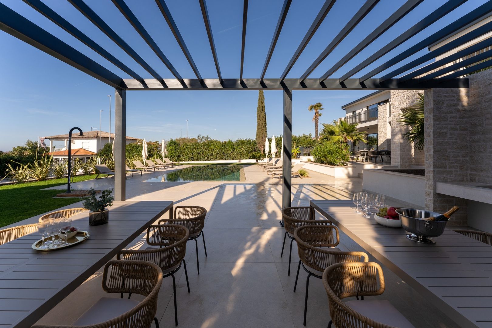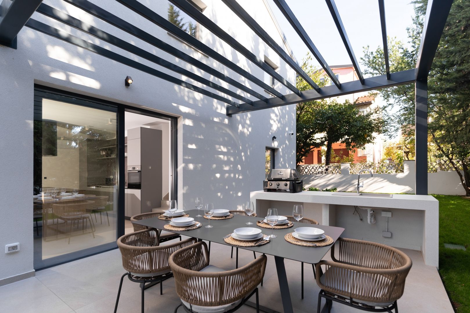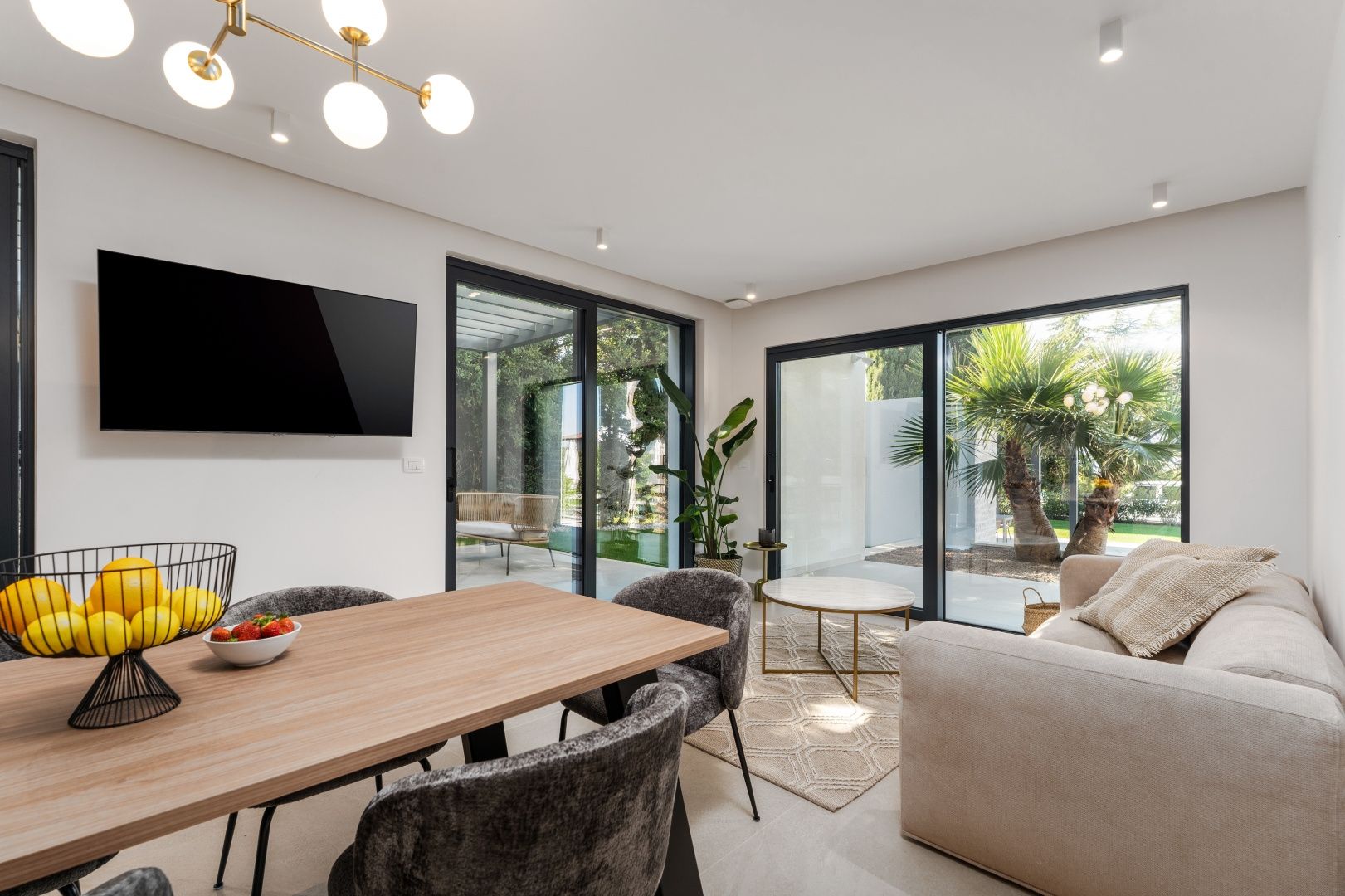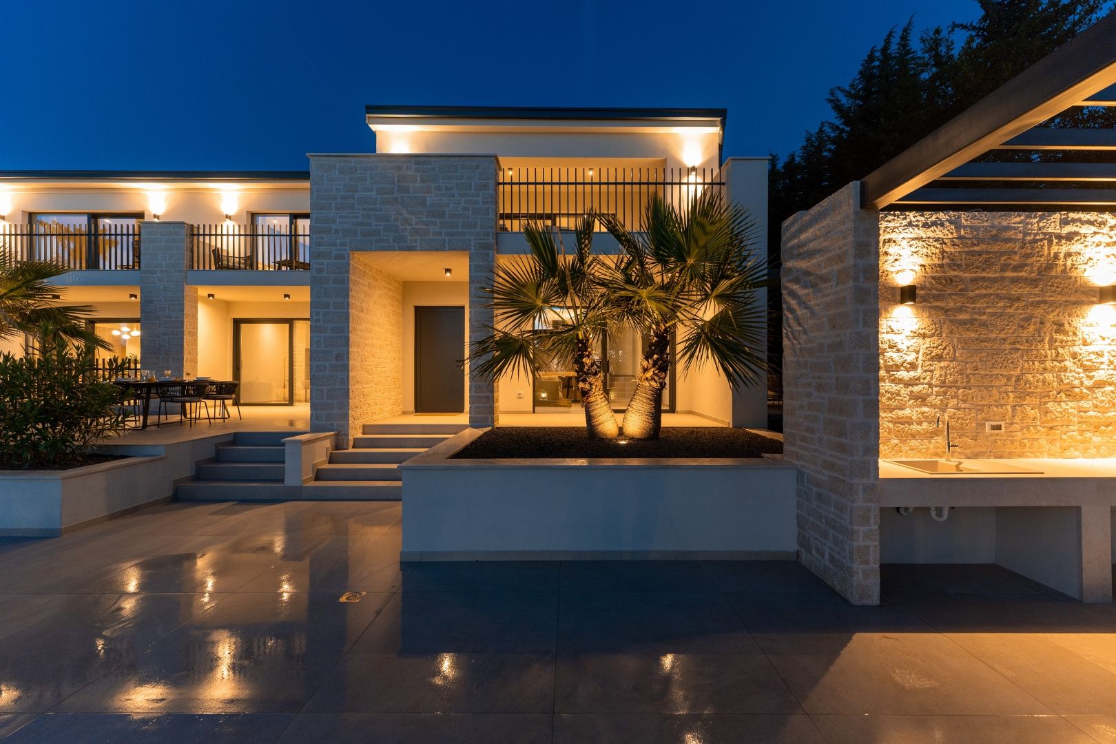 ISTRIE, POREČ – Exkluzivní vila, tři bytové jednotky, luxus u moře Poreč je jedno z nejžádanějších měst na istrijském pobřeží – město bohaté historie, vynikající gastronomie, křišťálově čistého moře a celoroční nabídky. Kombinace římského dědictví, středomořského kouzla a 5hvězdičkového luxusu z něj dělá ideální místo pro život, relaxaci a investice. Právě v této istrijské perle, pouhých 1,5 km od moře a udržovaných pláží, se nachází tato impozantní luxusní vila, která dokonale kombinuje moderní architekturu, špičkové vybavení a maximální soukromí. Nemovitost je ideální jako rodinné bydlení, ale také jako mimořádně výnosná investice pro turistický pronájem. Vila se rozkládá na 683 m² obytné plochy a skládá se ze tří samostatných, plně vybavených bytových jednotek, navržených s důrazem na luxus, funkčnost a estetiku. Přízemí každé jednotky zahrnuje: • prostorný a světlý obývací pokoj s velkými prosklenými stěnami • moderně navrženou kuchyň s elegantní estetikou • pohodlnou ložnici s vestavěnými skříněmi • koupelnu s vysoce kvalitním vybavením • další úložný prostor • další plně vybavenou koupelnu V prvním patře každé jednotky se nacházejí: • dvě luxusní ložnice • každá s vlastní koupelnou • soukromé terasy s otevřeným výhledem na moře Interiér je vybaven luxusním italským nábytkem a pečlivě vybranými dekoracemi, které dále zdůrazňují exkluzivitu prostoru. TECHNICKÉ ÚDAJE A VYBAVENÍ: • Vytápění: Podlahové vytápění / Tepelné čerpadlo • Individuální klimatizace v každé místnosti • Video dohled • Luxusní Catalano & Grohe • Špičkové materiály a povrchové úpravy • Vila se prodává kompletně zařízená a vybavená Celková plocha pozemku o rozloze 1 753 m² je skutečnou soukromou zelenou oázou s pečlivě upravenou středomořskou krajinou. Na pozemku se nachází: • vyhřívaný bazén o rozloze 40 m² • prostorná letní kuchyně o rozloze 35 m² • další úložný prostor o rozloze 33 m² • parkování pro 8 aut • bujná zeleň, palmy a cypřiše, které zajišťují soukromí a klid Tato vila představuje na trhu vzácnou příležitost - perfektní kombinaci luxusu, lokality a investičního potenciálu. Blízkost moře, špičkové vybavení, tři samostatné jednotky a možnost vysokého příjmu z turistického pronájmu z ní činí ideální volbu pro náročné kupující, kteří hledají více než jen nemovitost - hledají životní styl.