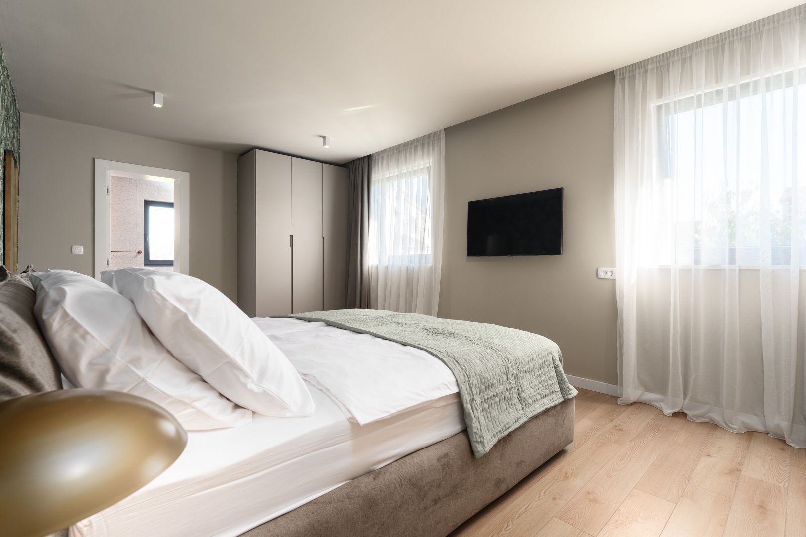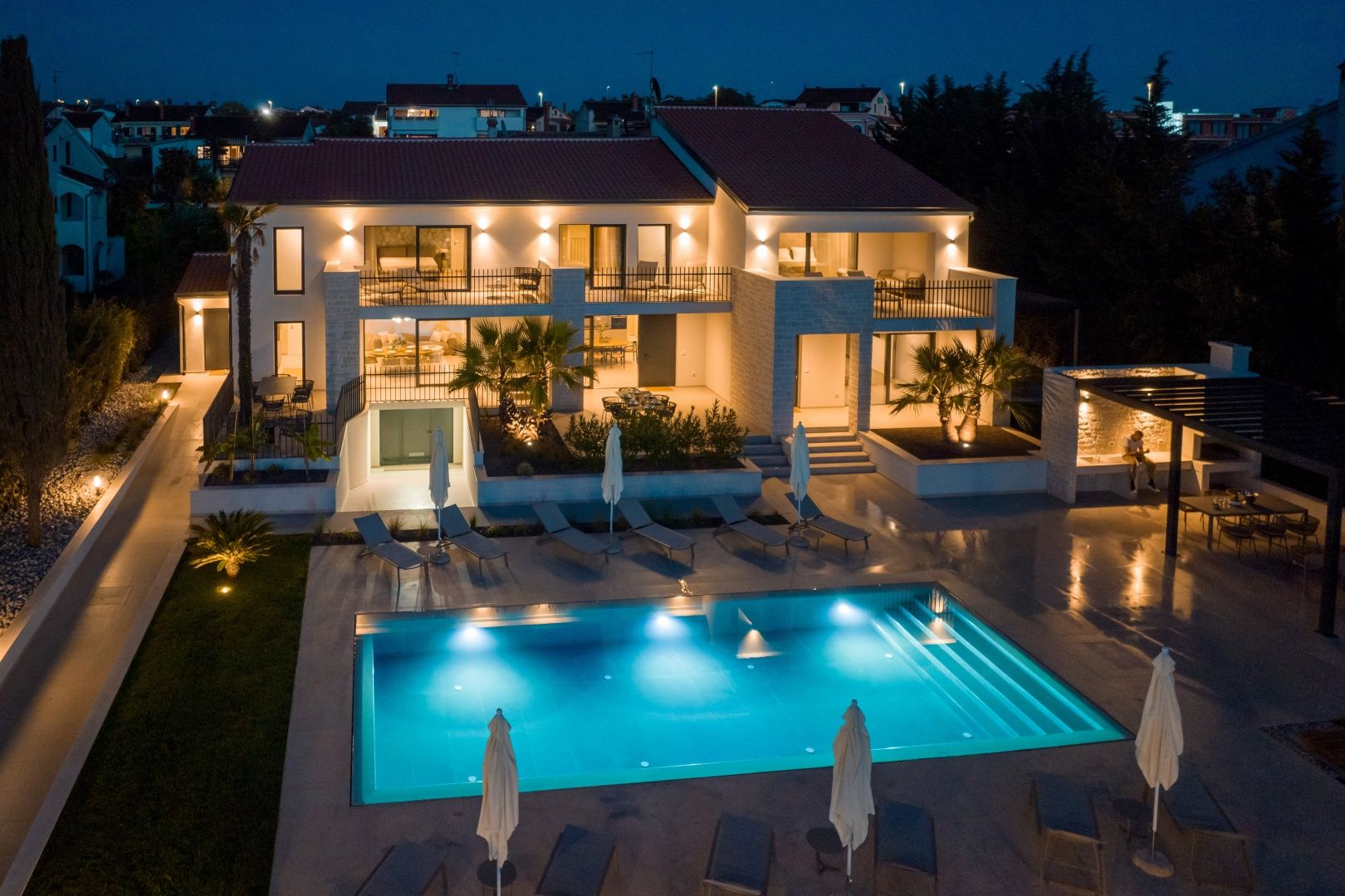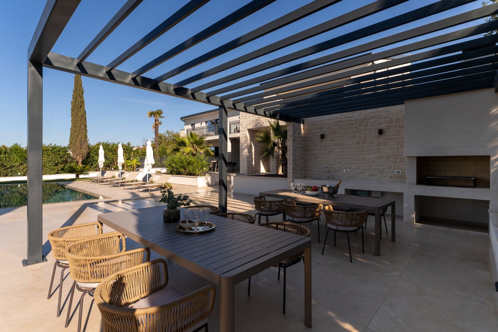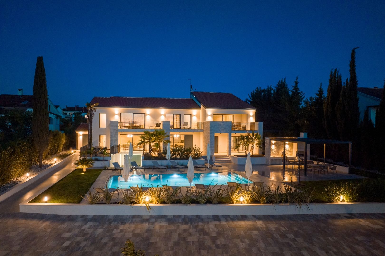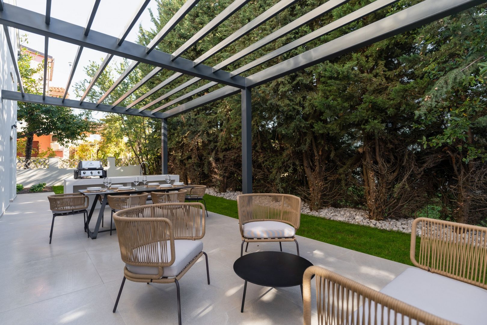 ISTRIE, POREČ – Exkluzivní vila, tři bytové jednotky, luxus u moře Poreč je jedno z nejžádanějších měst na istrijském pobřeží – město bohaté historie, vynikající gastronomie, křišťálově čistého moře a celoroční nabídky. Kombinace římského dědictví, středomořského kouzla a 5hvězdičkového luxusu z něj dělá ideální místo pro život, relaxaci a investice. Právě v této istrijské perle, pouhých 1,5 km od moře a udržovaných pláží, se nachází tato impozantní luxusní vila, která dokonale kombinuje moderní architekturu, špičkové vybavení a maximální soukromí. Nemovitost je ideální jako rodinné bydlení, ale také jako mimořádně výnosná investice pro turistický pronájem. Vila se rozkládá na 683 m² obytné plochy a skládá se ze tří samostatných, plně vybavených bytových jednotek, navržených s důrazem na luxus, funkčnost a estetiku. Přízemí každé jednotky zahrnuje: • prostorný a světlý obývací pokoj s velkými prosklenými stěnami • moderně navrženou kuchyň s elegantní estetikou • pohodlnou ložnici s vestavěnými skříněmi • koupelnu s vysoce kvalitním vybavením • další úložný prostor • další plně vybavenou koupelnu V prvním patře každé jednotky se nacházejí: • dvě luxusní ložnice • každá s vlastní koupelnou • soukromé terasy s otevřeným výhledem na moře Interiér je vybaven luxusním italským nábytkem a pečlivě vybranými dekoracemi, které dále zdůrazňují exkluzivitu prostoru. TECHNICKÉ ÚDAJE A VYBAVENÍ: • Vytápění: Podlahové vytápění / Tepelné čerpadlo • Individuální klimatizace v každé místnosti • Video dohled • Luxusní Catalano & Grohe • Špičkové materiály a povrchové úpravy • Vila se prodává kompletně zařízená a vybavená Celková plocha pozemku o rozloze 1 753 m² je skutečnou soukromou zelenou oázou s pečlivě upravenou středomořskou krajinou. Na pozemku se nachází: • vyhřívaný bazén o rozloze 40 m² • prostorná letní kuchyně o rozloze 35 m² • další úložný prostor o rozloze 33 m² • parkování pro 8 aut • bujná zeleň, palmy a cypřiše, které zajišťují soukromí a klid Tato vila představuje na trhu vzácnou příležitost - perfektní kombinaci luxusu, lokality a investičního potenciálu. Blízkost moře, špičkové vybavení, tři samostatné jednotky a možnost vysokého příjmu z turistického pronájmu z ní činí ideální volbu pro náročné kupující, kteří hledají více než jen nemovitost - hledají životní styl.
