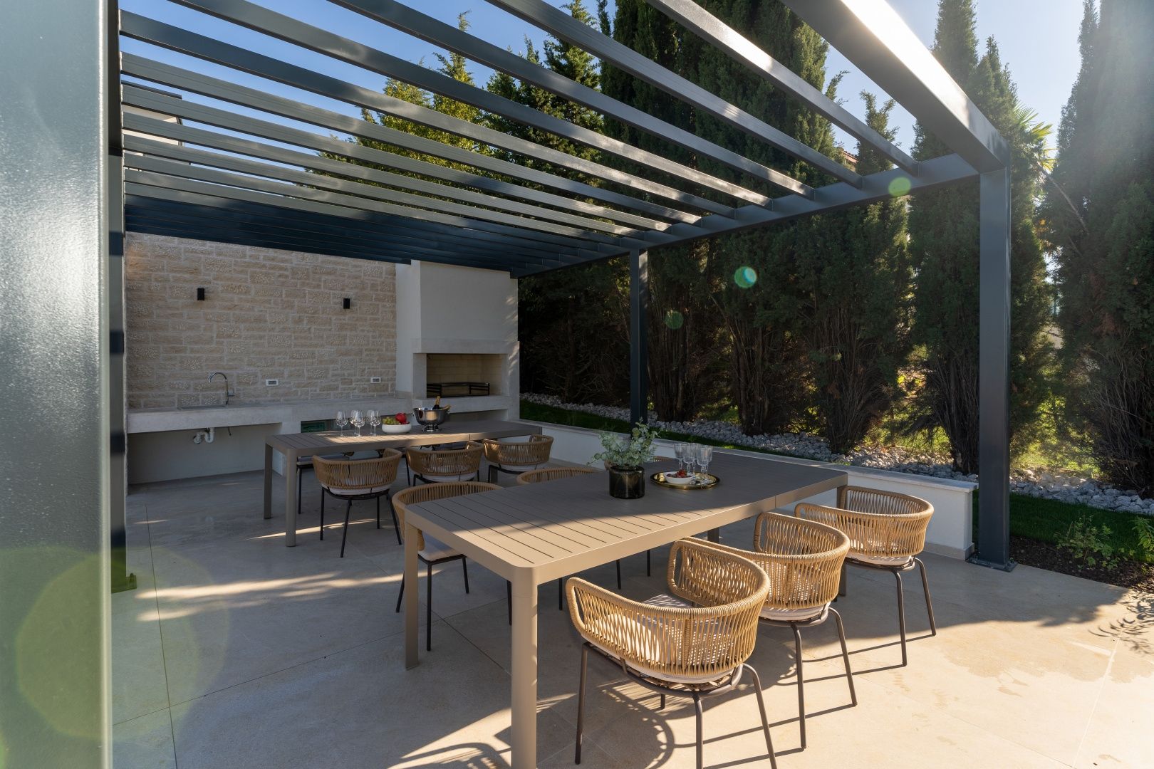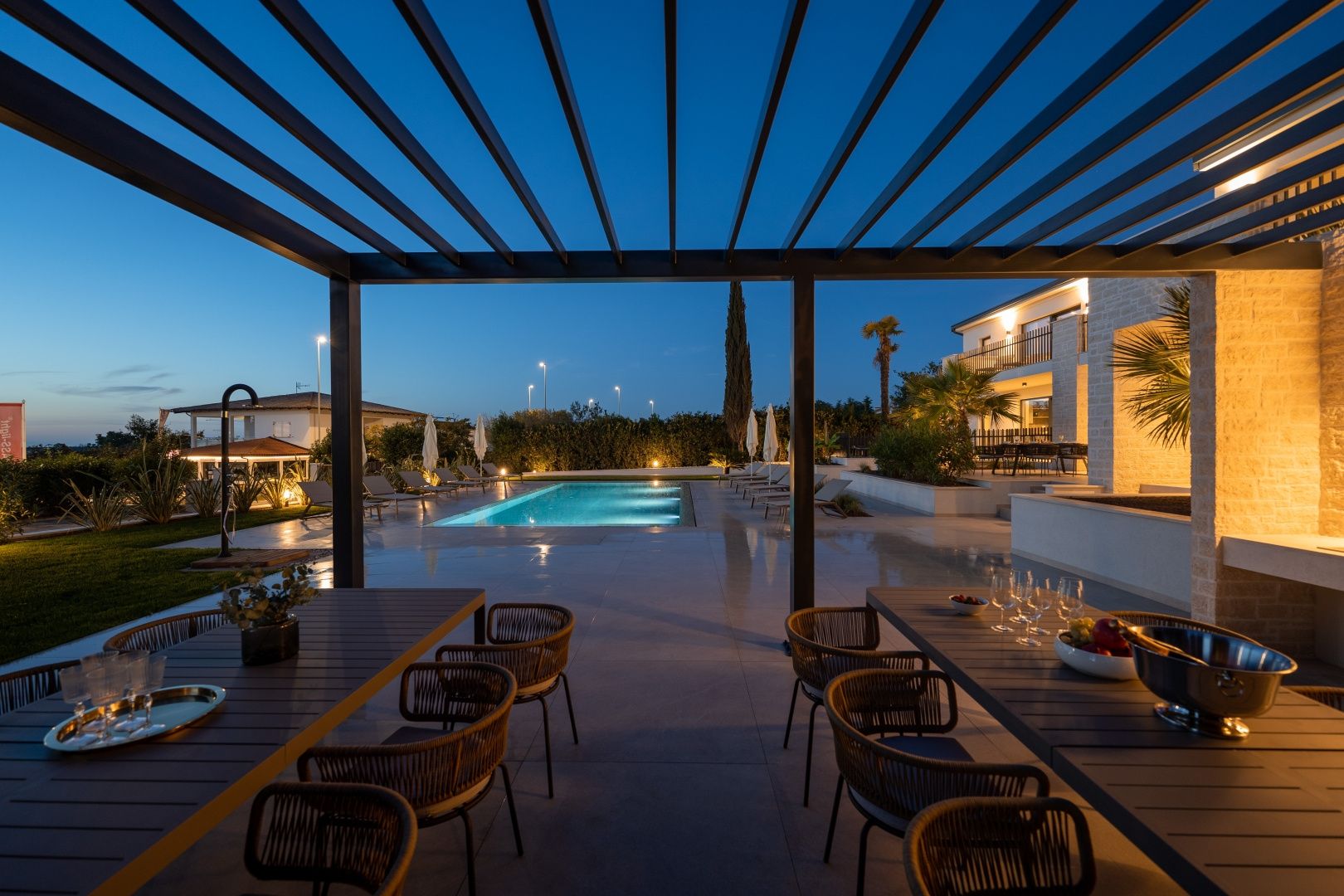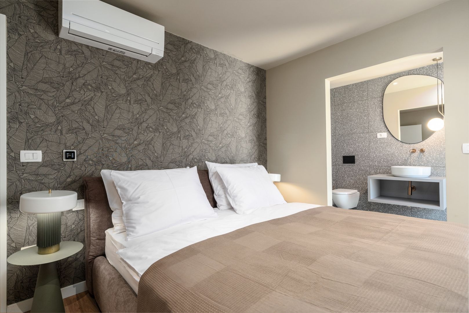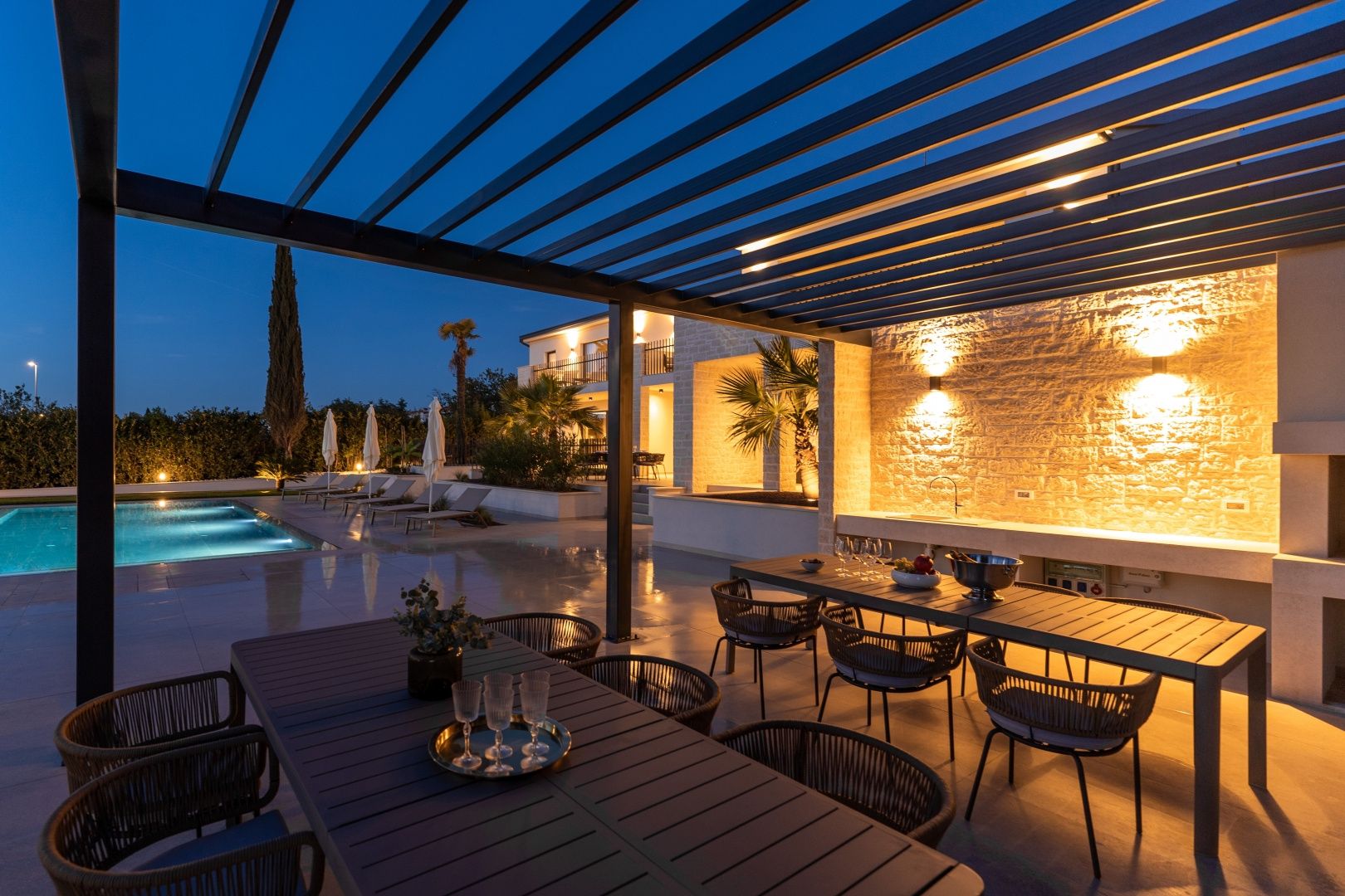 ISTRIE, POREČ – Exkluzivní vila, tři bytové jednotky, luxus u moře Poreč je jedno z nejžádanějších měst na istrijském pobřeží – město bohaté historie, vynikající gastronomie, křišťálově čistého moře a celoroční nabídky. Kombinace římského dědictví, středomořského kouzla a 5hvězdičkového luxusu z něj dělá ideální místo pro život, relaxaci a investice. Právě v této istrijské perle, pouhých 1,5 km od moře a udržovaných pláží, se nachází tato impozantní luxusní vila, která dokonale kombinuje moderní architekturu, špičkové vybavení a maximální soukromí. Nemovitost je ideální jako rodinné bydlení, ale také jako mimořádně výnosná investice pro turistický pronájem. Vila se rozkládá na 683 m² obytné plochy a skládá se ze tří samostatných, plně vybavených bytových jednotek, navržených s důrazem na luxus, funkčnost a estetiku. Přízemí každé jednotky zahrnuje: • prostorný a světlý obývací pokoj s velkými prosklenými stěnami • moderně navrženou kuchyň s elegantní estetikou • pohodlnou ložnici s vestavěnými skříněmi • koupelnu s vysoce kvalitním vybavením • další úložný prostor • další plně vybavenou koupelnu V prvním patře každé jednotky se nacházejí: • dvě luxusní ložnice • každá s vlastní koupelnou • soukromé terasy s otevřeným výhledem na moře Interiér je vybaven luxusním italským nábytkem a pečlivě vybranými dekoracemi, které dále zdůrazňují exkluzivitu prostoru. TECHNICKÉ ÚDAJE A VYBAVENÍ: • Vytápění: Podlahové vytápění / Tepelné čerpadlo • Individuální klimatizace v každé místnosti • Video dohled • Luxusní Catalano & Grohe • Špičkové materiály a povrchové úpravy • Vila se prodává kompletně zařízená a vybavená Celková plocha pozemku o rozloze 1 753 m² je skutečnou soukromou zelenou oázou s pečlivě upravenou středomořskou krajinou. Na pozemku se nachází: • vyhřívaný bazén o rozloze 40 m² • prostorná letní kuchyně o rozloze 35 m² • další úložný prostor o rozloze 33 m² • parkování pro 8 aut • bujná zeleň, palmy a cypřiše, které zajišťují soukromí a klid Tato vila představuje na trhu vzácnou příležitost - perfektní kombinaci luxusu, lokality a investičního potenciálu. Blízkost moře, špičkové vybavení, tři samostatné jednotky a možnost vysokého příjmu z turistického pronájmu z ní činí ideální volbu pro náročné kupující, kteří hledají více než jen nemovitost - hledají životní styl.