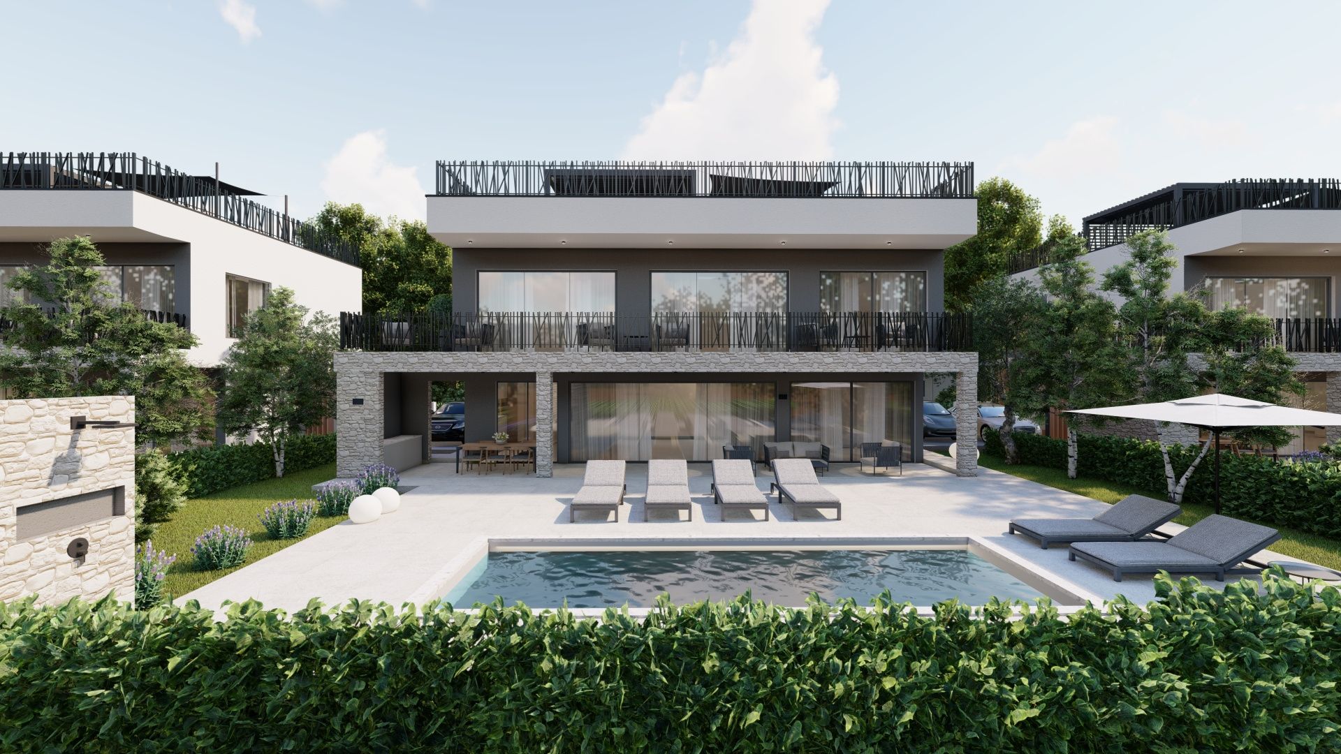 ISTRIE, POREČ - Luxusní dům s bazénem jen pár kroků od moře Starobylé město Poreč, obklopené příjemným středomořským klimatem, se nachází v srdci západního istrijského pobřeží a jeho pobřeží s dochovanou přírodní krásou, upravenými parky, borovými a dubovými háji, které sahají až k samotnému moři, podél nichž se střídá čisté moře, pláže, zátoky a ostrovy. Rozkládá se na ploše 139 km² a skládá se z 58 osad. S identitou městského přímořského města je Poreč městem kultury, sportu, zábavy, městem turismu a opravdové pohostinnosti. Jedno z nejatraktivnějších měst chorvatského turismu, které jedinečným způsobem spojuje přírodní krásy Istrie, bohaté kulturní a historické dědictví a nejmodernější vybavení špičkové turistické destinace. Harmonie starého městského jádra, které je kulturní památkou, s jednou z nejznámějších istrijských kulturních památek, Eufraziovou bazilikou, která je na seznamu světového dědictví UNESCO, a nejlépe udržovanými a nejlépe vybavenými turistickými osadami na Jadranu tvoří mozaiku nezapomenutelných zážitků. Poreč je také město, které je mnohem víc než jen letní destinací slunce a moře. Poreč je město šité na míru potřebám lidí. Město, ve kterém existuje neustálý impuls ke zlepšení životních podmínek a dosažení většího pokroku v různých oblastech. Město, které je příjemným, bezpečným a dobře udržovaným místem k životu, kde si každý najde své místo, město bez daní s vysokou sociální citlivostí pro všechny generace. Nedaleko centra Poreče se prodává luxusní dům s bazénem, jen krůček od moře. Kromě lokality, která poskytuje naprostý komfort, se nemovitost vyznačuje také kvalitou konstrukce, která zaručuje dlouhodobou spokojenost a kvalitu bydlení. Dům se svou moderní architekturou nenarušuje životní prostředí, ale vytváří synergii přírodního prostředí a moderního designu. Je definován jako jedna bytová jednotka, jejíž plocha je rozložena na dvou podlažích s funkčním půdorysem a obytná zóna nabízí harmonické obytné prostředí zalité přirozeným světlem, které vyzařuje sofistikovanost a pohodlí. Přízemí se skládá z otevřeného prostoru, který spojuje obývací pokoj, jídelnu a kuchyň s přístupem na krytou terasu s letní kuchyní, toaletou pro hosty a technickými místnostmi. První patro se skládá ze tří ložnic s vlastními koupelnami a přístupem na terasu s výhledem na moře. Dvůr je upraven a oplocen v ambientním a zahradnickém stylu a bazén s opalovací plochou poskytuje úplnou harmonii. Výjimečná poloha, struktura a komfort činí z této nemovitosti ideální příležitost pro klidný rodinný život i pro investici za účelem turistického pronájmu. Uvedená cena nemovitosti se vztahuje k konečnému stupni dokončení bez nábytku, což umožňuje finální úpravu dle vlastních přání a preferencí. Prodejce dané nemovitosti je právnická osoba.