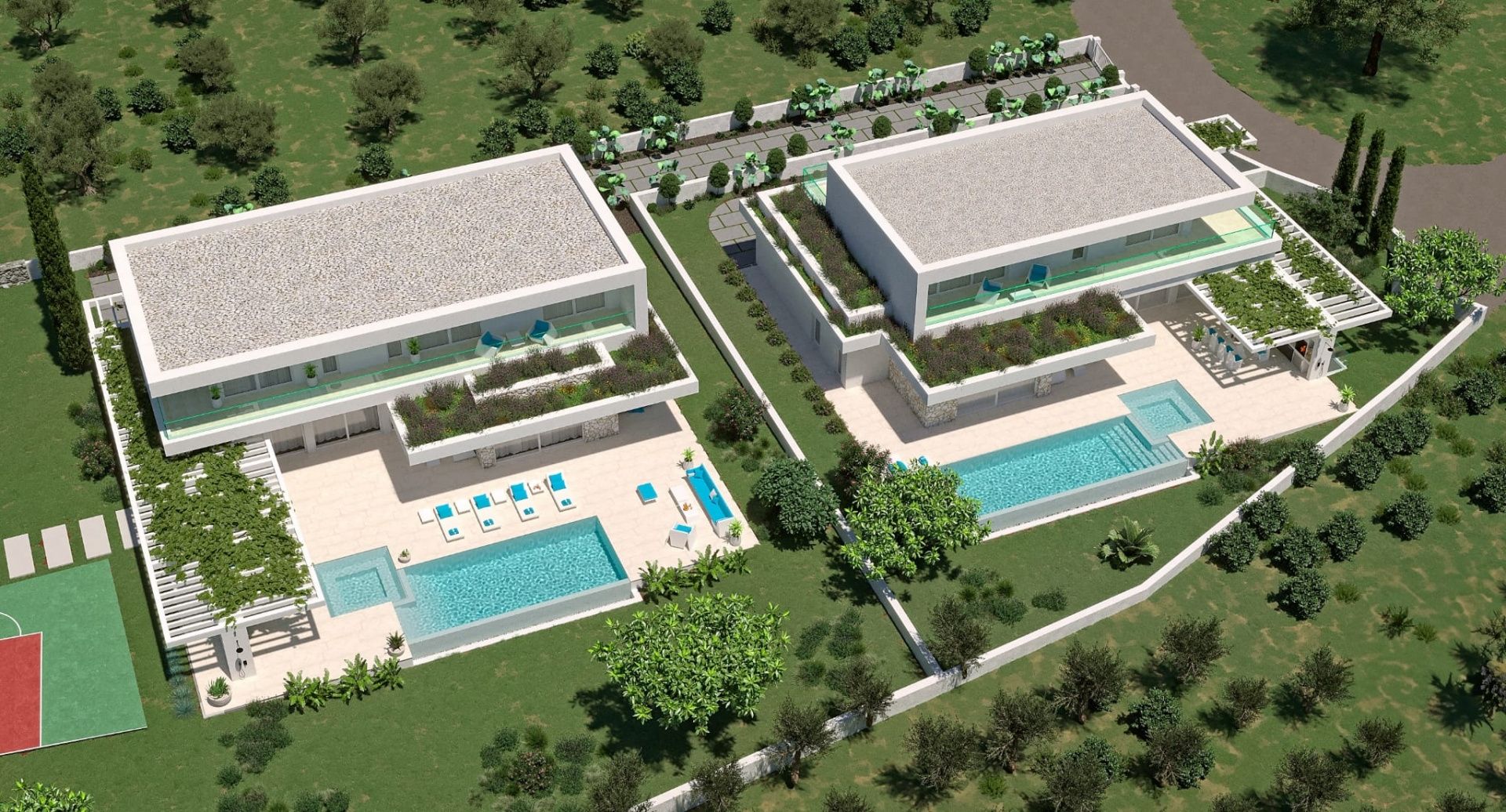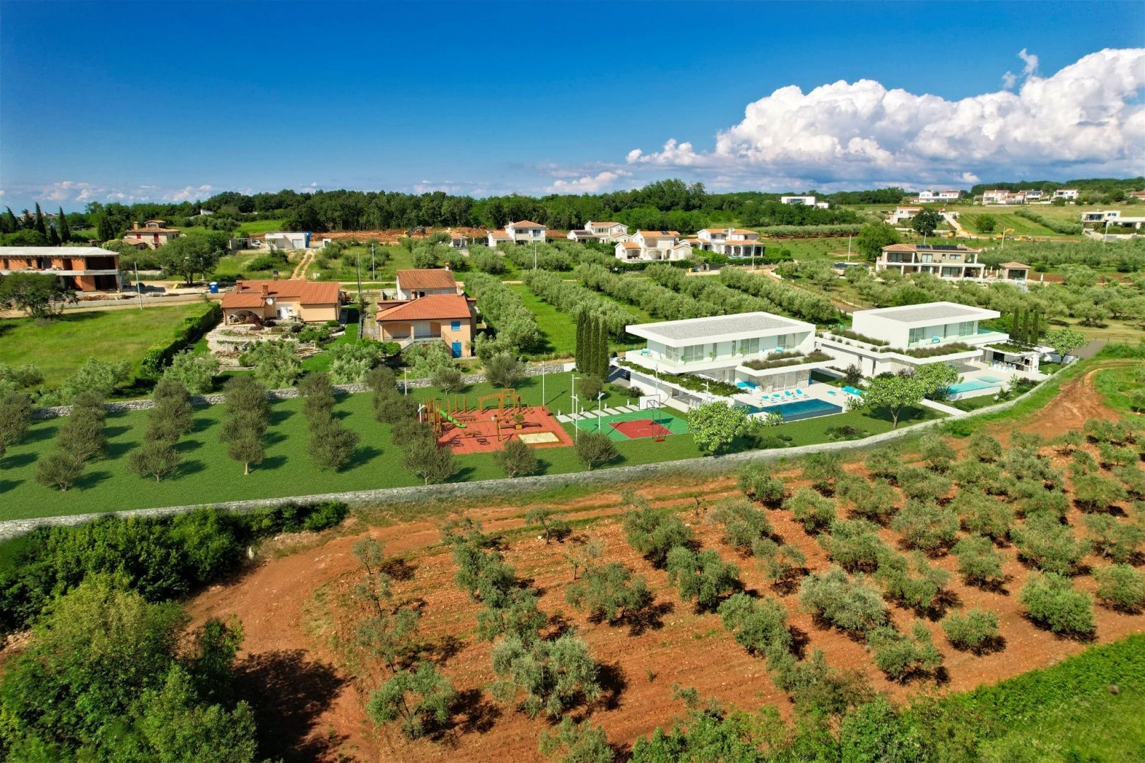 ISTRIE, POREČ - Luxusní moderní vila s bazénem a garáží před zelenou plochou Poreč je jedno z nejznámějších istrijských měst na západním pobřeží Istrie, známé svou bohatou historií, udržovanými plážemi, vynikající gastronomií a vysokou kvalitou života. Město nabízí dokonalou rovnováhu mezi středomořským životním stylem, moderní infrastrukturou a řadou vybavení, což z něj činí mimořádně žádané místo pro bydlení i investice. Nedaleko okouzlující Poreče se prodává tato luxusní moderní vila s bazénem a prostornou zahradou, která se nachází před zelenou plochou, kde není povolena další výstavba, což zajišťuje soukromí a klid. Interiér domu zahrnuje 185,42 m² obytné plochy + 31 m² garáže, celkem 216,42 m², rozložených v přízemí a prvním patře: • Přízemí: krytý vchod, chodba se schodištěm, garáž, technická místnost, šatna, koupelna, další toaleta, technická místnost, kuchyň propojená s jídelnou a obývacím pokojem a jedna ložnice. V přízemí se nachází také krytá terasa. • První patro: chodba, dvě ložnice, dvě koupelny, technická místnost a tři terasy (jedna krytá a dvě nekryté). Dům je vybaven podlahovým vytápěním a existuje také možnost koupě v provedení Roh Bau. Na pozemku o rozloze 888 m² se nachází: • Bazén o rozloze 40 m² • 2 venkovní parkovací místa • prostorný pozemek vhodný pro venkovní užívání a soukromí Cena je uvedena včetně DPH, bez dodatečné daně z nemovitosti. Je také ideální pro koupi přes společnost, což je skvělá příležitost pro investory. Dokonalá kombinace luxusní výstavby, moderního designu, prostorných teras a bazénů, umístěných před zelenou plochou, činí tento dům ideálním místem pro klidný rodinný život nebo bezpečnou investici na Istrii.