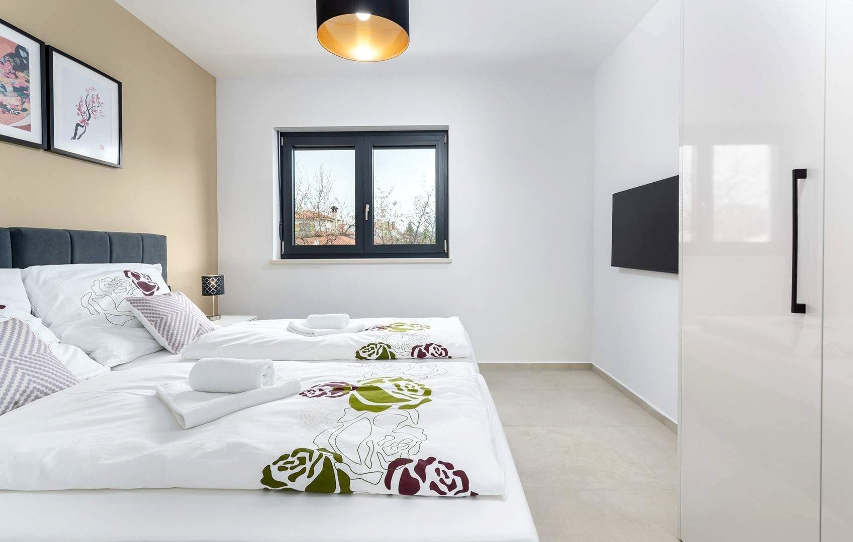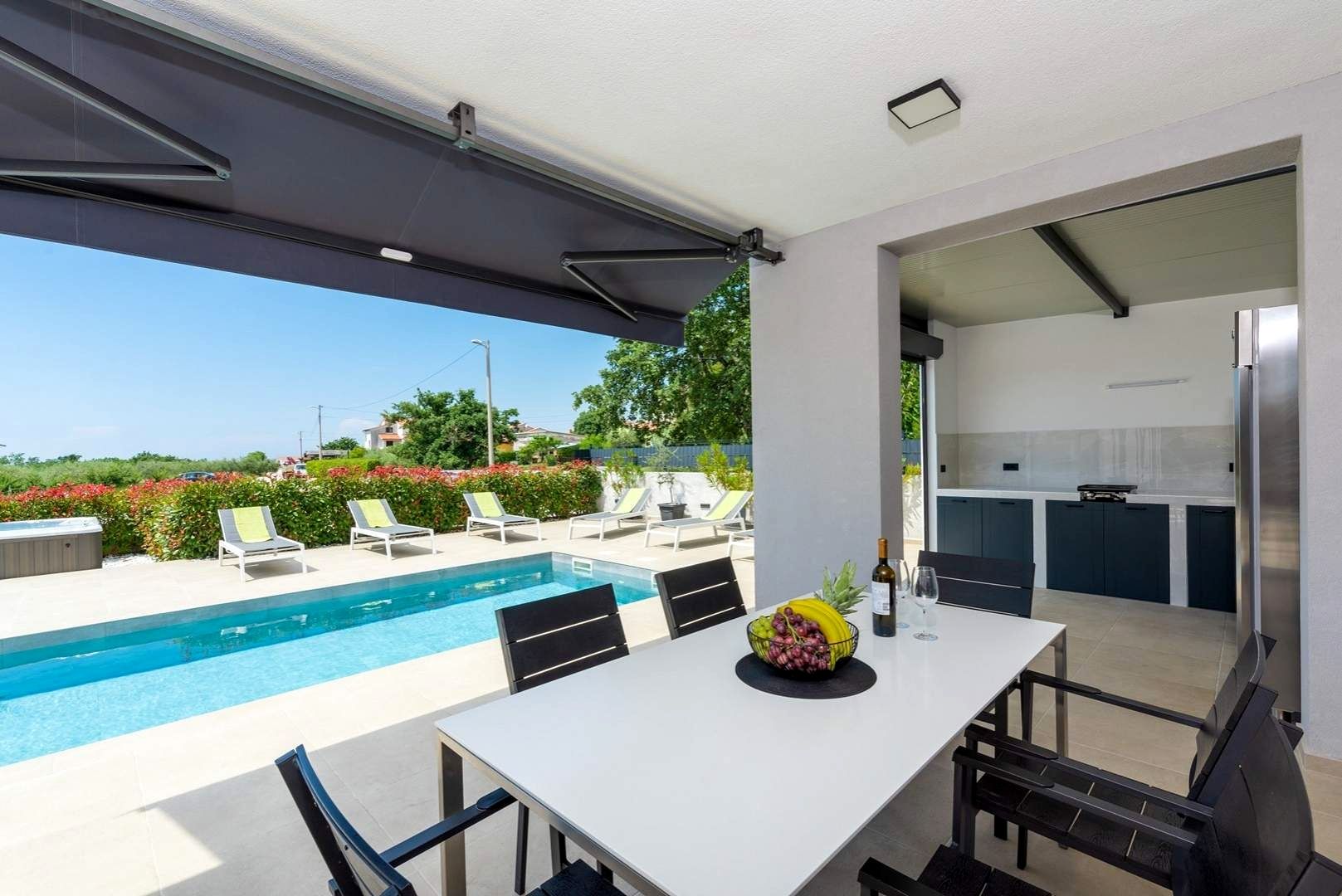 ISTRIE, POREČ - Moderní dům s bazénem Starobylé město Poreč, obklopené příjemným středomořským klimatem, se nachází v srdci západního istrijského pobřeží. Jeho pobřeží se vyznačuje zachovalou přírodní krásou, upravenými parky, borovými a dubovými háji, které sahají až k moři, podél nichž se střídá čisté moře, pláže, zátoky a ostrovy. Rozkládá se na ploše 139 km² a skládá se z 58 osad. Poreč je s identitou městského přímořského města městem kultury, sportu, zábavy, městem turismu a opravdové pohostinnosti. Je to jedno z nejatraktivnějších měst chorvatského turismu, které jedinečným způsobem spojuje přírodní krásy Istrie, bohaté kulturní a historické dědictví a nejmodernější vybavení špičkové turistické destinace. Harmonie starého městského jádra, které je kulturní památkou, s jednou z nejznámějších istrijských kulturních památek, Eufraziovou bazilikou, která je na seznamu světového dědictví UNESCO, a nejlépe udržovanými a nejlépe vybavenými turistickými osadami na Jadranu tvoří mozaiku nezapomenutelných zážitků. Poreč je také město, které je mnohem víc než jen letní destinací slunce a moře. Poreč je město šité na míru potřebám lidí. Město, ve kterém existuje neustálý impuls ke zlepšování životních podmínek a dosahování většího pokroku v různých oblastech. Město, které je příjemným, bezpečným a dobře udržovaným místem k životu, kde si každý najde své místo, město bez daní s vysokou sociální citlivostí pro všechny generace. Nedaleko města Poreče se prodává moderní dům s bazénem. Nachází se v klidné čtvrti, obklopený rodinnými domy a rekreačními objekty, a nabízí dokonalou rovnováhu mezi blízkostí moře a městskou vybaveností. Dům svou architekturou splývá s osadou a krajinou z hlediska formy i barvy a vytváří synergii přírodního prostředí a moderního designu, zatímco kvalita konstrukce zaručuje dlouhodobou spokojenost a kvalitu bydlení. Je definován jako jedna bytová jednotka, jejíž plocha je rozložena na dvou elegantně zařízených a dobře vybavených podlažích. Přízemí se skládá z otevřeného prostoru, který spojuje kuchyň, jídelnu a obývací pokoj s přístupem na krytou terasu, kde se nachází letní kuchyň, toaleta pro hosty a technické místnosti. První patro se skládá ze tří ložnic, dvou koupelen a terasy. Dvůr je upravený a oplocený a dokonalou harmonii doplňuje bazén s prostorem na opalování. Vynikající poloha a prostorové uspořádání interiéru i exteriéru této nemovitosti poskytuje příležitost pro pohodlný rodinný život nebo investici do turistického pronájmu.