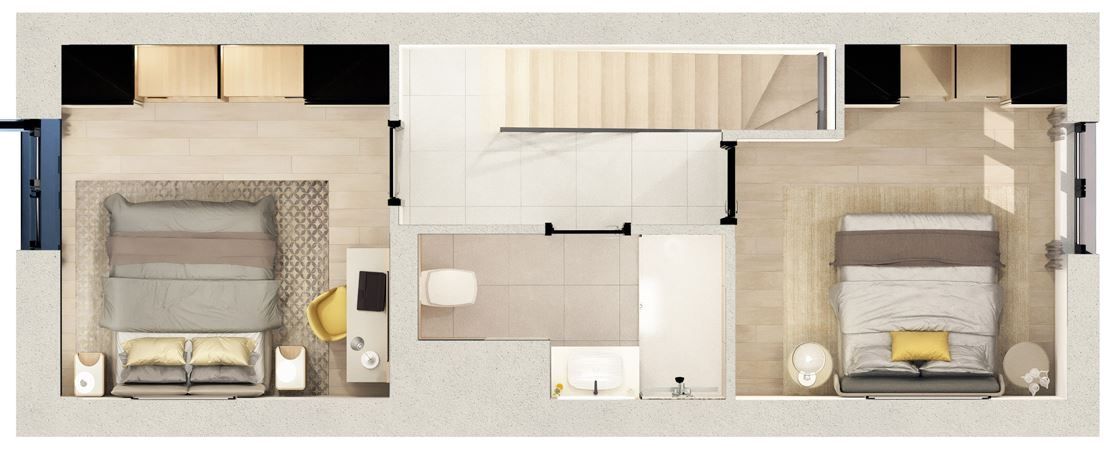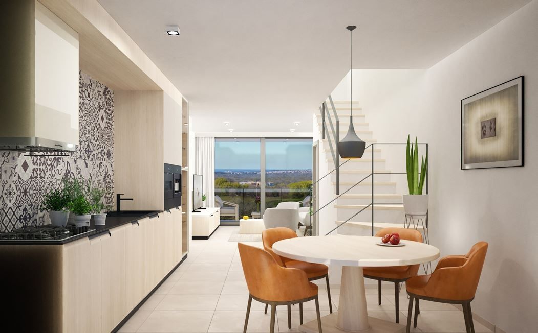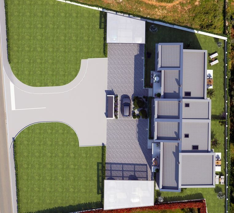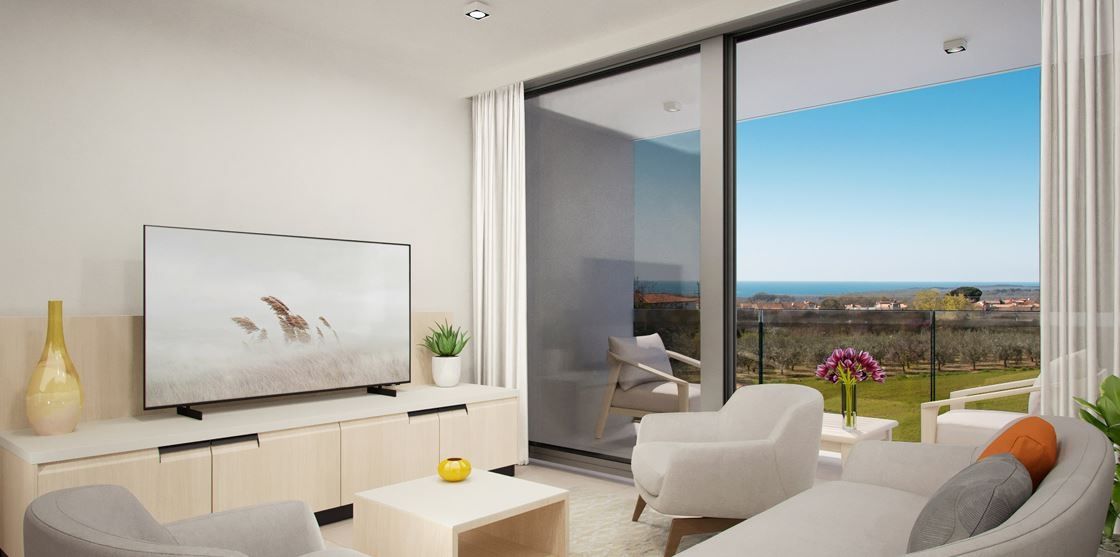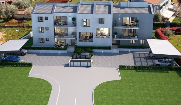 ISTRIE, POREČ – MODERNÍ DVOUPATRŽNÍ BYT V KLIDNÉM OKOLÍ U MOŘE Poreč, jedno z nejznámějších a nejkrásnějších istrijských měst, vždy přitahovalo návštěvníky svým bohatým kulturním dědictvím, okouzlujícími starobylými uličkami a křišťálově čistým mořem. Město kombinuje historický duch Středomoří s moderním životním stylem a nabízí ideální prostředí pro příjemný pobyt po celý rok. Nedaleko Poreče, v městečku Nova Vas, se prodává moderní dvoupatrový byt v novostavbě, který se nachází v klidném a příjemném prostředí, jež poskytuje dokonalou harmonii soukromí a blízkosti veškeré potřebné občanské vybavenosti. Byt se rozkládá na ploše 76,57 m² a byl pečlivě navržen tak, aby nabízel maximální pohodlí a funkčnost. V prvním patře se nachází vstupní hala, obývací pokoj, kuchyň s jídelním koutem, lodžie ideální pro relaxaci a toaleta umístěná pod schody. Elegantní vnitřní schodiště vede do druhého patra, kde se nacházejí dvě prostorné ložnice a koupelna. Byt je vybaven elektrickým podlahovým vytápěním v koupelně a všechny místnosti jsou klimatizovány se zařízeními, která umožňují vytápění a chlazení po celý rok. Byt má navíc videovrátný, který zajišťuje komfort a vysokou úroveň zabezpečení. K bytu náleží jedno parkovací místo a úložný prostor v budově, což dále zvyšuje praktičnost každodenního života. Budova má moderní design a skládá se z celkem osmi bytů. Byt se prodává nezařízený, což umožňuje budoucímu majiteli zařídit si interiér podle vlastního vkusu. Dokončení výstavby je plánováno na začátek roku 2026. Tento byt představuje vynikající příležitost pro každého, kdo hledá moderní bydlení v klidné istrijské vesnici a chce být jen pár minut od malebné Poreče a jejích pláží. Kombinace moderní architektury, kvalitní výstavby a klidné lokality činí z této nemovitosti ideální investici pro příjemný rodinný život nebo elegantní turistické útočiště na Jadranu.