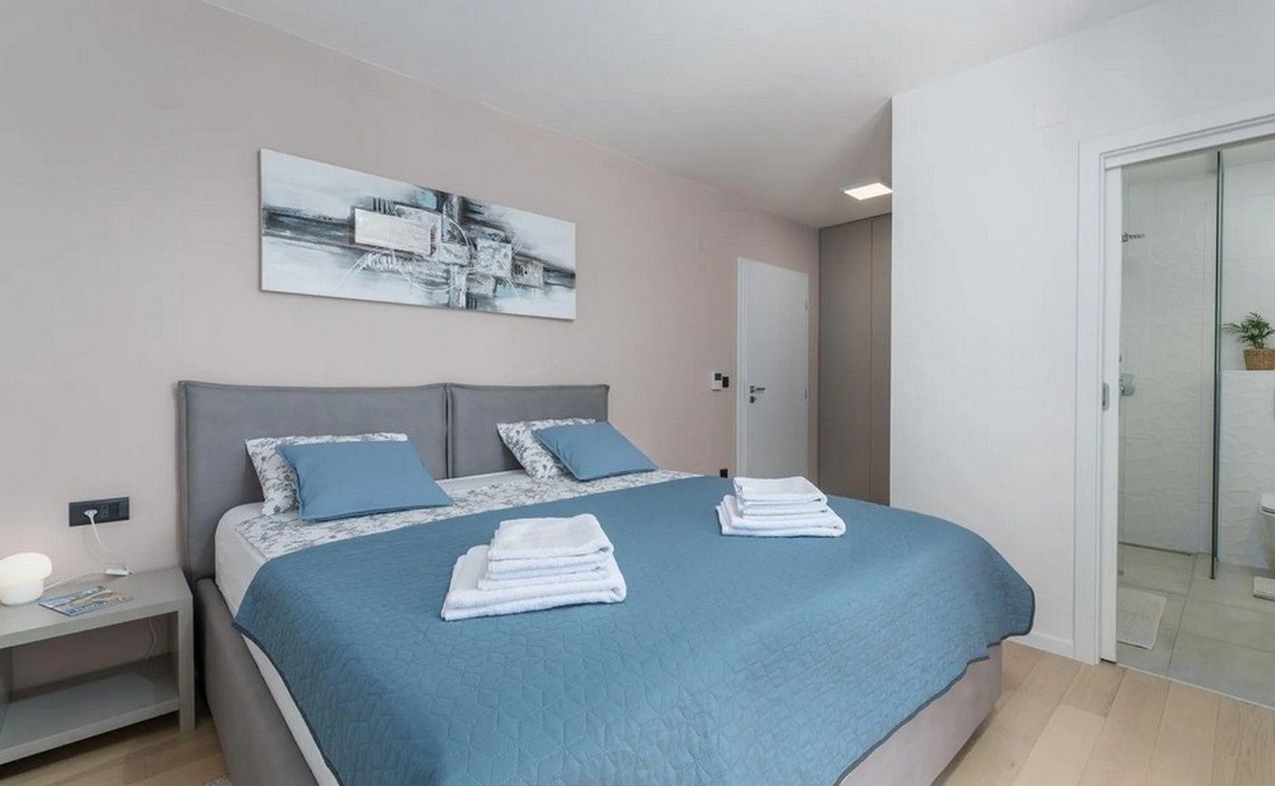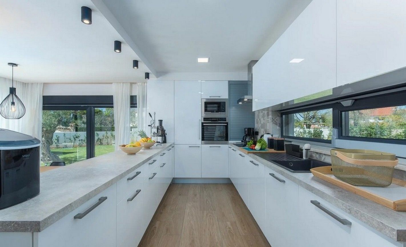 ISTRIE, POREČ - Moderní istrijská vila s vyhřívaným bazénem, 201 m2 V klidném istrijském prostředí, jen pár minut jízdy od pobřeží a malebného Poreče, se nachází elegantní moderní vila, která kombinuje pohodlí, styl a funkčnost. Na upraveném pozemku o rozloze 1 031 m² je čistá plocha domu 201,38 m², pečlivě rozložená na dvou podlažích pro maximální soukromí a pohodlí. Již při vstupu do přízemí pocítíte prostornost a harmonii prostoru: obývací pokoj, kuchyň a jídelna jsou propojeny do jednoho velkého celku, ze kterého se otevírá výhled na 38 m² vyhřívaný bazén a opalovací plochu. Ve stejném prostoru se nachází také jedna ze čtyř ložnic s vlastní koupelnou, další toaleta, prádelna, úložný prostor a kotelna. V patře se nacházejí zbývající tři ložnice, každá s vlastní koupelnou, a velká terasa. Vila je plně vybavená a zařízená a interiér vyzařuje moderní design a pečlivě vybrané detaily. Systém vytápění a chlazení je založen na tepelném čerpadle v kombinaci s podlahovým vytápěním a fan-coil jednotkami a další zabezpečení zajišťuje alarm a video dohled. V prostorné zahradě se nachází krytá letní kuchyně s krbem, ideální pro společenské akce a přípravu jídel venku. U bazénu je prostor na opalování a na nádvoří dětské hřiště. Parkování je zajištěno před domem. Celá zahrada je navržena tak, aby poskytovala naprosté soukromí a klid, což z této nemovitosti dělá ideální volbu pro rodinný život, ale také mimořádně atraktivní volbu pro turistický pronájem. Jen pár kilometrů daleko se nachází Poreč, jeden z nejznámějších turistických klenotů chorvatského pobřeží. Město je známé svým udržovaným uspořádáním, bohatou nabídkou a kulturními a historickými památkami, mezi nimiž vyniká Eufraziova bazilika. S až 21 plážemi oceněnými Modrou vlajkou a 37 kilometry členitého pobřeží nabízí Poreč perfektní kombinaci čistého moře, středomořského klimatu a zachovalého dědictví, což ji činí atraktivní pro pobyt po celý rok. Tato vila představuje kombinaci luxusu, pohodlí a istrijského kouzla – ideální místo pro ty, kteří hledají klidné místo, ale zároveň chtějí bydlet v blízkosti všech služeb, které nabízí jedno z nejžádanějších měst na Jadranu. Vážení potenciální kupující, těší nás, že máte zájem o nemovitosti z naší nabídky. Pro více informací a dohodu o prohlídce nemovitosti nás neváhejte kontaktovat. Prohlídka nemovitosti je možná pouze s podpisem Smlouvy o zprostředkování nemovitosti.