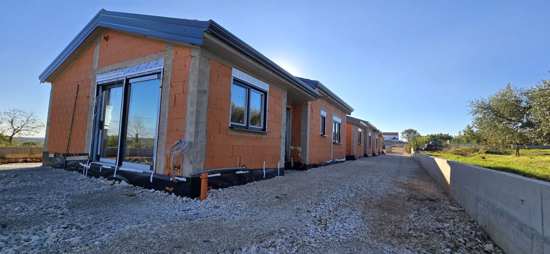 ISTRIE, POREČ - Přízemní dům, kombinace přírody a moderního Poreč je jedno z nejatraktivnějších měst na Istrii, které se nachází na západním pobřeží poloostrova a je známé svou dokonalou kombinací historie, přírody a moderního cestovního ruchu. Město zdobí impozantní Eufraziova bazilika pod ochranou UNESCO, malebné staré město s úzkými kamennými uličkami a také četné udržované pláže a promenády u moře. Poreč nabízí bohatou gastronomickou a enologickou nabídku, množství kulturních akcí a různé sportovní a rekreační aktivity po celý rok. Díky dobrému dopravnímu spojení a rozvinuté infrastruktuře je Poreč ideální jak pro dovolenou, tak pro celoroční bydlení. V půvabné vesničce Kaštelir, která se nachází v zeleném vnitrozemí západní Istrie, pouhých 13 kilometrů od pobřeží a města Poreč, se nachází tento moderní přízemní dům, který nabízí dokonalou kombinaci funkčnosti, pohodlí a moderního designu. Tato nemovitost, obklopená vinicemi, olivovými háji a typickou istrijskou krajinou, je ideální pro každého, kdo hledá klidný život v autentickém prostředí, a přesto v blízkosti veškeré potřebné občanské vybavenosti. Dům se rozkládá na 91 m² obytné plochy s pečlivě navrženým uspořádáním. Vstupní hala vede do prostorného obývacího pokoje, který je propojen s kuchyní a jídelnou v otevřeném konceptu. Velké prosklené stěny přivádějí dostatek přirozeného světla a poskytují přímý přístup na krytou terasu. Tři ložnice nabízejí pohodlný prostor pro celou rodinu, zatímco koupelna a další toaleta jsou navrženy s důrazem na funkčnost a estetiku. Vysoké stropy v celém domě dále otevírají prostor. Zahrada o rozloze přibližně 100 m² poskytuje možnost vybudování bazénu, což dává budoucímu majiteli svobodu vytvořit si venkovní prostor dle vlastních přání a potřeb. Nemovitost je postavena z kvalitních materiálů a vybavena pro pohodlný pobyt po celý rok. Jsou instalována plastová okna s trojsklem a hliníkové vstupní dveře v kombinaci bílé a antracitové barvy. V obývacím pokoji a chodbě je umístěno elektrické podlahové vytápění a klimatizace, celý systém lze ovládat pomocí mobilní aplikace. Pro zvýšení bezpečnosti je plánován kamerový dohled na obou stranách budovy a solární panely přispívají k energetické udržitelnosti. U vchodu bude instalována nabíjecí stanice pro elektromobily. Dům se prodává na klíč a dokončení prací je plánováno na konec roku 2025. Je také možné koupit v současné fázi výstavby, což ponechává prostor pro dohodu o finálních detailech a případných úpravách. Tento moderní istrijský přízemní dům představuje vynikající příležitost k bydlení, dovolené nebo investici, kombinuje klidnou lokalitu, kvalitní konstrukci a flexibilitu v uspořádání venkovního prostoru. Pro veškeré další informace a organizaci prohlídky jsme vám k dispozici.