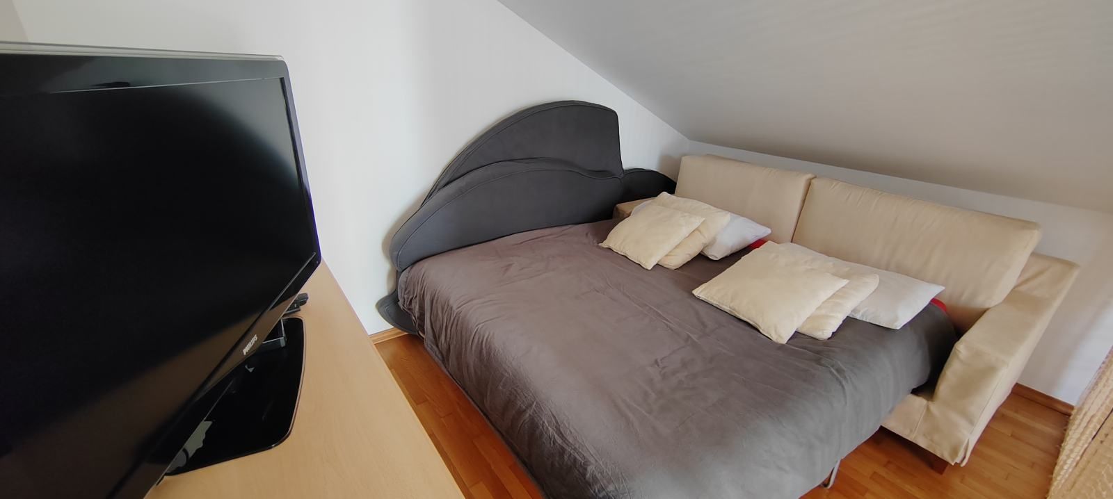 ISTRIE, PREMANTURA - mezonetový apartmán v klidné lokalitě a jen pár kroků od moře! V nabídce realitní kanceláře vám nabízíme okouzlující mezonetový apartmán, který nabízí perfektní kombinaci klidné přírody, blízkosti moře a funkčního obytného prostoru. Premantura je známá svou autentickou atmosférou, nedotčenou přírodou a blízkostí přírodního parku Kamenjak - ideální destinace pro milovníky moře, cyklistiky, potápění a pohodového istrijského životního stylu. Apartmán se nachází ve druhém patře úhledné budovy a skládá se z: * obývacího pokoje s kuchyní, * koupelny, * ložnice, * galerie (v současné době přestavěná na další ložnici, ale snadno adaptabilní jako pracovní prostor, ateliér nebo odpočinkový koutek), * balkonu, * přidruženého úložného prostoru v suterénu, * soukromé střešní terasy o rozloze až 24 m², která není zahrnuta v ceně apartmánu, ale je využitelná výhradně tímto apartmánem. Celková plocha apartmánu je 38,97 m² a další výhodou je funkční komín, který umožňuje instalaci kamen nebo krbu. Zvláštním klenotem této nemovitosti je prostorná střešní terasa vybavená elektrickou markýzou - ideální místo pro ranní kávu, opalování nebo večerní posezení s výhledem na přírodu. LOKALITA: * 500 metrů od moře a krásných pláží! * Vzdálenost od centra Puly je pouhých 10 minut jízdy autem, což z Premantury dělá perfektní rovnováhu mezi městským a přírodním životem. DOKUMENTACE: Vlastnictví 1/1 Bez věcného břemene Povolení k užívání *Možnost koupě na úvěr Tato nemovitost je ideální jako investice k turistickému pronájmu, víkendový dům nebo jako trvalý domov pro ty, kteří hledají klid, přírodu a blízkost moře - to vše v jedné z nejžádanějších lokalit na Istrii. Pro další informace nebo pro domluvení prohlídky nás prosím kontaktujte!