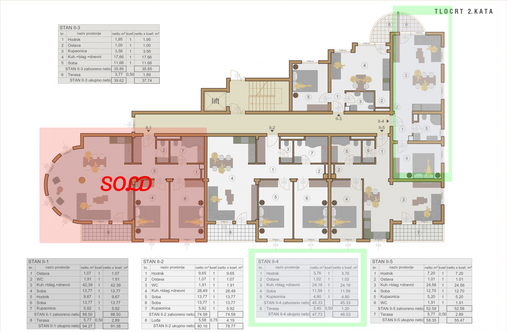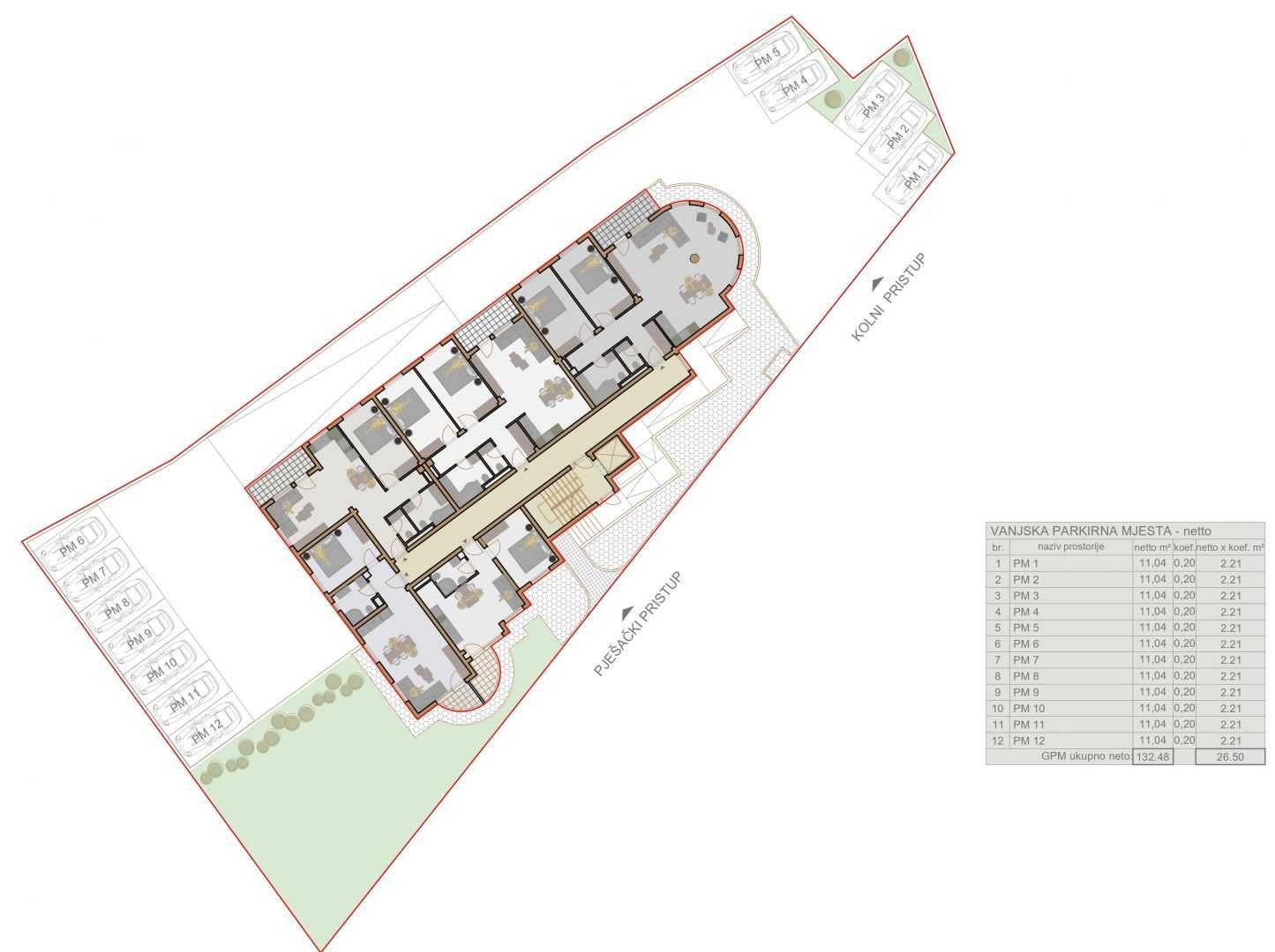 ISTRIE, PULA - Nedaleko centra města a slavné Verudy se nachází kvalitní novostavba v klidné ulici. Jsme hrdí na to, že vám můžeme představit nový stavební projekt umístěný v zajímavé lokalitě města Pula. Budova se totiž nachází jen 3 minuty jízdy od centra města a také jen 5 minut jízdy od známého turistického letoviska Verudela. Objekt je situován v klidné lokalitě, bez velkého ruchu v okolí jeho náplně nezbytné pro každodenní život. Budova se skládá z několika bytových jednotek, které se rozprostírají od přízemí budovy až po 3. patro. Vedle objektu jsou parkovací stání na zahradě objektu a také v garáži objektu, přičemž budoucí majitelé bytů mají možnost výběru parkovacího stání pro své plechové miláčky. POPIS BYTU; V tomto domě Vám tedy s hrdostí představujeme byt ve 2. patře, který tvoří celkem 46,53m2 čisté užitné plochy. Byt je uspořádán tak, že vstup do bytu má chodbu, která odděluje prostor bytu na soukromý prostor a prostor pro každodenní život a zábavu. V soukromé části bytu se tak nachází 1 prostorná ložnice, jedna větší koupelna a menší komora. Prostor pro každodenní život je řešen jako větší „open space“ prostor a je zde prostorná kuchyně, pohodlná jídelna a větší obývací pokoj. Celý tento prostor je zalitý přirozeným světlem, které do bytu proniká velkými prosklenými stěnami. Z obývacího pokoje je výstup na venkovní terasu. * Zákazníci mají možnost zvolit si koupi parkovacího stání, a to buď na zahradě objektu nebo na zahradě objektu; - Parkoviště v zahradě objektu; 8 290,00 € - Parkování na zahradě v závislosti na ploše: od 21 670,00 EUR do 49 390,00 EUR - Skladovací místnost v závislosti na ploše; od 10 430,00 € do 13 990,00 € TECHNICKÉ A DOPLŇUJÍCÍ ÚDAJE; * Každý byt v domě bude vybaven elektrickým podlahovým vytápěním * Bude instalováno kvalitní PVC truhlářství * Zateplení fasády 10 cm * V objektu je výtah, který spojuje garáž s každým podlažím domu * Kvalitní keramika bude instalováno na patrech (zákazníci mají zatím možnost ovlivnit !) * Možnost nastěhování je plánována na začátek roku 2025 POPIS LOKALITY; Budova se nachází na klidném místě ve městě Pula, pouhé 3 minuty jízdy od centra města a pouze 5 minut jízdy od známého turistického letoviska známého jako Verudela. Na Verudele najdete velké množství skalnatých a kamenitých pláží s křišťálově čistým mořem a v bezprostřední blízkosti budovy jsou četné restaurace, kavárny a také tržnice, vedle budovy je také malý obchod, stejně jako vše, co potřebujete pro bezpečný a klidný každodenní život moderního člověka. Jde zkrátka o nemovitost hodnou vaší pozornosti, která může posloužit jako ideální varianta pro soukromou investici nebo jako varianta skutečného rodinného domu. V případě jakýchkoliv dalších dotazů, potřebných informací nebo přání domluvit si schůzku k prohlídce místa a aktuálního stavu stavby nás neváhejte kontaktovat!