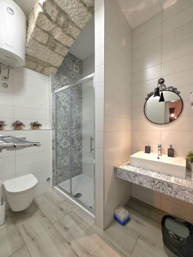 ISTRIE, PULA, CENTRUM - Zrekonstruovaný byt v přízemí rakousko-uherské budovy se soukromým vchodem V samém srdci historické Puly, obklopen okouzlujícími uličkami, kulturními památkami a vřelým prostředím starého města, se nachází tento kompletně zrekonstruovaný byt, který kombinuje historický charakter rakousko-uherské architektury a pohodlí moderního bydlení. Tento byt, který se nachází v přízemí menší, kompletně zrekonstruované budovy, nabízí vzácnou výhodu - vlastní, nezávislý vchod, který zajišťuje naprosté soukromí a dávku exkluzivity v samém centru města. POPIS BYTU: Byt se rozkládá na 58,68 m² obytné plochy a byl pečlivě navržen tak, aby poskytoval maximální funkčnost a flexibilitu. Vstupní prostor vede do prostoru, který je v současné době zařízen jako zóna pro relaxaci a společenské setkání, a který budoucí majitelé mohou snadno přeměnit na prostorný obývací pokoj s kuchyní a jídelnou, čímž vytvoří ideální místo pro relaxaci a setkávání s rodinou a přáteli. Níže se nacházejí dvě prostorné ložnice, každá s vlastní koupelnou, což tomuto bytu dodává zvláštní pohodlí a soukromí. Díky tomuto uspořádání nabízí byt možnost využití jako investiční nemovitost s možností pronájmu dvou samostatných místností se společným vstupním prostorem - ideální řešení pro ty, kteří hledají návratnost investice prostřednictvím turistického nebo dlouhodobého pronájmu. DALŠÍ INFORMACE: * Byt byl kompletně zrekonstruován a během rekonstrukce byly pečlivě zrekonstruovány všechny klíčové prvky: * Výměna rozvodů elektřiny, vody, kanalizace a internetu * Instalace nových PVC dřevěných truhlářských prvků * Instalace tepelné, hydroizolační a zvukové izolace * Nová betonová mezipodlažní konstrukce * Všechny stěny byly nově vyrovnány a podlahy zrekonstruovány moderními materiály Budova, ve které se byt nachází, je bytový dům s veškerou potřebnou dokumentací a vydaným kolaudačním rozhodnutím. Vlastnictví je čisté (1/1) a každý byt má vlastní elektroměr a vodoměr, což dále potvrzuje bezpečnost a transparentnost této nabídky. POPIS LOKALITY: Apartmán se nachází v samém centru Puly, jen pár kroků od nejznámějších městských atrakcí - Zlaté brány, Herkulovy brány, amfiteátru, starého městského fóra, pevnosti Kaštel a římského divadla. Je obklopen bohatým kulturním a městským obsahem: restauracemi, kavárnami, obchody, školami, školkami a ordinacemi lékařů. V blízkosti se nacházejí také zastávky městských autobusových linek, které spojují všechny části města a pobřeží s krásnými plážemi Puly. Ačkoli se apartmán nachází v samém centru, nachází se v klidnější oblasti a v bezprostřední blízkosti je k dispozici několik veřejných parkovacích míst. Majitelé mají možnost získat roční parkovací lístek, což tuto nemovitost činí ještě praktičtější pro bydlení nebo pronájem. ZÁVĚR: Tato nemovitost je ideální volbou pro každého, kdo chce žít v srdci Puly, v oblasti, která dýchá historií, ale zároveň nabízí pohodlí a estetiku moderního života. Ať už hledáte pohodlný domov ve městě nebo bezpečnou investici s vynikajícím potenciálem k pronájmu – tento byt nabízí ideální rovnováhu mezi stylem, lokalitou a funkčností. Pro jakékoli další informace nebo pro domluvení prohlídky nás neváhejte kdykoli kontaktovat.