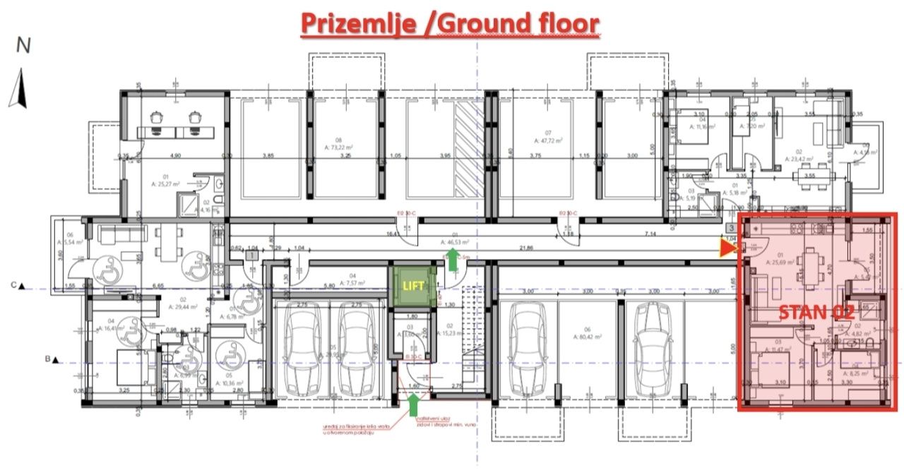 ISTRIE, PULA - Dvoupokojový byt 54,30 m2 v přízemí! Nabízíme byt v přízemí. Skládá se z chodby, kuchyně s jídelnou a obývacím pokojem, dvou ložnic, koupelny a lodžie. Vybavení bytu: * Byt je vybaven invertorovou klimatizací pro vytápění a chlazení, v koupelnách bude instalováno podlahové vytápění. V případě zájmu o podlahové vytápění v celém bytě je možné za příplatek. * PVC dveře, * bezpečnostní dveře * interkom, * satelitní anténa Poloha: Nemovitost se nachází v jedné z nejžádanějších lokalit v Pule. Blízkost veškeré občanské vybavenosti, jako jsou obchody, školy, školky, veřejná doprava atd., nezbytné pro každodenní fungování rodiny, dodává nemovitosti dodatečnou hodnotu. K bytu je nutné zakoupit jedno parkovací místo za cenu 8 162,50 € nebo garážové stání v závislosti na velikosti za cenu 22 446,88 € - 26 528,13 €. Plánované nastěhování 27. 10. V případě dalších dotazů a pro domluvení termínu prohlídky mě neváhejte kontaktovat.
