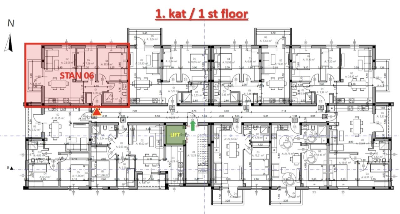 ISTRIE, PULA - Dvoupokojový byt 54,84 m2 Nabízíme byt v prvním patře bytového domu. Skládá se ze vstupní haly, kuchyně s jídelnou a obývacím pokojem, dvou ložnic, koupelny a balkonu. Vybavení bytu: * Byt je vybaven invertorovou klimatizací pro vytápění a chlazení, v koupelnách bude instalováno podlahové vytápění. V případě zájmu o podlahové vytápění v celém bytě je možné za příplatek. * PVC dveře, * bezpečnostní dveře * interkom, * satelitní anténa Poloha: Nemovitost se nachází v jedné z nejžádanějších lokalit v Pule. Blízkost veškeré občanské vybavenosti, jako jsou obchody, školy, školky, veřejná doprava atd., nezbytné pro každodenní fungování rodiny, dodává nemovitosti dodatečnou hodnotu. K bytu je nutné zakoupit jedno parkovací místo za cenu 8 162,50 € nebo garážové stání v závislosti na velikosti za cenu 22 446,88 € - 26 528,13 €. Plánované nastěhování 27. 10. V případě dalších dotazů a pro domluvení termínu prohlídky mě neváhejte kontaktovat.