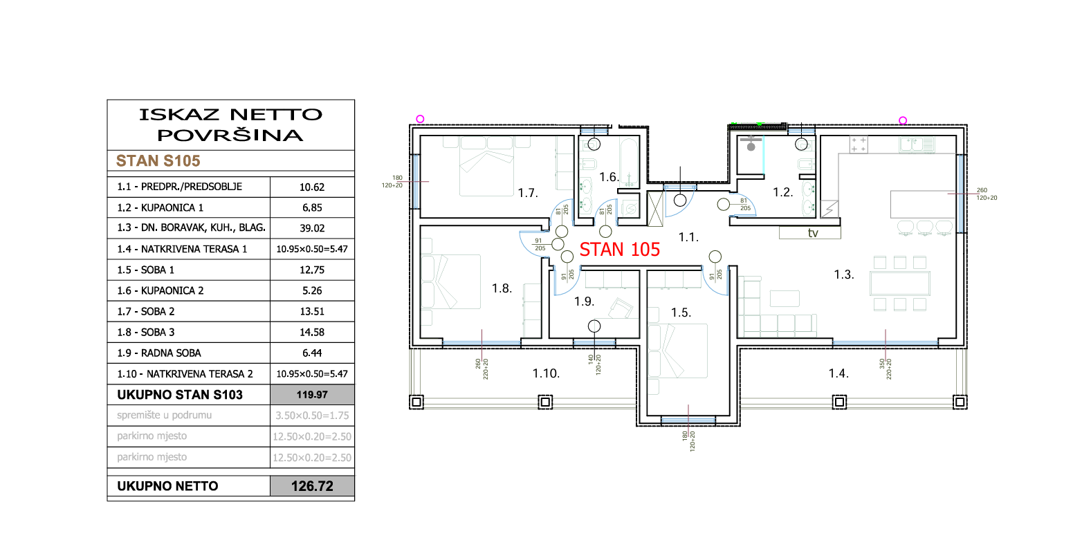 ISTRIE, PULA - Moderní novostavba - centrum! 2. patro! Představujeme vám projekt nacházející se v širším centru Puly. Moderní novostavba se rozkládá od přízemí až po třetí patro a má celkem 21 bytových jednotek. Nabízíme 10 bytových jednotek a daná jednotka se nachází ve druhém patře budovy. Skládá se ze vstupní haly, obývacího pokoje propojeného s kuchyní a jídelnou a výstupem na krytou terasu, chodby, tří ložnic, pracovny a 2 koupelen. K nemovitosti patří také sklad v suterénu budovy a dvě venkovní parkovací místa. Celková čistá plocha bytu je 126,72 m2. Všechny byty jsou vybaveny vysoce kvalitním a moderním vybavením a materiály: - podlahové plynové ústřední topení s termostaty v každé místnosti - PVC truhlářské výrobky s trojsklem, roletami a moskytiérami - vnitřní dveře s voštinovou výplní - vstupní dveře odolné proti vloupání a požáru - videovrátný - klimatizace Daikin (6kW) v obývacím pokoji (možnost instalace ve všech místnostech za příplatek) - dlažba nebo parkety/laminát pro podlahové vytápění (možnost výběru po dohodě s investorem) Předpokládané dokončení stavebních prací je březen 2027. Vynikající nemovitost a lokalita pro zahájení rodinného života nebo jako investiční nemovitost k dlouhodobému pronájmu. Pro veškeré další informace a dohodu o prohlídce nemovitosti volejte svého makléře!