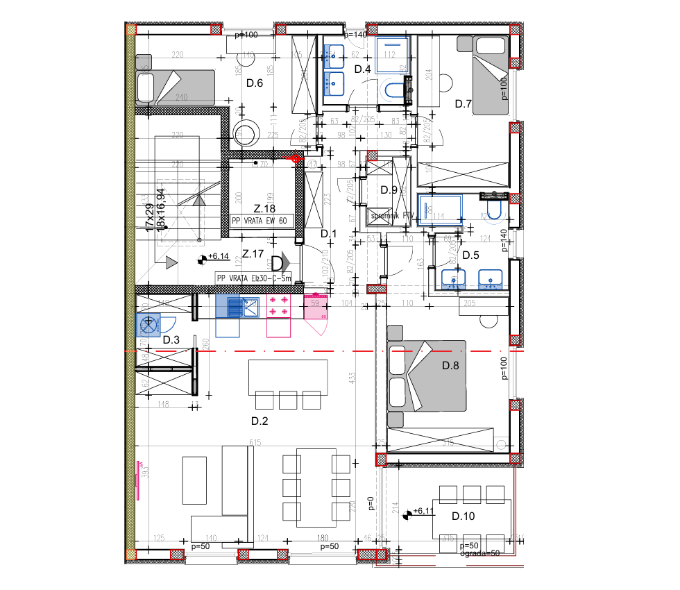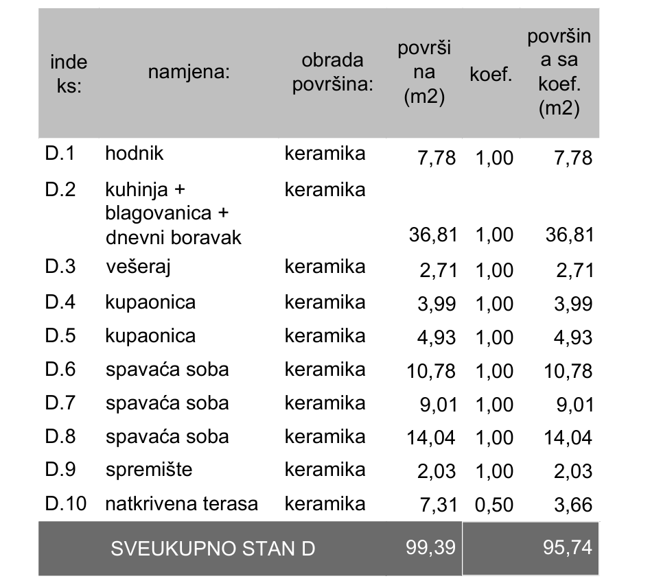 ISTRIE, PULA - Moderní novostavba! Penthouse! POPIS LOKALITY: Veli Vrh je jednou z nejžádanějších čtvrtí ve městě Pula. Vzhledem k tomu, že se v této čtvrti nacházejí jedny z nejlepších škol a školek, a vzhledem k vynikajícímu spojení do centra města a krásným plážím v nedalekém Štinjanu a Fažaně, je to přesně to, co dělá z Veli Vrhu zajímavou lokalitu. Přímo na Veli Vrhu, mírně v ústraní od hlavní silnice, se nachází tato krásná moderní budova. POPIS NEMOVITOSTI: Nová, moderní budova s vlastní podzemní garáží a výtahem zahajuje výstavbu a hledá své nové nájemníky a majitele. Budova se skládá ze 4 bytových jednotek, z nichž každá je vybavena podlahovým vytápěním s tepelným čerpadlem, invertorovými klimatizacemi v každé místnosti bytu, kombinací keramiky a parket jako podlahové krytiny, elektrickými roletami a moskytiérami na všech oknech a vynikajícím uspořádáním místností a samotného půdorysu, které poskytuje komfort a příjemný pobyt. POPIS BYTU: Budova B, byt D! Penthouse! Byt se skládá ze vstupní haly, obývacího pokoje s kuchyní a jídelnou, tří ložnic, dvou koupelen, prádelny, úložného prostoru a kryté terasy o celkové obytné ploše 95,74 m2. K bytu patří také úložný prostor a parkovací místa v podzemní garáži (č. 3 a 4). Se vším dalším příslušenstvím, které vypočítáme dle uvedených koeficientů, dospějeme k celkové ploše 113,66 m2. Pro veškeré další informace o nemovitosti a domluvení prohlídky volejte svého makléře!