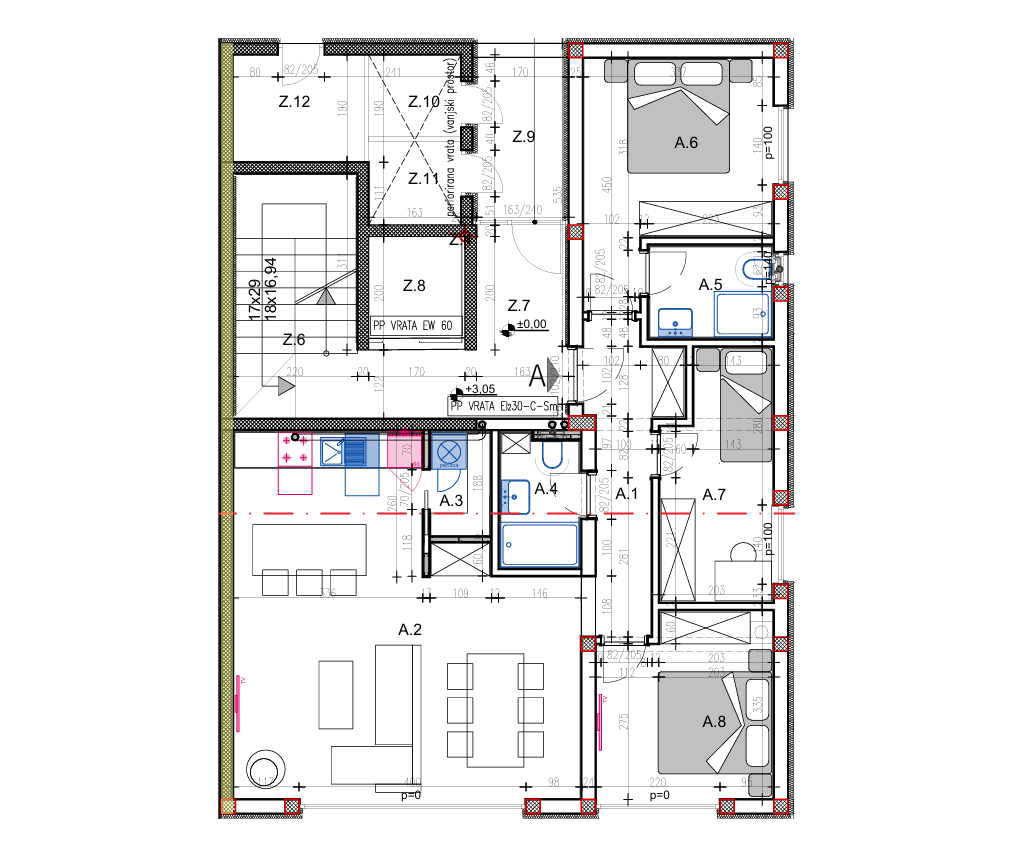 ISTRIE, PULA - Moderní novostavba! Přízemí s dvorem! POPIS LOKALITY: Veli Vrh je jednou z nejžádanějších čtvrtí ve městě Pula. Vzhledem k tomu, že se v této čtvrti nacházejí jedny z nejlepších škol a mateřských škol, a vzhledem k vynikajícímu spojení do centra města a na krásné pláže v nedalekém Štinjanu a Fažaně, je to přesně to, co dělá z Veli Vrhu zajímavou lokalitu. Přímo na Veli Vrhu, mírně ustupující od hlavní silnice, se nachází tato krásná moderní budova. POPIS NEMOVITOSTI: Nová, moderní budova s vlastní podzemní garáží a výtahem zahajuje výstavbu a hledá své nové nájemníky a majitele. Budova se skládá ze 4 bytových jednotek, z nichž každá je vybavena podlahovým vytápěním s tepelným čerpadlem, invertorovými klimatizacemi v každé místnosti bytu, kombinací keramiky a parket jako podlahové krytiny, elektrickými roletami a moskytiérami na všech oknech a vynikajícím uspořádáním místností a samotného půdorysu, které poskytuje komfort a příjemný pobyt. POPIS BYTU: Budova B, byt A. Byt v přízemí s dvorem! Byt se skládá ze vstupní haly, obývacího pokoje s kuchyní a jídelnou, tří ložnic, dvou koupelen a úložného prostoru o celkové ploše 78,27 m2. K bytu náleží také zahrada o rozloze 170 m2, úložný prostor a dvě parkovací místa v podzemní garáži (č. 5 a 6). Se všemi dalšími doplňky, které vypočítáme dle uvedených koeficientů, dospějeme k celkové ploše 113,11 m2. Pro veškeré další informace o nemovitosti a domluvení prohlídky volejte svého makléře!