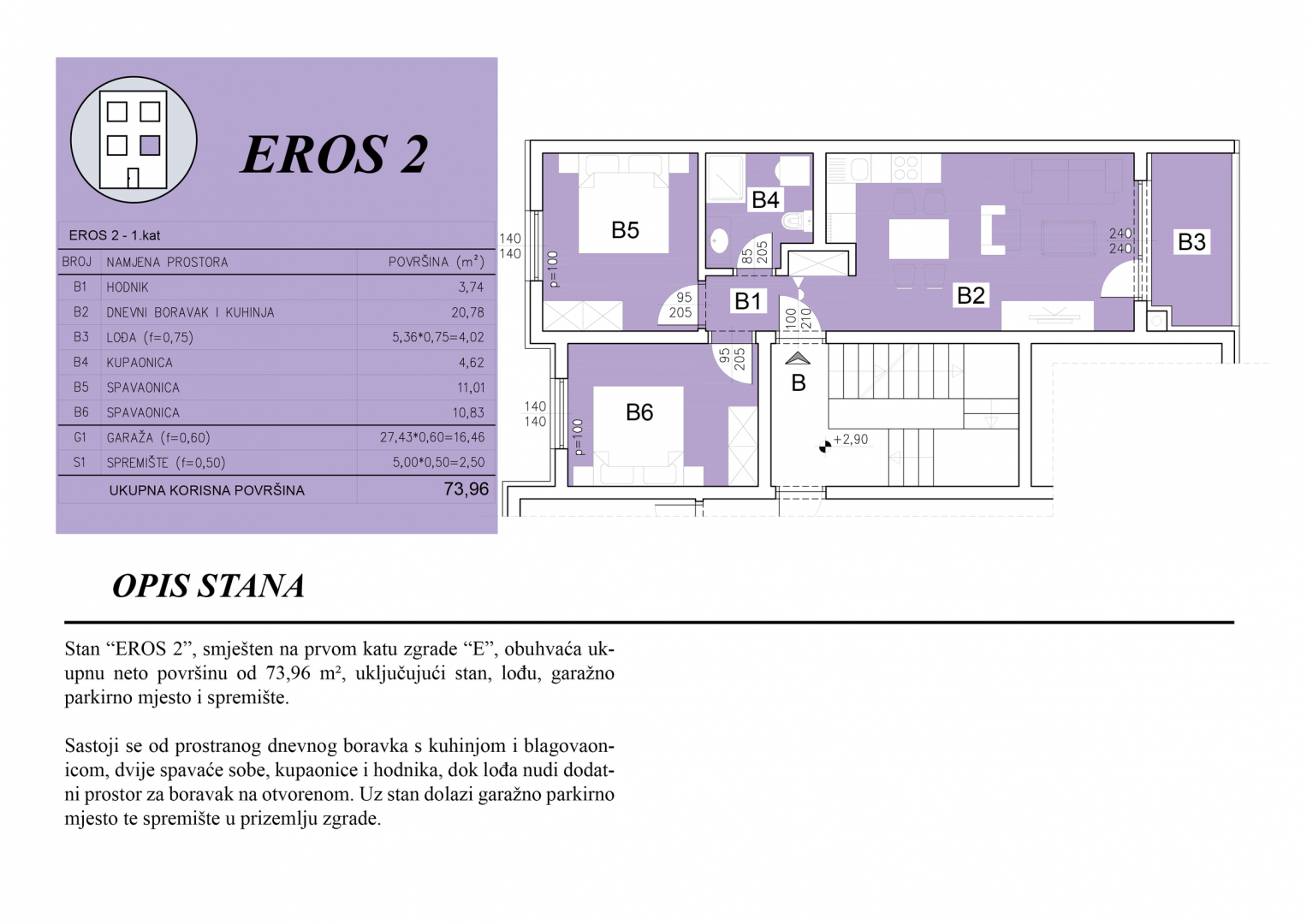 ISTRIE, PULA - Moderní novostavba v žádané lokalitě! V atraktivní lokalitě, u vjezdu do Puly, byl postaven nový projekt, který zahrnuje výstavbu moderního rezidenčního komplexu šesti budov s celkem 24 byty. Plánované dokončení výstavby je jaro 2027, se všemi potřebnými povoleními a energetickou certifikací. POPIS NEMOVITOSTI: Projekt počítá se čtyřmi byty v každé budově o rozloze od 60 m2 do 88 m2 - dva v prvním patře, dva ve druhém patře. Díky efektivnímu uspořádání bude mít každý byt dvě ložnice, prostornou kuchyň s obývacím pokojem, koupelnu a lodžii. Projekt zahrnuje také vlastní garáž nebo venkovní parkovací stání a úložný prostor pro každou bytovou jednotku v přízemí budovy. EXTERIÉR: Okolí budovy je plánováno tak, aby zahrnovalo zelené plochy s původními istrijskými rostlinami, trávník s automatickým zavlažováním, zpevněné chodníky a příjezdové cesty, živý plot pro soukromí, LED osvětlení s detekcí pohybu a udržitelný odvodňovací systém pomocí podzemních vpustí a absorpční studny. TECHNICKÉ ÚDAJE: Vnitřní design bytových domů bude splňovat vysoké standardy kvality (energetická třída A/A+): - Tepelně izolační fasáda (ETICS) a vysoce účinná tepelná izolace o tloušťce 10 cm (minerální vlna/EPS) - Vstupní dveře odolné proti vloupání, vnější truhlářské práce z PVC profilů s dvouvrstvým IZO sklem plněným argonem a rolety. - Ve všech místnostech bytů bude instalována vysoce kvalitní keramika moderního designu, pečlivě vybraná z hlediska odolnosti a estetiky. Na lodžiích bude použita protiskluzová keramika pro větší bezpečnost a pohodlí pobytu. - Vytápění a chlazení každé jednotky klimatizací a elektrické podlahové vytápění v koupelně, obývacím pokoji a kuchyni. V koupelnách jsou také elektrické radiátory (sušičky) s termostatem. LOKALITA: - blízkost hlavní městské silnice, rychlý přístup do centra Puly, autobusového nádraží a sjezdu na Istrijský Y. - jen pár minut chůze do obchodů Lidl, Plodin, Kaufland, Pevex, Bauhaus a dalších - ideální pro každodenní život. - vzdálenost do lesoparku Šijana je jen pár minut - ideální pro procházky, běh, cyklistiku a rodinné aktivity v přírodě. - v blízkosti se nacházejí mateřské školy, základní škola Šijana, sportovní zařízení a dětská hřiště. - osada má rezidenční charakter, je daleko od městského hluku, ale přesto velmi blízko veškeré základní občanské vybavenosti. Vynikající projekt ve vyhledávané lokalitě, který poskytuje vše, co potřebujete pro novou stránku svého života. Pro veškeré další informace a domluvení prohlídky nemovitosti volejte svého makléře!