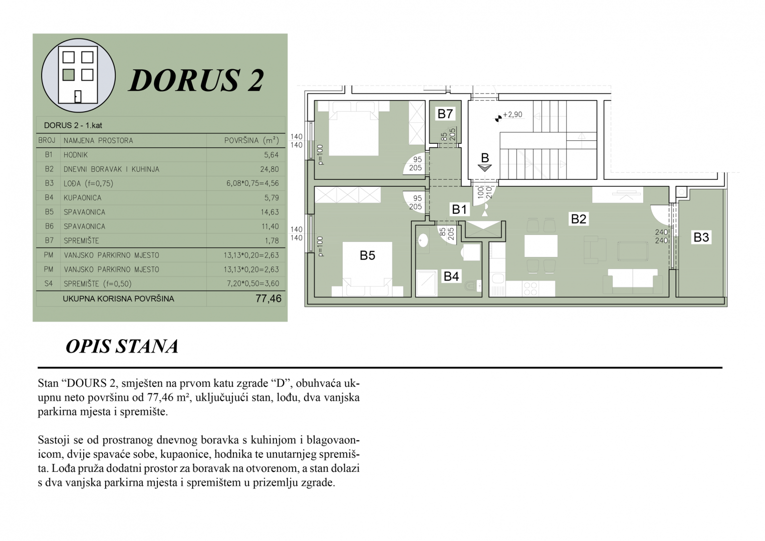 | Plocha celkem | 77 m² |