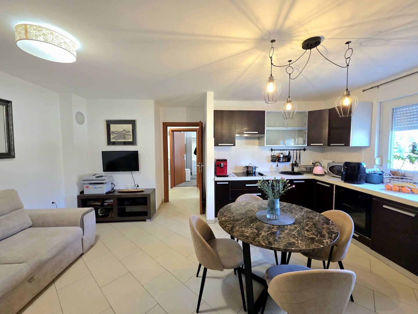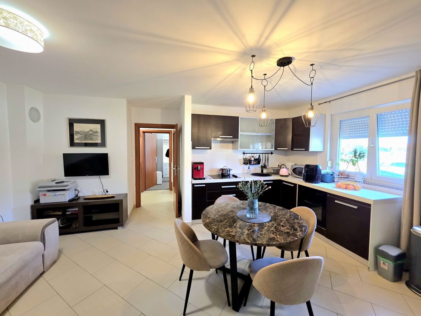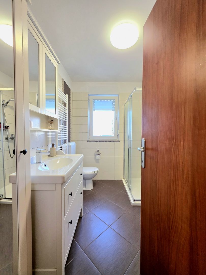 ISTRIE, PULA, VELI VRH – RODINNÝ BYT SE 2 LOŽNICEMI, UZAVŘENOU TERASOU A DVĚMA PARKOVACÍMI MÍSTY V klidné a příjemné lokalitě v pulské osadě Veli Vrh, v kvalitní starší novostavbě s celkem 12 bytovými jednotkami, se nachází tento světlý a funkční byt, který představuje ideální příležitost pro příjemný rodinný život nebo bezpečnou investici. Byt se nachází ve vysokém přízemí, což zajišťuje praktičnost každodenního života s pocitem soukromí a bezpečí. POPIS NEMOVITOSTI: Byt se rozkládá na 68 m² pečlivě uspořádané obytné plochy. Po vstupu do bytu nás přivítá vstupní hala, která propojuje všechny místnosti a nabízí prostor pro šatní skříň - detail, který přispívá k úhlednosti a funkčnosti domova. Centrální část bytu tvoří prostorný obývací prostor navržený podle principu "otevřeného prostoru". Harmonicky se zde prolíná plně vybavená kuchyň s jídelnou a pohodlný obývací pokoj - místo pro setkávání, relaxaci a vytváření každodenních vzpomínek. Zvláštní kouzlo tomuto prostoru dodává východ na uzavřenou terasu, ideální pro pití ranní kávy, čtení oblíbené knihy nebo vychutnávání večerní sklenky vína po celý rok. Byt je obohacen o hojnost přirozeného světla, které proniká okny a vytváří teplou, příjemnou atmosféru skutečného rodinného domu. Kromě toho má byt dvě ložnice. Větší pokoj poskytuje pohodlí hlavní ložnice, zatímco druhý je ideální jako dětský pokoj, kancelář nebo pokoj pro hosty - přizpůsobitelný vašim potřebám. K dispozici je také prostorná koupelna se sprchovým koutem, zařízená ve funkčním a moderním stylu. DALŠÍ VÝHODY - K této nemovitosti náleží také: * Velký úložný prostor v suterénu budovy (cca 6 m²) * Dvě vyhrazená parkovací místa v oploceném dvoře budovy * Byt se prodává zařízený (bez osobních věcí), což umožňuje budoucím majitelům rychlé a snadné nastěhování. * 3 klimatizace * Ústřední topení s pomocí topidel Nordic * Komín s možností instalace kamen na dřevo nebo pelety * PVC truhlářské práce s okenicemi * Zateplení fasády 10 cm * V celém bytě instalována kvalitní keramika * Budova má kolaudační povolení, byty jsou byty v řadách, vlastnictví je úhledné (1/1) a je možný nákup na úvěr. POPIS LOKALITY: Byt se nachází v klidném a rodinném prostředí, v blízkosti veškeré občanské vybavenosti potřebné pro pohodlný život - obchody, školy, školky, lékaři a další každodenní služby. Centrum Puly je vzdáleno pouhých 5 minut jízdy autem, zatímco krásné pláže a udržované promenády jsou dostupné přibližně za 6 minut, což z této lokality dělá perfektní kombinaci klidu a městské dostupnosti. Tato nemovitost představuje vynikající příležitost pro každého, kdo hledá teplý rodinný domov ve skvělé lokalitě nebo bezpečnou investici s dlouhodobým potenciálem. Pro jakékoli další informace, dotazy nebo přání domluvit si prohlídku nás neváhejte kdykoli kontaktovat. Těšíme se na Vaše pozvání.