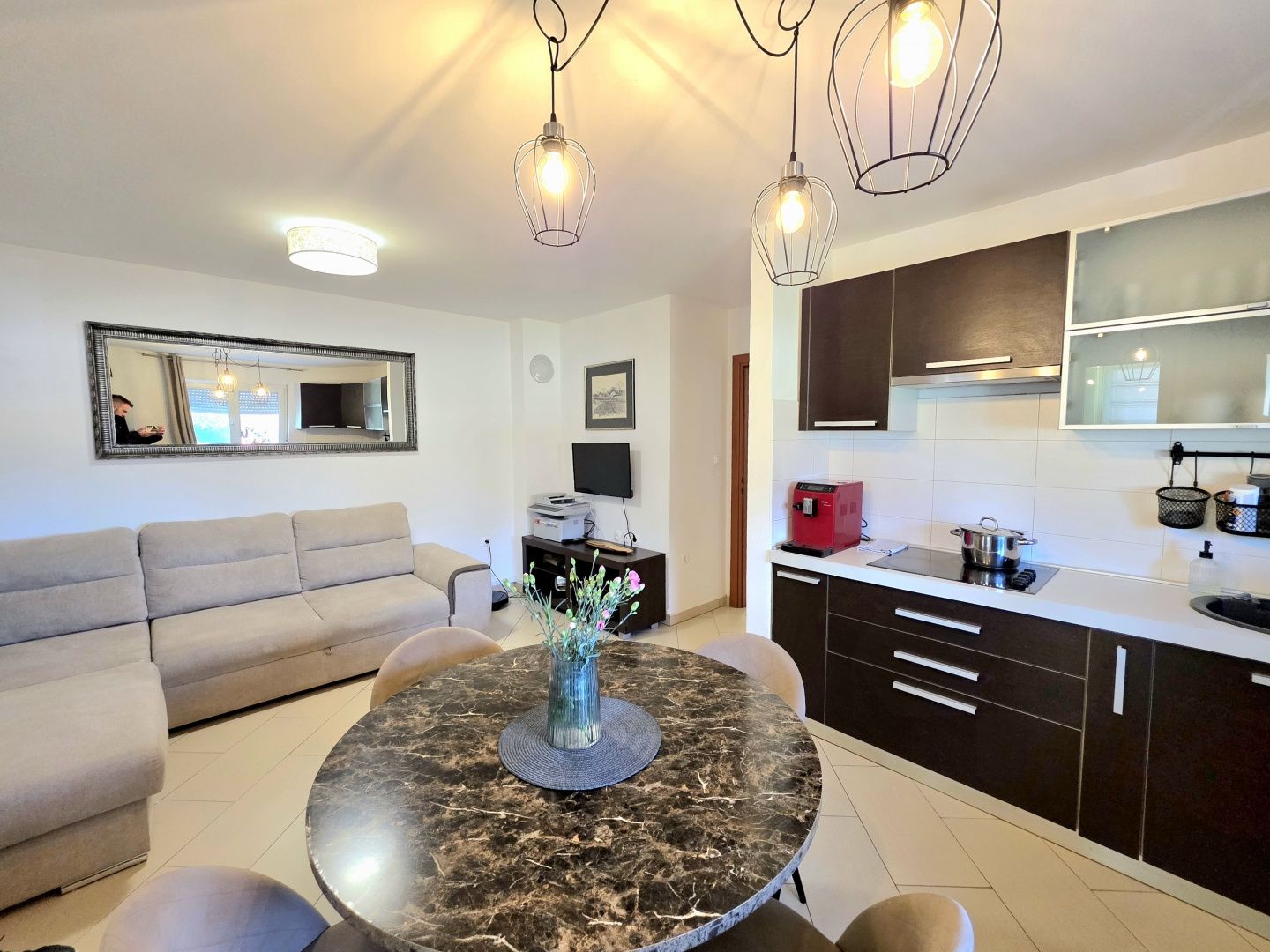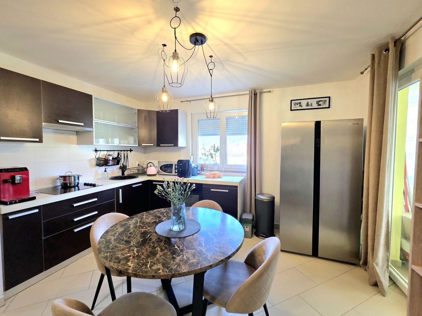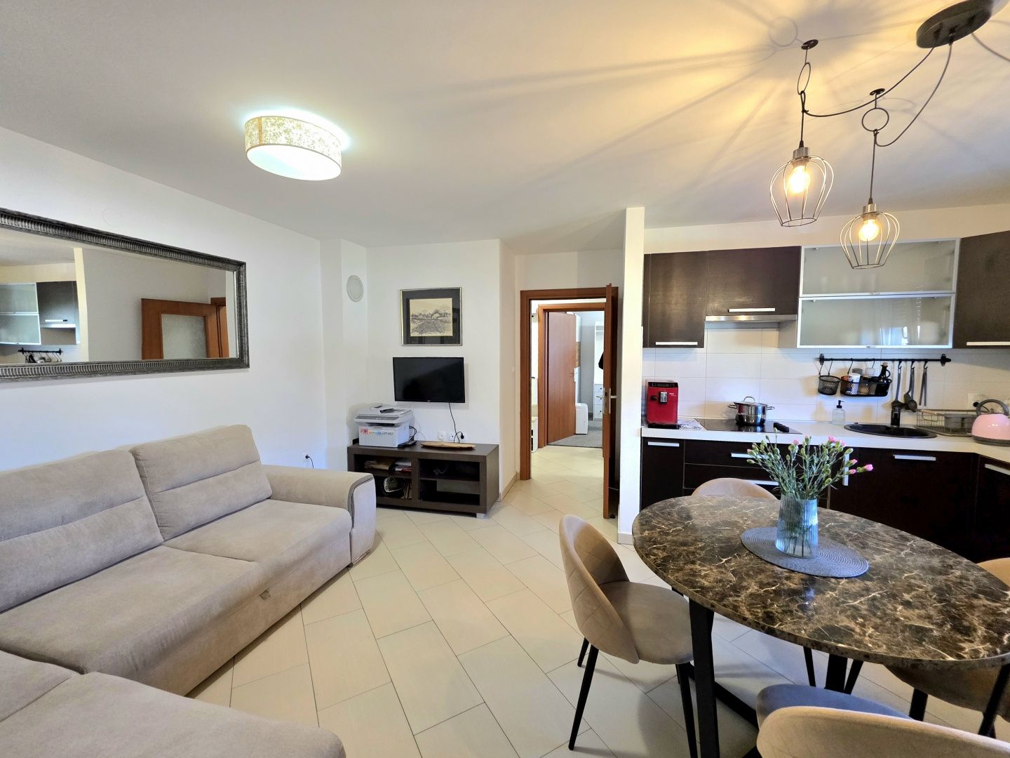 ISTRIE, PULA, VELI VRH – RODINNÝ BYT SE 2 LOŽNICEMI, UZAVŘENOU TERASOU A DVĚMA PARKOVACÍMI MÍSTY V klidné a příjemné lokalitě v pulské osadě Veli Vrh, v kvalitní starší novostavbě s celkem 12 bytovými jednotkami, se nachází tento světlý a funkční byt, který představuje ideální příležitost pro příjemný rodinný život nebo bezpečnou investici. Byt se nachází ve vysokém přízemí, což zajišťuje praktičnost každodenního života s pocitem soukromí a bezpečí. POPIS NEMOVITOSTI: Byt se rozkládá na 68 m² pečlivě uspořádané obytné plochy. Po vstupu do bytu nás přivítá vstupní hala, která propojuje všechny místnosti a nabízí prostor pro šatní skříň - detail, který přispívá k úhlednosti a funkčnosti domova. Centrální část bytu tvoří prostorný obývací prostor navržený podle principu "otevřeného prostoru". Harmonicky se zde prolíná plně vybavená kuchyň s jídelnou a pohodlný obývací pokoj - místo pro setkávání, relaxaci a vytváření každodenních vzpomínek. Zvláštní kouzlo tomuto prostoru dodává východ na uzavřenou terasu, ideální pro pití ranní kávy, čtení oblíbené knihy nebo vychutnávání večerní sklenky vína po celý rok. Byt je obohacen o hojnost přirozeného světla, které proniká okny a vytváří teplou, příjemnou atmosféru skutečného rodinného domu. Kromě toho má byt dvě ložnice. Větší pokoj poskytuje pohodlí hlavní ložnice, zatímco druhý je ideální jako dětský pokoj, kancelář nebo pokoj pro hosty - přizpůsobitelný vašim potřebám. K dispozici je také prostorná koupelna se sprchovým koutem, zařízená ve funkčním a moderním stylu. DALŠÍ VÝHODY - K této nemovitosti náleží také: * Velký úložný prostor v suterénu budovy (cca 6 m²) * Dvě vyhrazená parkovací místa v oploceném dvoře budovy * Byt se prodává zařízený (bez osobních věcí), což umožňuje budoucím majitelům rychlé a snadné nastěhování. * 3 klimatizace * Ústřední topení s pomocí topidel Nordic * Komín s možností instalace kamen na dřevo nebo pelety * PVC truhlářské práce s okenicemi * Zateplení fasády 10 cm * V celém bytě instalována kvalitní keramika * Budova má kolaudační povolení, byty jsou byty v řadách, vlastnictví je úhledné (1/1) a je možný nákup na úvěr. POPIS LOKALITY: Byt se nachází v klidném a rodinném prostředí, v blízkosti veškeré občanské vybavenosti potřebné pro pohodlný život - obchody, školy, školky, lékaři a další každodenní služby. Centrum Puly je vzdáleno pouhých 5 minut jízdy autem, zatímco krásné pláže a udržované promenády jsou dostupné přibližně za 6 minut, což z této lokality dělá perfektní kombinaci klidu a městské dostupnosti. Tato nemovitost představuje vynikající příležitost pro každého, kdo hledá teplý rodinný domov ve skvělé lokalitě nebo bezpečnou investici s dlouhodobým potenciálem. Pro jakékoli další informace, dotazy nebo přání domluvit si prohlídku nás neváhejte kdykoli kontaktovat. Těšíme se na Vaše pozvání.