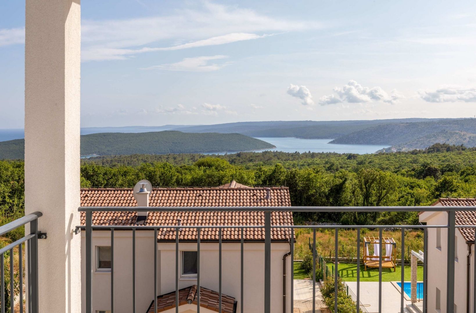 ISTRIE, RABAC - Dům s bazénem a výhledem na moře Na jihovýchodním pobřeží Istrie, kde se zelené kopce setkávají s mořem, kde se spojuje příroda a dědictví, pouhé čtyři kilometry od sebe se nacházejí dvě města s odlišným, ale vzájemně se doplňujícím charakterem - Labin a Rabac. Rabac je díky svým bílým oblázkovým plážím, bohaté středomořské vegetaci a křišťálově čistému a průzračnému moři nazýván perlou Kvarneru. Kdysi malá rybářská vesnice je dnes Rabac atraktivní turistickou destinací, která ve své síti malebných uliček skrývá nepřeberné množství kulturních akcí. Zelené okolí Rabacu a malebné vnitrozemí vás po celý rok zvou k dobrodružství, objevování a rekreaci. Nedaleko Rabacu a Labinu se prodává dům s bazénem a výhledem na moře. Nachází se v klidné vesnici, jejíž poloha nabízí autentický zážitek malého istrijského městečka, intimitu a úlevu od každé hektické námahy a hluku a zároveň blízko moře a městské vybavenosti. Kromě lokality, která poskytuje naprostý komfort, se nemovitost vyznačuje také kvalitou konstrukce, která zaručuje dlouhodobou spokojenost a kvalitu bydlení. Komfortní montovaný dům, částečně obložený kamenem, tvarově i barevně splývá s osadou a krajinou a rozkládá se na třech elegantně zařízených a dobře vybavených podlažích s funkčním půdorysem. Suterén se skládá z ložnice s kuchyňským koutem a vlastní koupelnou. Přízemí se skládá z obývacího pokoje a jídelny s přístupem na krytou terasu, kuchyně, ložnice s vlastní koupelnou, toalety pro hosty a úložného prostoru. První patro se skládá ze tří ložnic, jedné koupelny a terasy odkryté pergolou. Dvůr je oplocený a zahradnicky upravený a bazén s opalovací plochou poskytuje úplnou harmonii. Výjimečná poloha a prostorové uspořádání interiéru i exteriéru této nemovitosti poskytují příležitost pro pohodlný rodinný život nebo investici do turistického pronájmu. Prodávající dané nemovitosti je právnická osoba a DPH není zahrnuta v uvedené ceně.