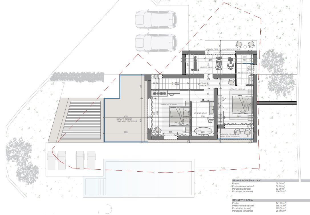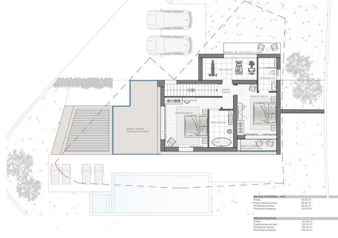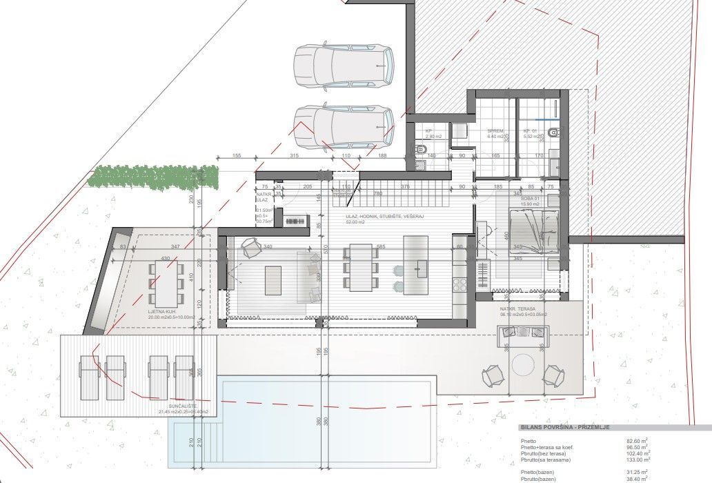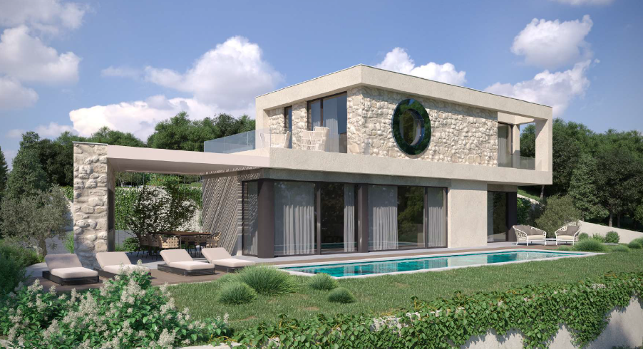 ISTRIE, RABAC - Moderní vila s bazénem a výhledem na moře Na jihovýchodním pobřeží Istrie, kde se zelené kopce setkávají s mořem, kde se snoubí příroda a dědictví, jsou dvě města podobné velikosti, ale s odlišnými, ale vzájemně se doplňujícími charaktery - Labin a Rabac. Malebné městečko Labin se tyčí na kopci vysokém 320 m, pouhých pět kilometrů od bílých oblázkových pláží v Rabacu. Labin, protkaný bohatou historií a hornictvím, které poznamenaly tento region, je dnes na krátkou dobu vyhlášenou nezávislou republikou fascinujícím městem rozporů; staré a nové, historie a současnost, turistika a umění. Nedaleko Rabacu a Labinu je na prodej tato exkluzivní, samostatně stojící, moderní vila s bazénem a krásným výhledem na moře. Čistá plocha vily s terasami je 165,15 m2 a bez teras 141,65 m2. Přízemí se skládá z kuchyně a obývacího pokoje s konceptem otevřeného prostoru, jedné ložnice s koupelnou, komory a další koupelny. Z ložnice a obývacího pokoje je vstup na prostornou krytou terasu, která dále vede k velkému bazénu. V patře jsou další dvě ložnice, každá s vlastní koupelnou. K dispozici je také soukromá posilovna. Pokoje mají přístup na kryté terasy s fantastickým výhledem na moře. Zvláštnost a jedinečnost této moderní vily spočívá v kulatém okně, které ukáže odraz moře. Samotná vila se nachází na pozemku o výměře 594 m2, na kterém je krásný bazén s prostorem na slunění a spoustou zeleně a vysázenými rostlinami. Pro teplé letní dny je k dispozici také letní kuchyně. Pro vaše plechové miláčky jsou k dispozici dvě parkovací místa. Vzhledem ke své poloze a fascinujícímu výhledu na moře se jedná o ideální investiční příležitost k pronájmu během turistické sezóny, ale také pro ty, kteří hledají ideální bydlení, daleko od městského ruchu a přitom ne příliš daleko od veškeré občanské vybavenosti. život.