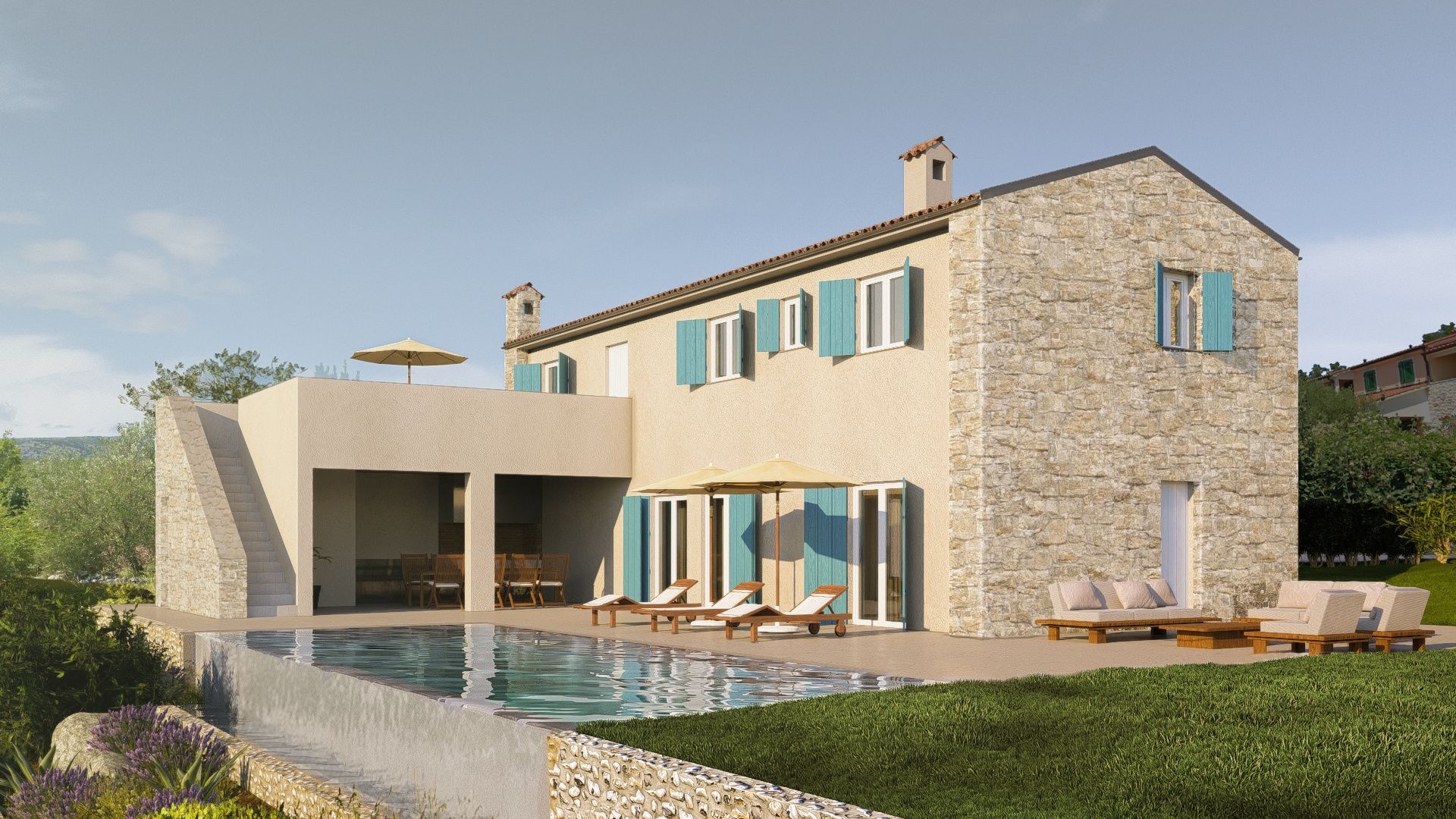 ISTRIE, RABAC - Prostorný stavební pozemek se stavebním povolením - Výhled na moře!