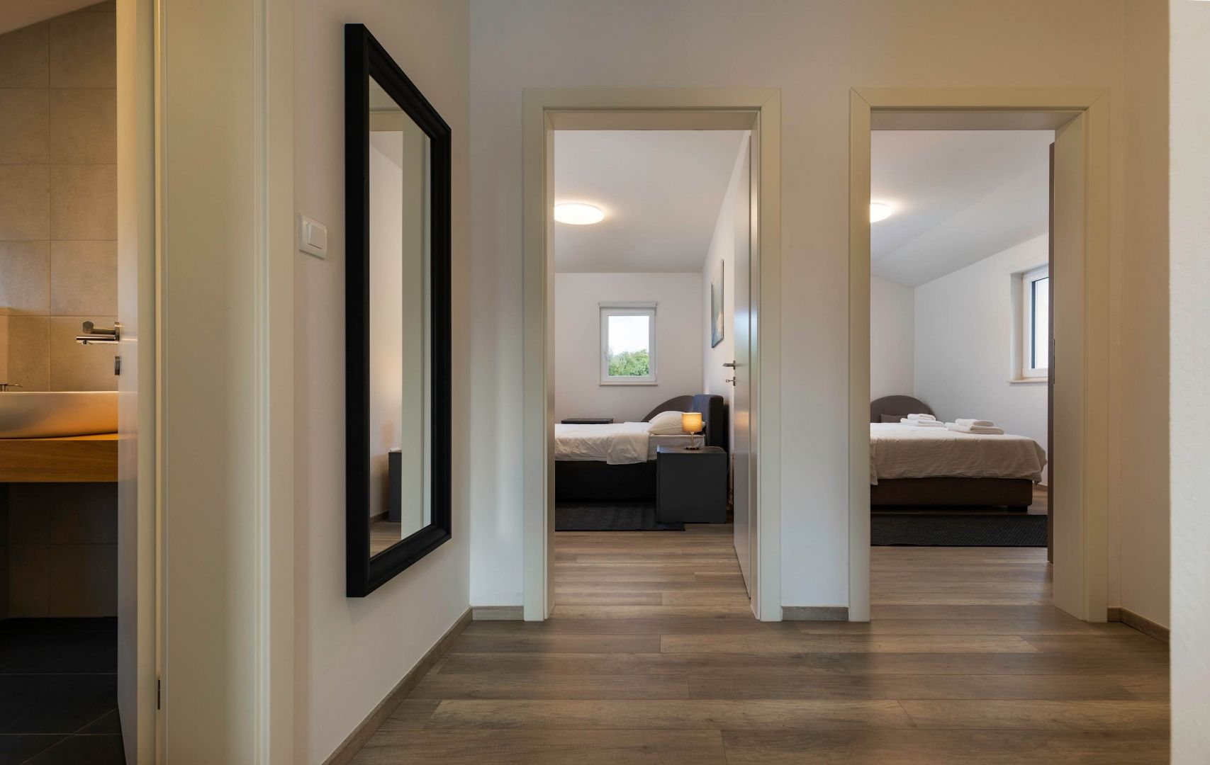 ISTRIE, RABAC - Středomořský dům s bazénem a výhledem na moře Na jihovýchodním pobřeží Istrie, kde se zelené kopce setkávají s mořem, kde se spojuje příroda a dědictví, pouhé čtyři kilometry od sebe se nacházejí dvě města s odlišným, ale vzájemně se doplňujícím charakterem - Labin a Rabac. Rabac je díky svým bílým oblázkovým plážím, bohaté středomořské vegetaci a křišťálově čistému a průzračnému moři nazýván perlou Kvarneru. Kdysi malá rybářská vesnice je dnes Rabac atraktivní turistickou destinací, která ve své síti malebných uliček skrývá nepřeberné množství kulturních akcí. Zelené okolí Rabacu a malebné vnitrozemí vás po celý rok zvou k dobrodružství, objevování a rekreaci. Nedaleko Rabacu a Labinu se prodává středomořský dům s bazénem a výhledem na moře. Nachází se v klidné vesnici, jejíž poloha nabízí autentický zážitek malého istrijského městečka, intimitu a úlevu od každé hektické námahy a hluku, a zároveň je blízko moře a městské vybavenosti. Kromě lokality, která poskytuje naprostý komfort, se nemovitost vyznačuje také kvalitou konstrukce, která zaručuje dlouhodobou spokojenost a kvalitu bydlení. Komfortní montovaný dům, částečně obložený kamenem, tvarově i barevně splývá s osadou a krajinou a rozkládá se na dvou elegantně zařízených a dobře vybavených podlažích s funkčním půdorysem. Přízemí se skládá z obývacího pokoje a jídelny s přístupem na terasu zastřešenou pergolou, kuchyně, ložnice a koupelny, zatímco první patro se skládá ze tří ložnic, dvou koupelen a terasy nezastřešené pergolou. Dvůr je oplocený a zahradnicky upravený a bazén s opalovací plochou zajišťuje úplnou harmonii. Výjimečná poloha a prostorové uspořádání interiéru i exteriéru této nemovitosti poskytují příležitost pro pohodlný rodinný život nebo investici do turistického pronájmu. Prodávající dané nemovitosti je právnická osoba a DPH není zahrnuta v uvedené ceně.