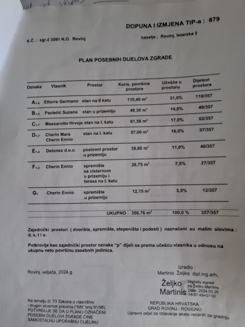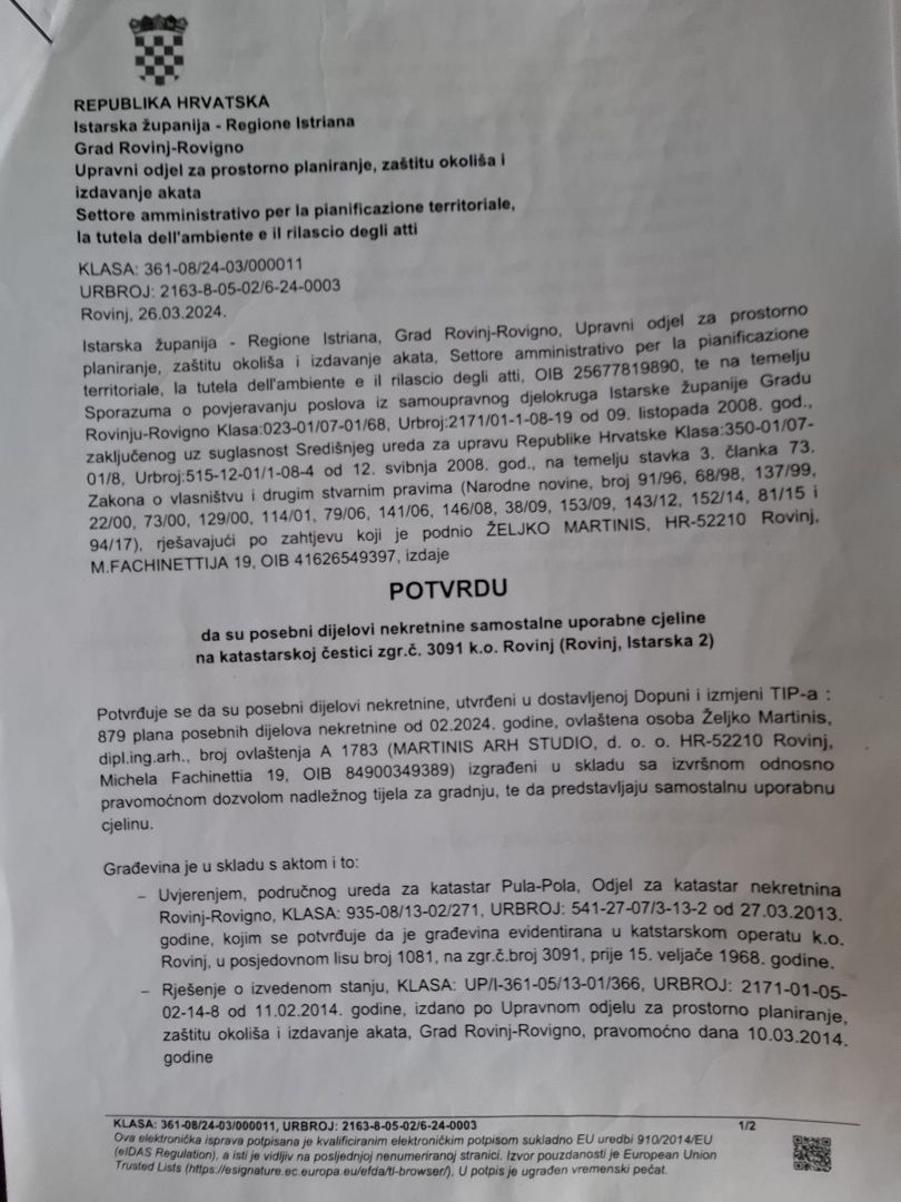 ISTRIE, ROVINJ - Apartmán s historickým charakterem 300 m od moře V samém srdci Rovinje, města nadčasové krásy a jedné z nejžádanějších lokalit na Jadranu, se na trhu nabízí vzácná příležitost - prostorný a reprezentativní apartmán nacházející se v autentické rakousko-uherské budově z roku 1900. Apartmán o rozloze 110 m² zabírá celé druhé patro budovy, což zajišťuje naprosté soukromí a pocit exkluzivity. Prostor se vyznačuje impozantními stropy až do výšky 3 metrů, dostatkem přirozeného světla a klasickou architektonickou elegancí, která je dnes na trhu extrémně vzácná. Pečlivě navržená dispozice zahrnuje: * vstupní halu * kuchyň propojenou s obývacím pokojem * tři velké a světlé ložnice * koupelnu * samostatnou toaletu Dodatečnou hodnotu této nemovitosti dodává část podkroví, která k apartmánu patří, a také upravená zahrada pro společné užívání nájemníky - skutečná rarita v samém centru města. Tato nemovitost představuje výjimečnou investiční příležitost, ať už jako luxusní soukromý apartmán, reprezentativní rezidence nebo jako nemovitost s vysokou hodnotou pro prémiový turistický pronájem. Poloha pouhých 300 metrů od moře v kombinaci s historickým šarmem a velkou rozlohou činí tuto nabídku téměř neopakovatelnou.