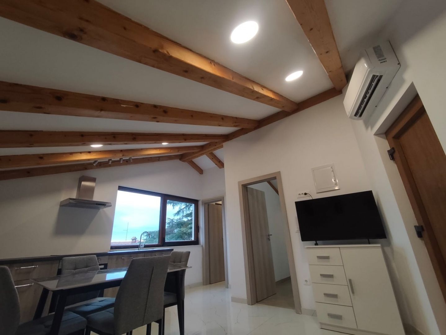 ISTRIE, ROVINJ - Exkluzivní apartmán v Rovinji s výhledem V jednom z nejkrásnějších a nejžádanějších měst Středomoří - Rovinji, je k dispozici nově postavený, moderně zařízený a plně vybavený apartmán ve druhém patře rodinného domu k dlouhodobému pronájmu po celý rok, který se nachází ve výjimečné lokalitě pouhých 50 metrů od moře, s výhledem na staré město. Apartmán o rozloze cca 48 m² byl pečlivě navržen tak, aby poskytoval maximální pohodlí a funkčnost. Kuchyň je plně vybavená a zahrnuje lednici, pracovní desku, myčku nádobí, indukční varnou desku a digestoř. Koupelna je moderní a elegantní, vybavená sprchovým koutem, pračkou, topením a veškerým standardním vybavením. Nový klimatizační systém Daikin zajišťuje příjemnou teplotu po celý rok, což zajišťuje dokonalé teplo v zimě a příjemné ochlazení v létě s minimální spotřebou energie. zcela nový interiér a nábytek vlastní parkovací místo voda v ceně pronájmu klidná, elitní lokalita v bezprostřední blízkosti moře ideální pro dlouhodobé bydlení min. Pronájem na 1 rok Rovinj, známý svým romantickým starým městem, úzkými dlážděnými uličkami, vynikající gastronomií a křišťálově čistým mořem, nabízí jedinečný životní styl, kde se příroda, kultura a středomořské kouzlo dokonale prolínají. Život v Rovinji znamená užívat si každodenní pocit dovolené, ale také mít veškeré vybavení na dosah ruky. Tento byt představuje vzácnou příležitost na trhu dlouhodobého pronájmu - perfektní kombinaci lokality, kvality a pohodlí. Příležitost, kterou byste si neměli nechat ujít. Pro více informací a prohlídku nás prosím kontaktujte.