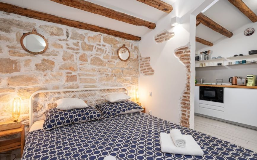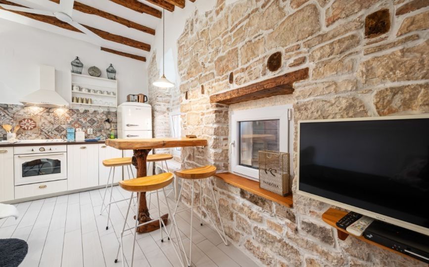 ISTRIE, ROVINJ - Rustikální perla v srdci Rovinje PŘÍLEŽITOST!!! Rustikální perla v srdci staré Rovinje - dva apartmány s duší a zavedeným podnikáním V samém srdci magického starého města Rovinje, jen pár kroků od okouzlující ulice Carera, se nachází tento krásný apartmán, který vyzařuje charakter, teplo a rustikální kouzlo Středomoří. Nachází se ve třetím patře autentické kamenné budovy bez výtahu a skládá se ze dvou zcela samostatných bytových jednotek - ideální řešení pro ty, kteří chtějí spojit požitek s investicí. Celková plocha je 51 m², přičemž větší apartmán zabírá 35 m² a menší 16 m². Větší apartmán nabízí útulnou kuchyň a obývací pokoj plný světla, samostatnou ložnici a elegantní koupelnu. Menší apartmán, navržený jako okouzlující studio, je perfektním malým koutkem pro dva - s praktickou kuchyní, moderní koupelnou a intimní spací částí, která je diskrétně oddělena od zbytku prostoru. Celá nemovitost byla v roce 2018 kompletně zrekonstruována, přičemž byla věnována zvláštní pozornost zachování prvků autentického rovinjského stylu – rustikální detaily, teplé tóny, dřevěná okna a pečlivě vybraný nábytek vytvářejí pocit domova s duší. Oba apartmány jsou plně vybavené a klimatizované, zařízené s láskou a noblesou a prodávají se zařízené a připravené k nastěhování – bez jakýchkoli dalších investic. Tato nemovitost vyzařuje energii staré Rovinje a nabízí dvojí využití – je ideální pro klidný osobní život v srdci historického centra, ale také jako vynikající investice s již zavedeným turistickým podnikáním a jistým příjmem. Lokalita je bezkonkurenční – v bezprostřední blízkosti se nacházejí malebné obchody, restaurace, galerie, promenády a městský přístav, vše, co dělá život v Rovinji výjimečným. Pro veškeré další informace o nemovitosti a pro domluvení prohlídky volejte svého makléře!
