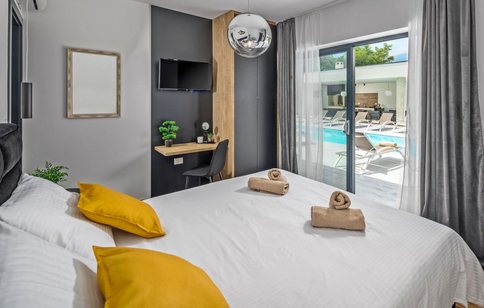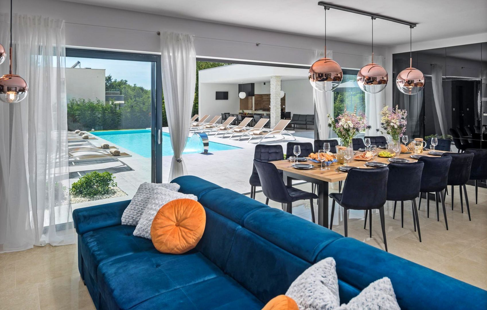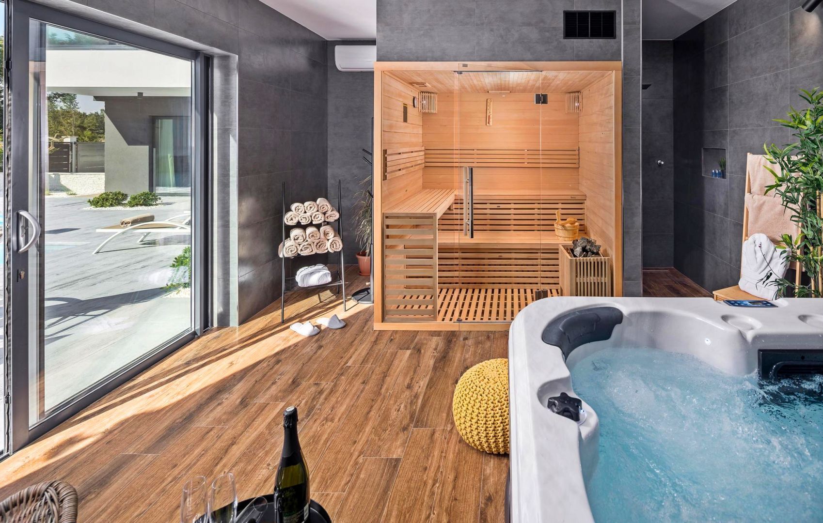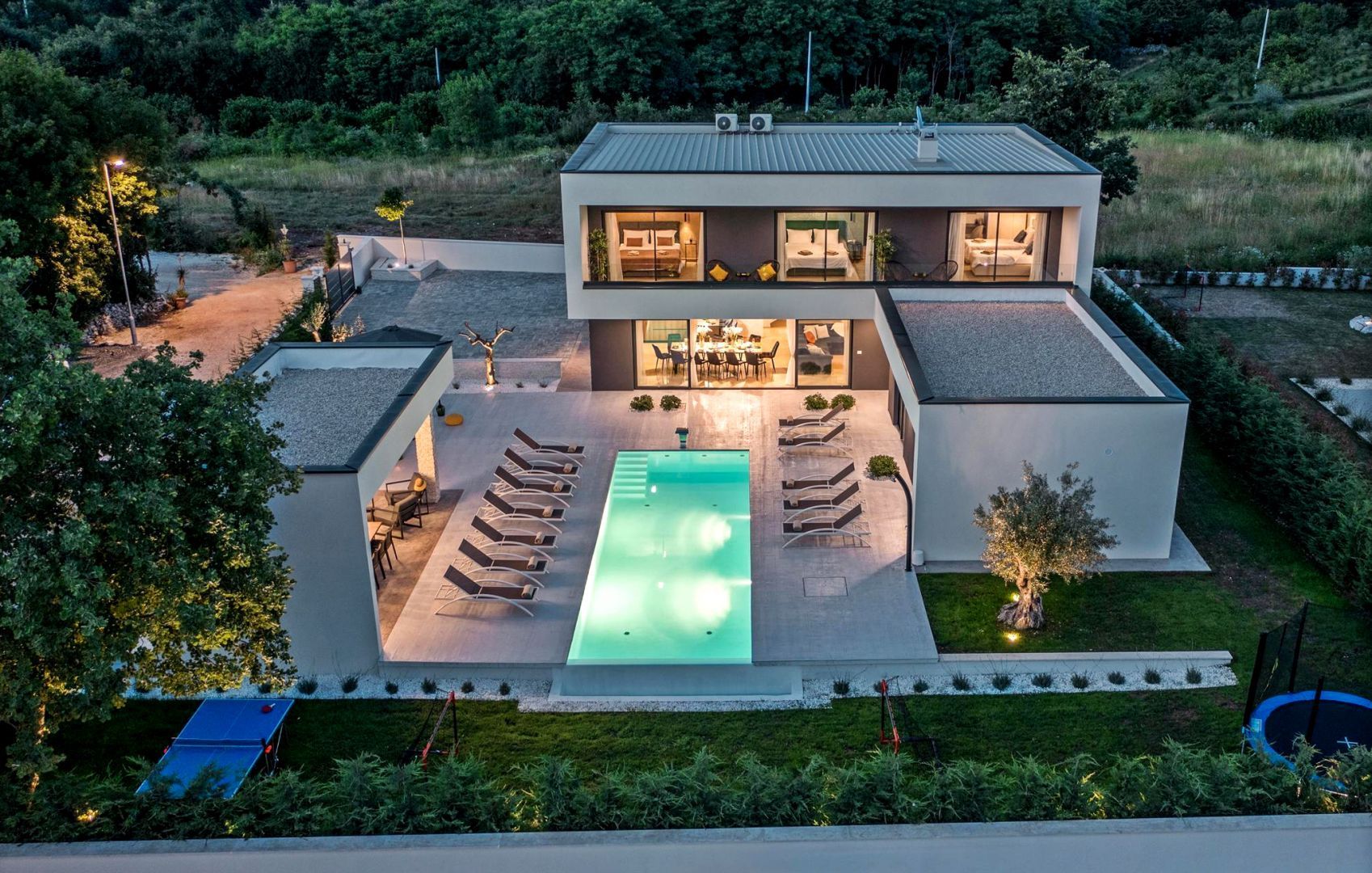 ISTRIE, ROVINJ - Vila moderní architektury Nejatraktivnější a nejmalebnější istrijské město Rovinj, se starým městským centrem pod ochranou UNESCO, je věčnou inspirací pro romantiky a umělce a jednou z nejrozvinutějších turistických destinací v Chorvatsku. Nachází se na západním pobřeží Istrie a zdobí ho velmi členité souostroví s až 14 ostrůvky a 6 útesy podél 67 kilometrů pobřeží, které je chráněným přírodním dědictvím. Krásné členité pobřeží, specifické mírné středomořské mikroklima, vynikající gastronomická nabídka, celoroční kulturní akce a přátelští a laskaví hostitelé dělají z tohoto malého města kouzelné město. V klidné čtvrti nedaleko města Rovinj, obklopená přírodou, rodinnými domy a rekreačními objekty, se prodává vila moderní architektury. Mikrolokace nabízí autentický zážitek malého istrijského města, intimitu a odpočinek od hluku a zároveň blízkost dynamických istrijských měst s řadou služeb. Kromě lokality, která poskytuje naprostý komfort, se nemovitost vyznačuje také kvalitou výstavby, která zaručuje dlouhodobou spokojenost a kvalitu bydlení. Dům se svou moderní architekturou nenarušuje životní prostředí, ale vytváří synergii přírodního okolí a moderního designu. Je definován jako jedna bytová jednotka, jejíž plocha je rozložena do dvou podlaží; přízemí a první patro. Přízemí se skládá z wellness zóny se saunou a vířivkou, otevřeného prostoru, který spojuje obývací pokoj, jídelnu a kuchyň, dvou ložnic s vlastními koupelnami, toalety pro hosty a úložné místnosti. První patro se skládá ze tří ložnic s vlastními koupelnami a lodžie, na kterou mají přístup všechny pokoje. Dvůr je ambientálně a zahradně upraven a oplocen a úplnou harmonii zajišťuje 38 m² velký bazén s opalovací plochou a krytou letní kuchyní. Poloha, struktura a komfort činí z této nemovitosti ideální příležitost pro klidný rodinný život i investici za účelem turistického pronájmu.