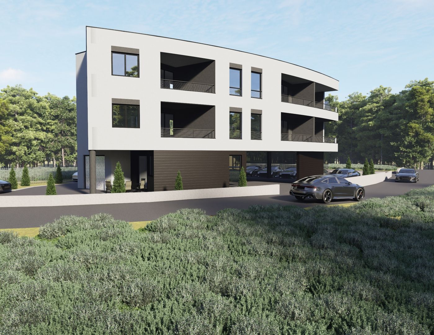 ISTRIE, ŠTINJAN – stavební pozemek s povolením a projektem pro moderní budovu se 7 bytovými jednotkami, 500 m od moře V klidné pobřežní vesnici Štinjan, jen pár minut jízdy od centra Puly, se nachází tento atraktivní stavební pozemek o celkové rozloze 663 m2. Jedná se o výjimečnou příležitost pro investory a ty, kteří oceňují hodnotu kombinace přírodního prostředí, městského komfortu a blízkosti moře. POPIS POZEMKU: Pozemek má stavební povolení na výstavbu moderní bytové budovy se 7 bytovými jednotkami a přidruženými parkovacími místy v zahradě. Přístup na pozemek je zajištěn po zpevněné veřejné komunikaci a veškerá městská infrastruktura – voda, elektřina, kanalizace a internet – je k dispozici v bezprostřední blízkosti. POPIS PROJEKTU: Budova se skládá celkem ze 7 bytových jednotek a 10 venkovních parkovacích míst a jednoho garážového stání. V přízemí je plánován jeden byt (A1) o čisté obytné ploše 55 m2, který se skládá z obytné části řešené jako otevřený prostor, ve kterém je plánován obývací pokoj, jídelna a kuchyň s přístupem na krytou terasu, dále je zde chodba s vyhrazeným prostorem pro šatní skříň, ložnice a koupelna. Dále je k tomuto bytu v projektu plánováno garážové stání, a to HRUBÁ garáž o rozloze 13,75 m2, což by znamenalo, že dle koeficientu se k ČISTÉ obytné ploše tohoto bytu připočítává 6,87 m2, což pak činí 61,87 m2. 1. patro - skládá se ze 3 bytových jednotek, a to A2 = 62,20 m2, A3 = 42,30 m2 a A4 = 65,70 m2. Byt A2 (62,20 m2 ČISTÉ), je bytová jednotka sestávající z obytné části řešené jako otevřený prostor, kde se nachází obývací pokoj, jídelna a kuchyň s přístupem na lodžii, a dále je zde chodba s vyhrazeným prostorem pro šatní skříň, a dvou prostorných ložnic a koupelny. Byt A3 (42,30m2) je bytová jednotka sestávající z obytné části řešené jako otevřený prostor, kde se nachází obývací pokoj, jídelna a kuchyň s přímým vstupem na lodžii, dále je zde menší chodba s plánovaným prostorem pro šatní skříň, dále jedna ložnice a koupelna. Výhodou tohoto bytu je větší a prostornější obytná část, která vyzařuje přirozené světlo. Byt A4 (65,70m2) je bytová jednotka sestávající z obytné části řešené jako větší otevřený prostor, kde se nachází plánovaný obývací pokoj, jídelna a kuchyň s přímým vstupem na lodžii, dále je zde chodba s plánovaným prostorem pro šatní skříň, dále dvě pohodlné ložnice a koupelna. 2. patro - skládá se ze 3 bytových jednotek, A5 = 62,20m2, A6 = 42,30m2, A7 = 65,70m2. Koncept bytů v tomto patře je stejný jako koncept bytů v 1. patře budovy, kde A5 je byt s dvěma ložnicemi a obývacím pokojem, A6 je byt s jednou ložnicí a obývacím pokojem, A7 je byt s dvěma ložnicemi a obývacím pokojem. DALŠÍ INFORMACE: * Větší byty mají k dispozici dvě parkovací místa, zatímco menší mají jedno. * Plocha parkovacích míst není zahrnuta v čisté ploše bytů a připočítává se při prodeji jednotek jednotlivě. * Pozemek se prodává společně s projektem a vydaným a platným stavebním povolením. * Přípojky elektřiny, vody, kanalizace a internetu se nacházejí přímo u pozemku. * Souhlas s připojením schválen. * Příspěvek na energie v současné době není uhrazen. * Pozemek je v soukromém vlastnictví fyzické osoby. * Pozemek je rovinatý a téměř obdélníkového tvaru. * Nachází se v klidné lokalitě, bez provozu, v blízkosti veškeré potřebné občanské vybavenosti. POPIS LOKALITY: Štinjan je jedno z nejvyhledávanějších míst v okolí Puly – klidné, rodinné a obklopené zelení. Pouze 500 metrů dělí tento pozemek od krásných, udržovaných pláží a promenád podél křišťálově čistého moře. Pobřežní pás nabízí četné služby – plážové bary, restaurace, parky, sportovní hřiště a prostorné plochy pro pěší turistiku nebo cyklistiku. V samotném osadě se nacházejí obchody, restaurace, škola a školka a pravidelné městské autobusové linky spojují Štinjan s centrem Puly každých 30 minut. Tato lokalita představuje dokonalou rovnováhu mezi klidem, přírodou a praktičností – ideální prostředí pro moderní rezidenční projekt s vysokým investičním potenciálem a jistou návratností investovaného kapitálu. Pro jakékoli další informace, potřebnou dokumentaci nebo dohodu o prohlídce lokality jsme vám kdykoli k dispozici.
