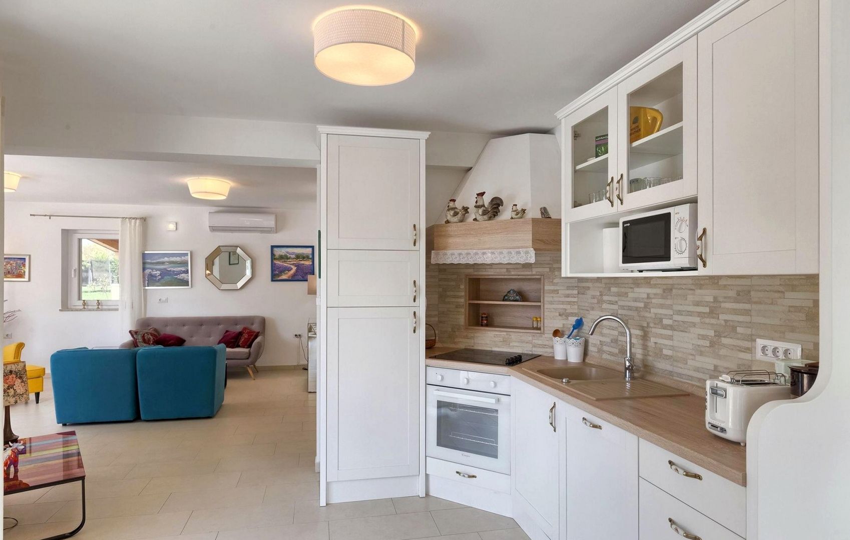 ISTRIE, SVETI LOVREČ - Komfortní dům s bazénem Na kopci s krásným výhledem na mírná pole, vinice, olivové háje a moře v dálce se nachází Sveti Lovreč. Sveti Lovreč se nachází uprostřed bujných levandulových polí v západní části Istrijského poloostrova, v bezprostředním zázemí Vrsaru, Poreče a Rovinje a je jedním z nejlépe dochovaných středověkých opevněných měst na Istrii. Poloha města na mírném kopci, který dominuje oblasti, kde je roztroušeno až 22 osad, vesnic a vesniček, svědčí o jeho významné roli v historii. Podél mírně členitého západního pobřeží Istrie vyniká několik hlubokých zátok, z nichž Limský záliv je částečně součástí obce Sveti Lovreč. Limský záliv je přírodní fenomén s velkou vědeckou a estetickou hodnotou; byl prohlášen za zvláštní mořskou rezervaci. V mírné čtvrti nedaleko Svetiho Lovreče je na prodej komfortní dům s bazénem. Mikrolokace nabízí autentický zážitek malého istrijského městečka, intimitu, úlevu od každé hektické námahy a odpočinek od hluku, a zároveň je dostatečně blízko dynamickým istrijským městům s řadou vybavení. Kromě výhodné polohy se nemovitost vyznačuje také kvalitou konstrukce, která zaručuje dlouhodobou spokojenost a kvalitu bydlení. Dům s nadčasovou architekturou, částečně obložený kamenem, zapadá do sídla a krajiny tvarem i barvou. Je navržen jako jedna bytová jednotka, která se rozkládá na dvou vkusně zařízených a dobře vybavených podlažích. Přízemí domu se skládá z kuchyně, jídelny a obývacího pokoje s přístupem na krytou terasu, ložnice s vlastní koupelnou, toalety pro hosty a úložného prostoru. První patro se skládá ze tří ložnic s vlastními koupelnami a terasy. Dvůr je ambientálně a hortikulturně zařízený a oplocený a nachází se na něm bazén s opalovací plochou. Vynikající poloha a prostorové uspořádání interiéru i exteriéru této nemovitosti poskytují příležitost pro pohodlný rodinný život nebo investici do turistického pronájmu.