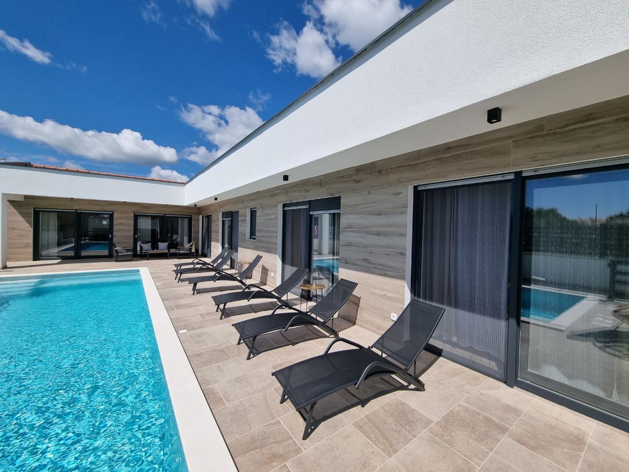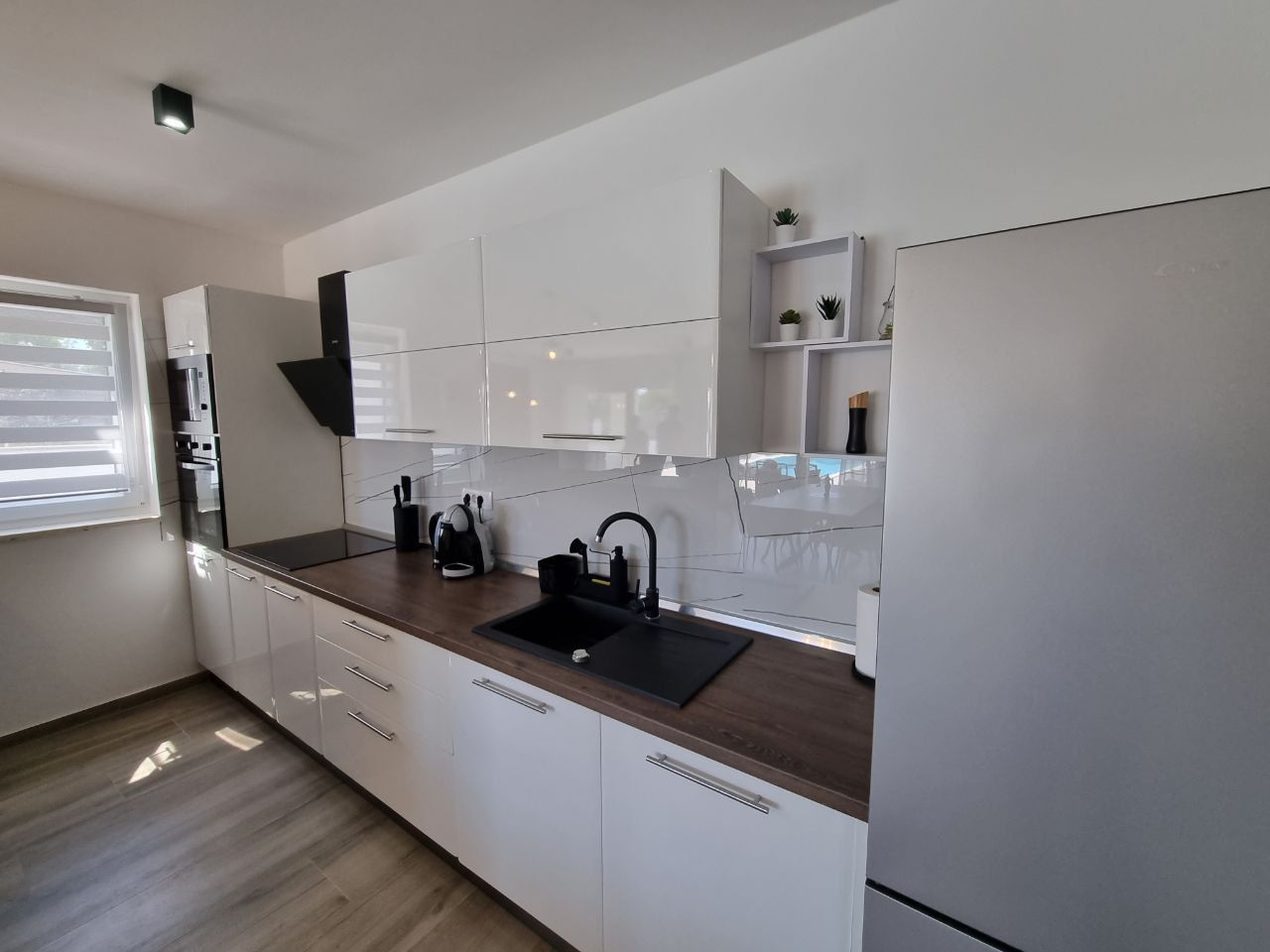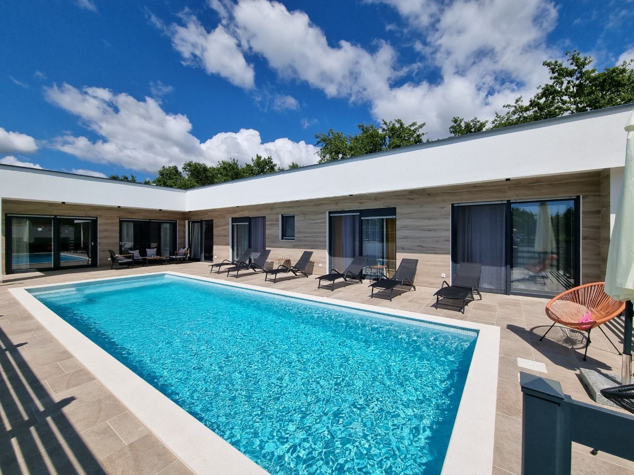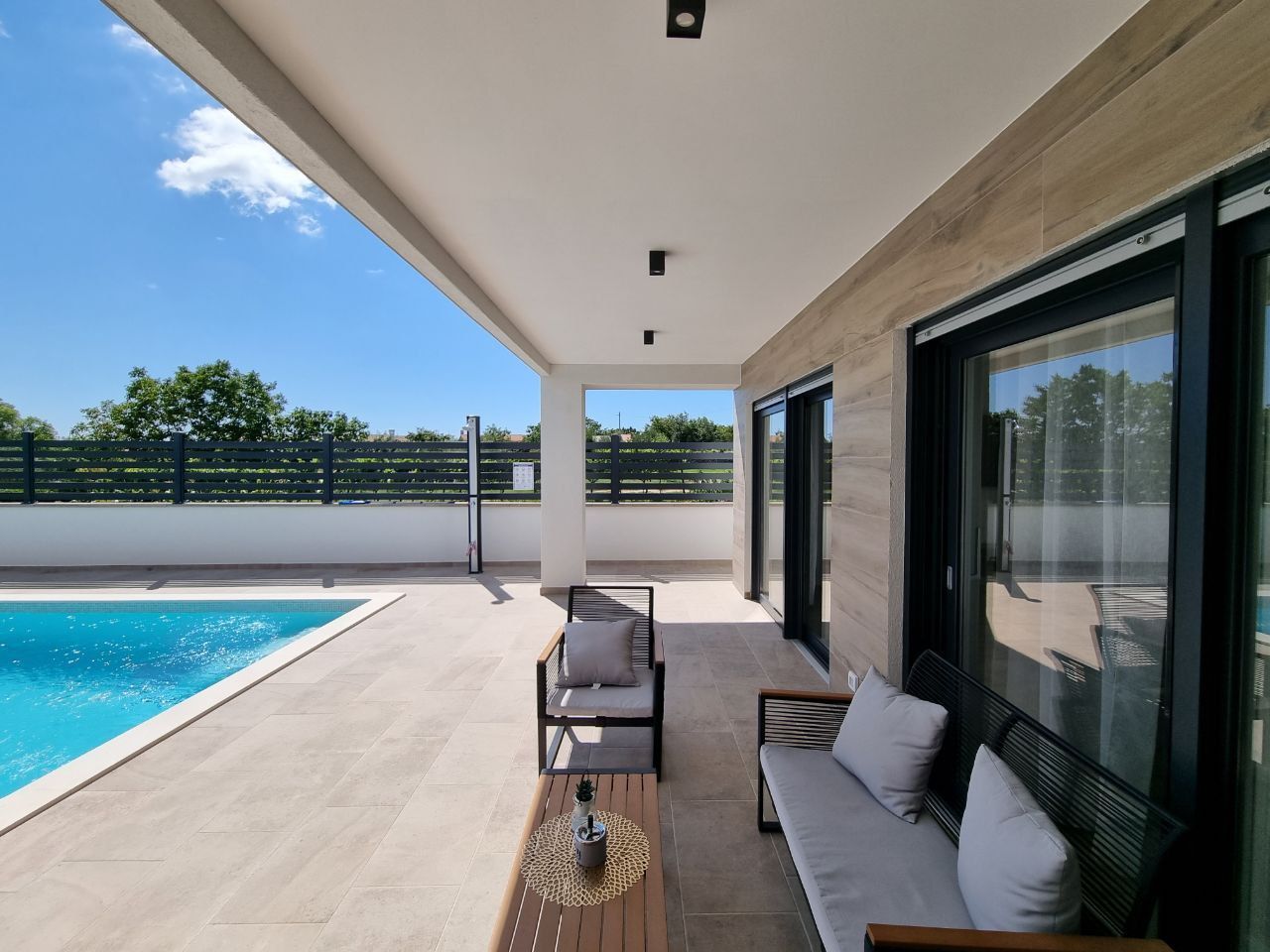 ISTRIE, SVETVINČENAT - Moderní jednopatrový dům s bazénem, obklopený přírodou Půvabné renesanční městečko Svetvinčenat jako z pohádky leží na členité náhorní plošině obklopené lesy, pastvinami a vinicemi. Svetvinčenat se nachází ve výšce 310 metrů nad mořem na jihu střední Istrie a dominuje mu jedno z nejkrásnějších renesančních náměstí v zemi a nejstarší a nejlépe zachovalý středověký hrad na Istrii. V obci Svetvinčenat, která je ozdobena přírodními krásami, bohatým historickým a kulturním dědictvím, uměleckými projevy a gastronomickou turistikou, je 22 osad. Moderní jednopatrový dům s bazénem je na prodej, který se nachází v tradiční istrijské vesnici, přesto dostatečně blízko městských center pro rychlý přístup k veškeré občanské vybavenosti. Vila se nachází na klidném místě a nabízí soukromí a relaxaci v nedotčené přírodě a je jen pár minut jízdy od Svetvinčentu a nabízí dokonalou rovnováhu mezi klidným venkovským životem a blízkostí větších měst. Vzdálenost do Vodnjanu nebo Barbanu je asi deset kilometrů, zatímco do Puly, slavného města s bohatou historií a rozmanitou nabídkou, je to pouhých dvacet kilometrů. Tato mimořádně výhodná poloha umožňuje snadné spojení s většími centry měst a veškerou jejich občanskou vybaveností. Dům se rozkládá na pozemku o velikosti 895 m2 a celková plocha samotného objektu je 220 m2. Vila se skládá ze vstupní haly, koupelny, prádelny/skladu, kotelny, prostorné haly s hernou, tří ložnic s vlastními koupelnami a přímým vstupem na opalovací plochu a krásného bazénu, obývacího pokoje s jídelna a otevřený prostor koncept kuchyně. Přímým východem z obývacího pokoje se dostanete na krytou terasu a sluneční terasu s bazénem, kde si užijete klid a pohodu, kterou nabízí tato výjimečná novostavba. Když vstoupíte do tohoto domova, okamžitě si všimnete kvality dekorace a materiálů. Všechny podlahy jsou pokryty keramikou a přes zimu vás potěší podlahové vytápění, které regulujete přes tepelné čerpadlo. Klimatizace jsou instalovány v každé místnosti, aby zajistily optimální podmínky pro vytápění a chlazení po celý rok. Dům také využívá solární kolektory na ohřev vody a má 300 litrový bojler. Solární kolektory mohou sloužit i jako doplňková možnost pro podlahové vytápění s tepelným čerpadlem a tím snížit náklady na vytápění. V krásně upravené zahradě je bazén o celkové ploše 35 m2. Základ v bazénu tvoří keramická dlažba, v bazénu je i systém elektrolýzy (slaná voda). Byly provedeny přípravy na ohřev bazénu. U bazénu se nachází prostorná krytá letní kuchyně o celkové ploše 30 m2. Letní kuchyně je plně vybavená a má velký krb, gril, vodu a další spotřebiče, které si potřebujete užít s rodinou a přáteli. V přístavbě je zahrádka, kterou můžete využívat dle svého přání. K domu náleží tři parkovací stání. Izolace na domě je 10 cm. V přízemí je satelitní televize, internet a příprava pro kamerový systém. Tento krásný jednopatrový byt je vybaven kvalitním nábytkem, který je zahrnut v ceně. Kuchyň je vybavena moderními a kvalitními spotřebiči. Venkovní truhlářství je vyrobeno z PVC s třívrstvým sklem, zatímco venkovní osvětlení vytváří úžasnou večerní atmosféru. Tento dům je ideální pro ty, kteří rádi bydlí v krásném přírodním prostředí, s komfortem a špičkovými spotřebiči. Vzhledem ke své izolované a klidné poloze, skryté pohledům, je to ideální příležitost pro klidný rodinný život, odpočinek a relaxaci nebo jako investice k pronájmu pro turistické účely.