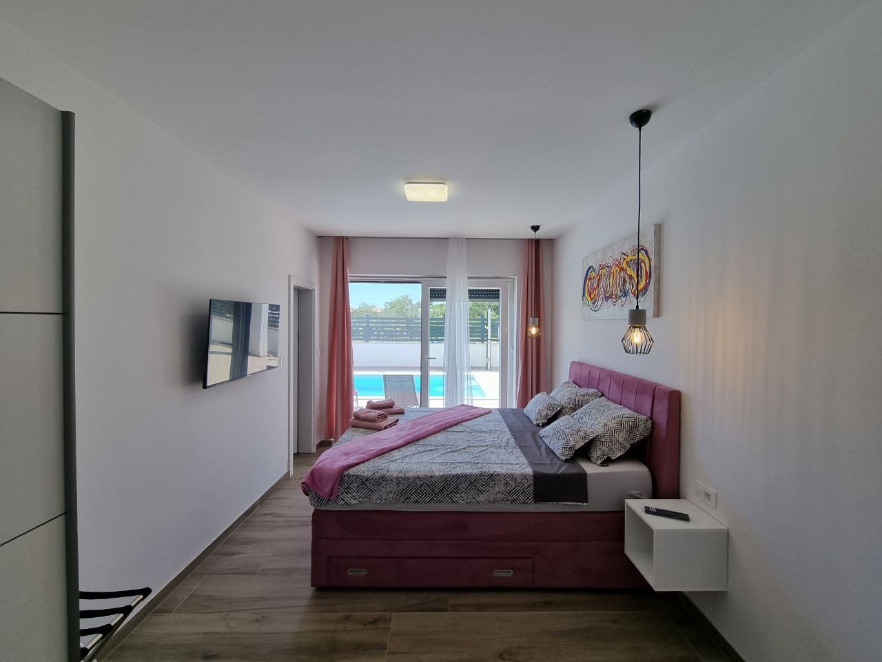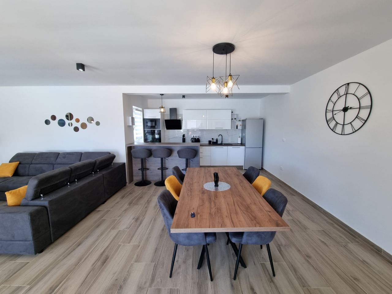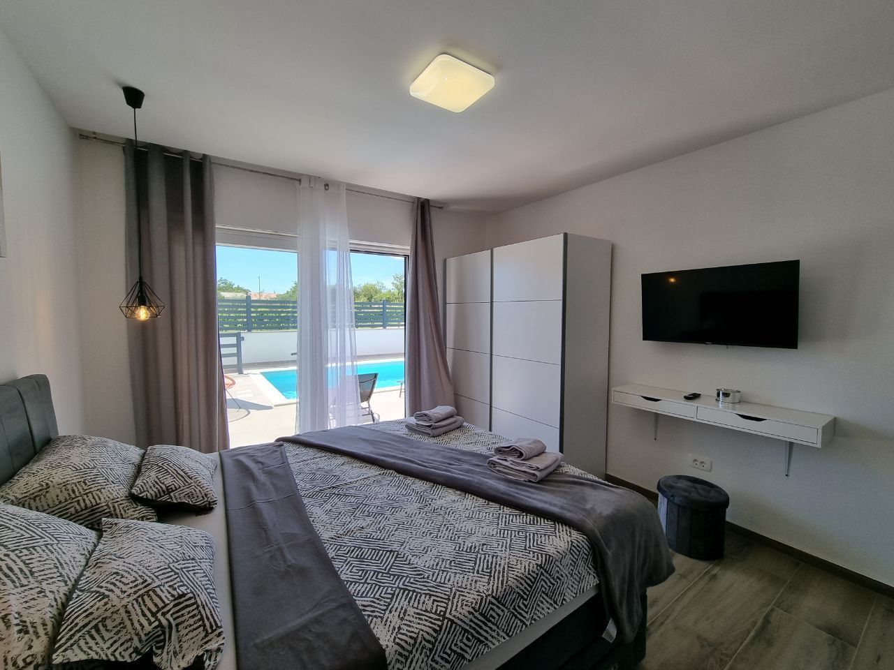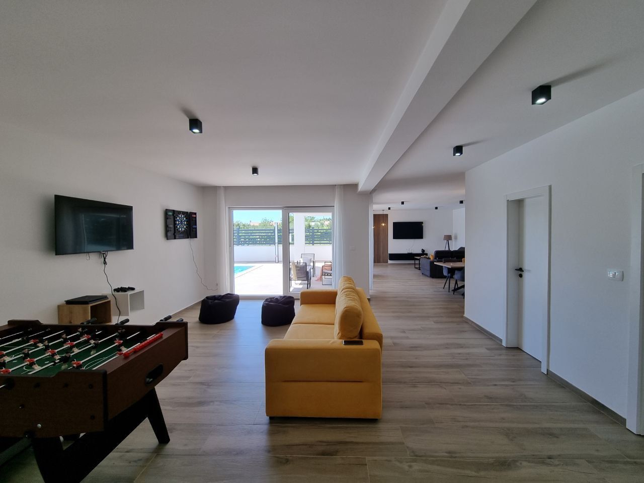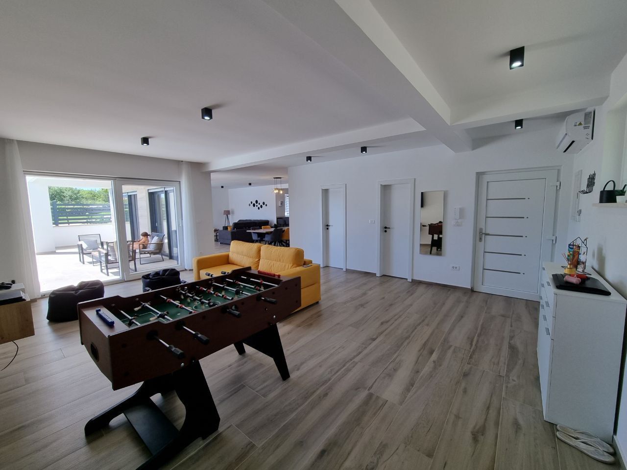 ISTRIE, SVETVINČENAT - Moderní jednopatrový dům s bazénem, obklopený přírodou Půvabné renesanční městečko Svetvinčenat jako z pohádky leží na členité náhorní plošině obklopené lesy, pastvinami a vinicemi. Svetvinčenat se nachází ve výšce 310 metrů nad mořem na jihu střední Istrie a dominuje mu jedno z nejkrásnějších renesančních náměstí v zemi a nejstarší a nejlépe zachovalý středověký hrad na Istrii. V obci Svetvinčenat, která je ozdobena přírodními krásami, bohatým historickým a kulturním dědictvím, uměleckými projevy a gastronomickou turistikou, je 22 osad. Moderní jednopatrový dům s bazénem je na prodej, který se nachází v tradiční istrijské vesnici, přesto dostatečně blízko městských center pro rychlý přístup k veškeré občanské vybavenosti. Vila se nachází na klidném místě a nabízí soukromí a relaxaci v nedotčené přírodě a je jen pár minut jízdy od Svetvinčentu a nabízí dokonalou rovnováhu mezi klidným venkovským životem a blízkostí větších měst. Vzdálenost do Vodnjanu nebo Barbanu je asi deset kilometrů, zatímco do Puly, slavného města s bohatou historií a rozmanitou nabídkou, je to pouhých dvacet kilometrů. Tato mimořádně výhodná poloha umožňuje snadné spojení s většími centry měst a veškerou jejich občanskou vybaveností. Dům se rozkládá na pozemku o velikosti 895 m2 a celková plocha samotného objektu je 220 m2. Vila se skládá ze vstupní haly, koupelny, prádelny/skladu, kotelny, prostorné haly s hernou, tří ložnic s vlastními koupelnami a přímým vstupem na opalovací plochu a krásného bazénu, obývacího pokoje s jídelna a otevřený prostor koncept kuchyně. Přímým východem z obývacího pokoje se dostanete na krytou terasu a sluneční terasu s bazénem, kde si užijete klid a pohodu, kterou nabízí tato výjimečná novostavba. Když vstoupíte do tohoto domova, okamžitě si všimnete kvality dekorace a materiálů. Všechny podlahy jsou pokryty keramikou a přes zimu vás potěší podlahové vytápění, které regulujete přes tepelné čerpadlo. Klimatizace jsou instalovány v každé místnosti, aby zajistily optimální podmínky pro vytápění a chlazení po celý rok. Dům také využívá solární kolektory na ohřev vody a má 300 litrový bojler. Solární kolektory mohou sloužit i jako doplňková možnost pro podlahové vytápění s tepelným čerpadlem a tím snížit náklady na vytápění. V krásně upravené zahradě je bazén o celkové ploše 35 m2. Základ v bazénu tvoří keramická dlažba, v bazénu je i systém elektrolýzy (slaná voda). Byly provedeny přípravy na ohřev bazénu. U bazénu se nachází prostorná krytá letní kuchyně o celkové ploše 30 m2. Letní kuchyně je plně vybavená a má velký krb, gril, vodu a další spotřebiče, které si potřebujete užít s rodinou a přáteli. V přístavbě je zahrádka, kterou můžete využívat dle svého přání. K domu náleží tři parkovací stání. Izolace na domě je 10 cm. V přízemí je satelitní televize, internet a příprava pro kamerový systém. Tento krásný jednopatrový byt je vybaven kvalitním nábytkem, který je zahrnut v ceně. Kuchyň je vybavena moderními a kvalitními spotřebiči. Venkovní truhlářství je vyrobeno z PVC s třívrstvým sklem, zatímco venkovní osvětlení vytváří úžasnou večerní atmosféru. Tento dům je ideální pro ty, kteří rádi bydlí v krásném přírodním prostředí, s komfortem a špičkovými spotřebiči. Vzhledem ke své izolované a klidné poloze, skryté pohledům, je to ideální příležitost pro klidný rodinný život, odpočinek a relaxaci nebo jako investice k pronájmu pro turistické účely.