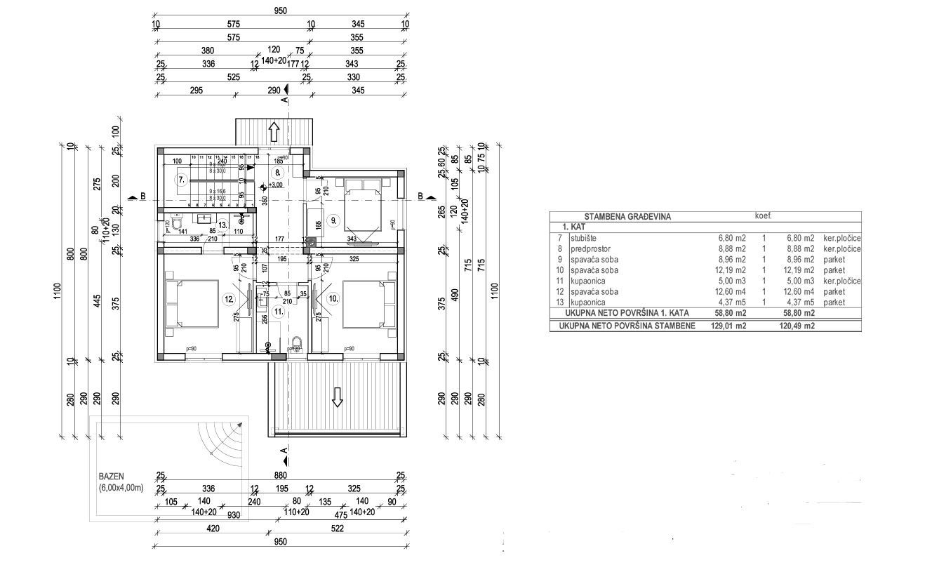 ISTRIE, SVETVINČENAT – Pozemek s pravomocným stavebním povolením a projektem domu s bazénem Svetvinčenat, který se nachází ve střední Istrii, je známý svým historickým centrem, středověkým hradem, kulturními akcemi a klidným životním stylem. Právě proto se stává stále oblíbenějším místem pro rodinnou výstavbu, investice do cestovního ruchu a bydlení v autentickém istrijském prostředí. V klidné vesnici nedaleko Svetvinčentu se prodává stavební pozemek o rozloze 353 m² s pravomocným stavebním povolením na výstavbu moderního dvoupatrového domu s bazénem. Pozemek se nachází v udržované a klidné vesnici, která se vyznačuje přírodním prostředím a vynikající dostupností. Přístup k pozemku je zajištěn po štěrkové cestě dlouhé cca 100 metrů, která vede k asfaltové silnici. Podél příjezdové cesty jsou již instalovány vodovodní, optické a elektrické instalace včetně hromosvodu, což výrazně usnadňuje zahájení stavby. Na tento pozemek bylo získáno stavební povolení pro dům o celkové čisté ploše 129,01 m². V přízemí se nachází krytý vchod, chodba, prádelna, toaleta a otevřený kuchyňský kout, jídelna a obývací pokoj s přístupem na krytou terasu. Vnitřní schodiště vede do prvního patra, kde se nacházejí tři ložnice a dvě koupelny – dispozice přizpůsobená moderním potřebám pro pohodlné bydlení nebo turistické využití. Hned vedle této nemovitosti se nacházejí další dva stavební pozemky podobné velikosti, rovněž s pravomocnými povoleními na domy s bazénem, které jsou k dispozici ke koupi, což otevírá další možnosti pro rozšíření projektu nebo investiční plánování. Koupě je možná jednotlivě, jako v tomto případě, nebo v kombinaci s dalšími pozemky – ideální pro ty, kteří chtějí flexibilitu při realizaci vlastních plánů. Vlastník je právnická osoba a kupující při koupi neplatí daň z převodu nemovitosti. Tato nemovitost představuje vynikající příležitost pro každého, kdo se chce vyhnout zdlouhavému procesu získávání dokumentace a okamžitě začít stavět v klidné, dobře dostupné a stále vyhledávanější lokalitě na Istrii. S hotovým projektem, vyřešeným přístupem a infrastrukturou je vše připraveno k výstavbě.