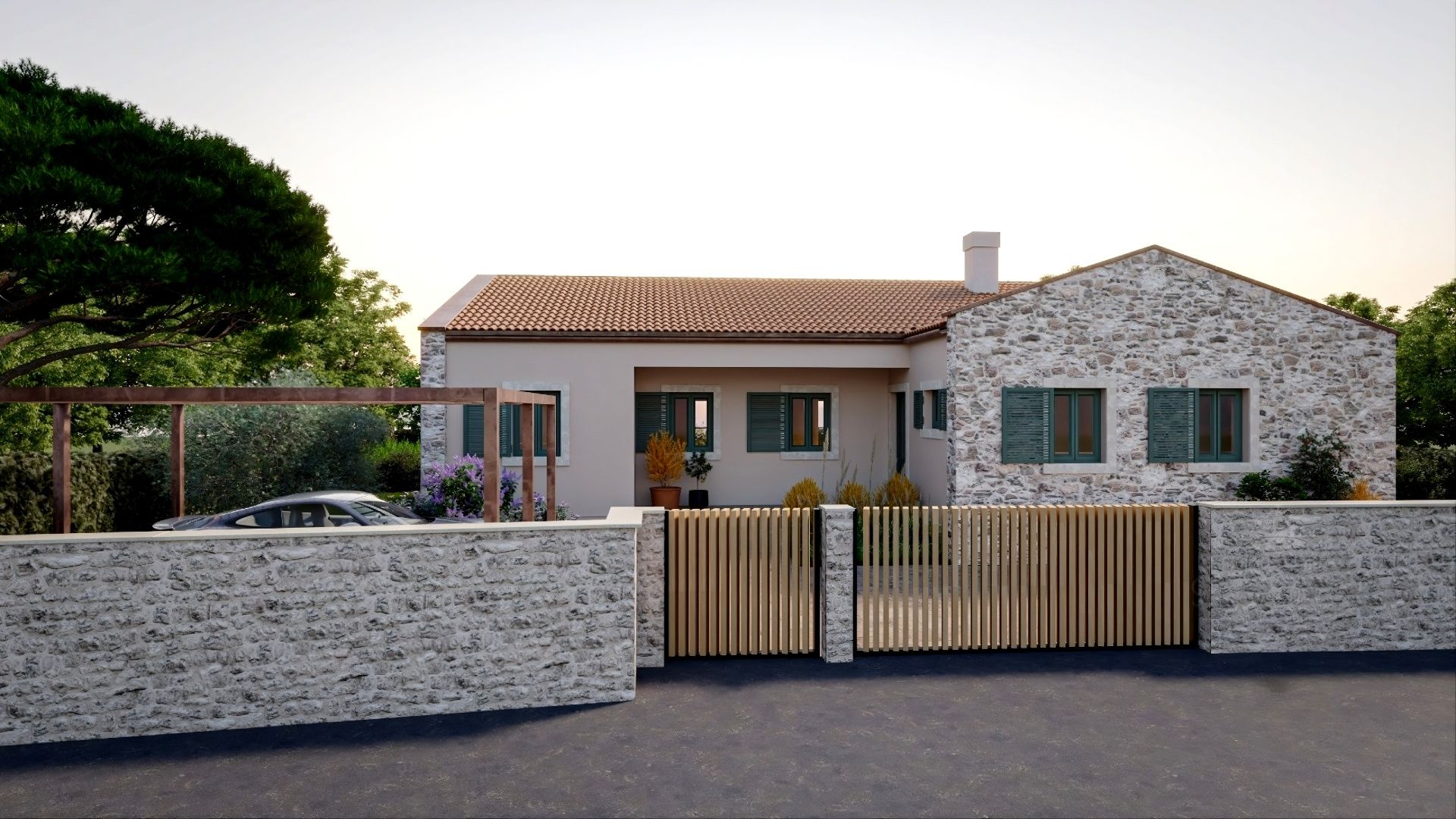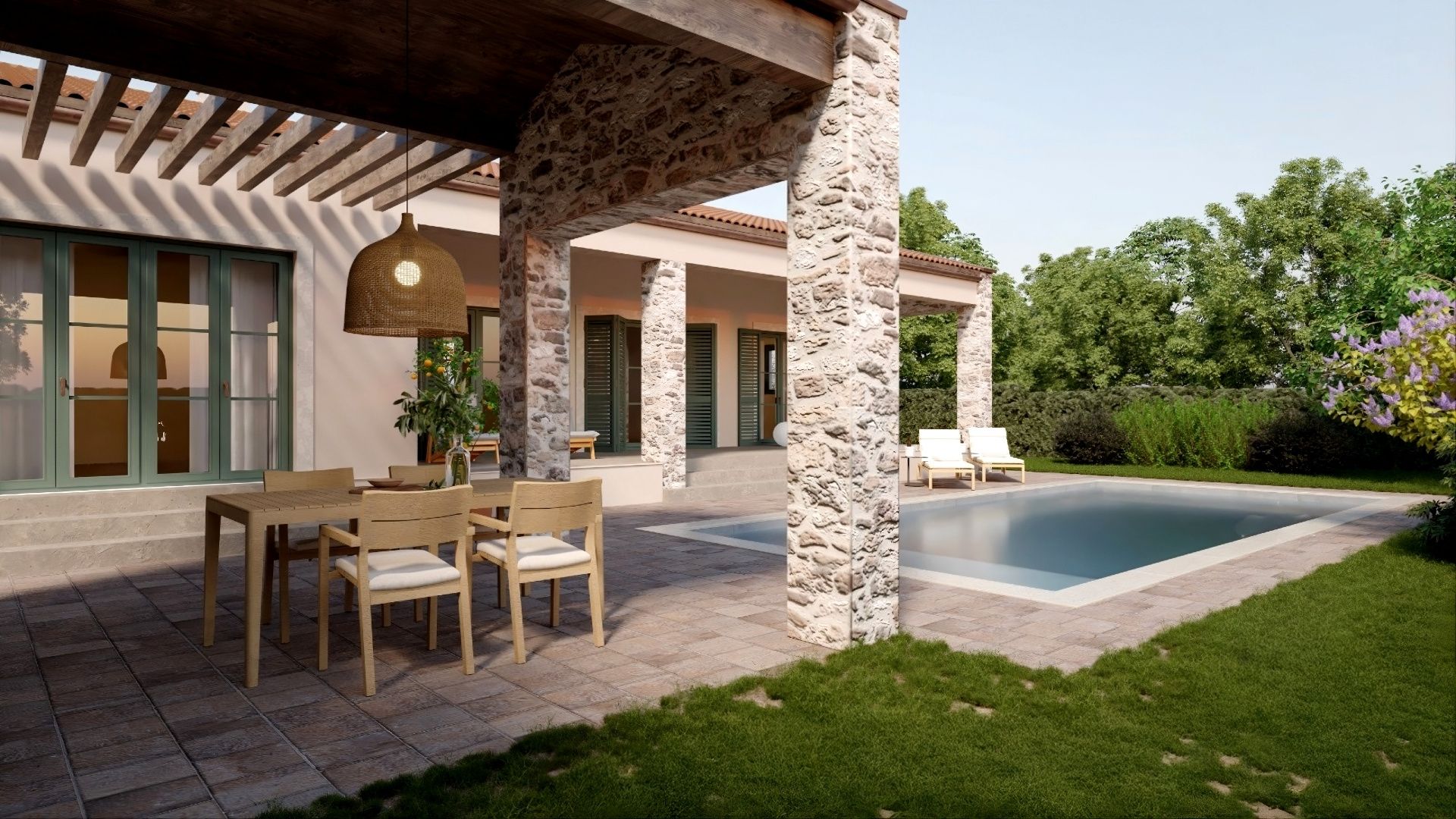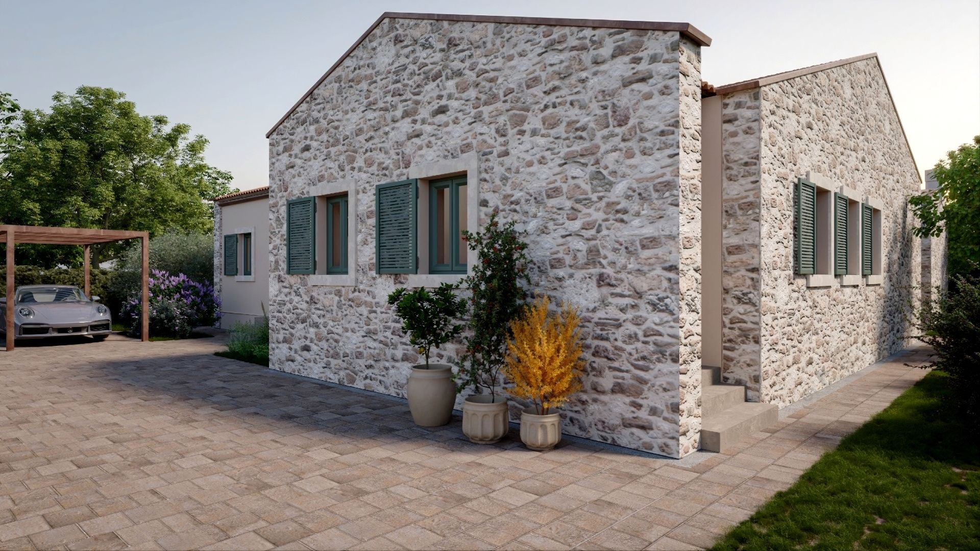 ISTRIE, SVETVINČENAT - Středomořský přízemní dům s bazénem Jako z pohádky se na skalnaté plošině obklopené lesy, pastvinami a vinicemi rozkládá půvabné renesanční městečko Svetvinčenat. Svetvinčenat se nachází v nadmořské výšce 310 metrů na jihu střední Istrie a dominuje mu jedno z nejkrásnějších renesančních náměstí v zemi a nejstarší a nejlépe dochovaný středověký hrad na Istrii. Obec Svetvinčenat, kterou zdobí přírodní krásy, bohaté historické a kulturní dědictví, umělecké akce a vinařská a gastronomická turistika, má 22 osad. V blízkosti města Svetvinčenat je na prodej středomořský přízemní dům s bazénem. Mikrolokace nabízí autentický zážitek malého istrijského městečka, intimitu, úlevu od každé hektické námahy a odpočinek od hluku a zároveň blízkost dynamických istrijských měst s řadou služeb. Kromě výhodné polohy se nemovitost vyznačuje také kvalitou výstavby, která zaručuje dlouhodobou spokojenost a kvalitu bydlení. Dům s nadčasovým designem, částečně obložený kamenem, splývá s osadou a krajinou jak tvarem, tak i barvou. Je koncipován jako jedna bytová jednotka, která se rozkládá na jednom patře funkčního půdorysu. Skládá se z otevřeného prostoru, který spojuje kuchyň, jídelnu a obývací pokoj s přístupem na krytou terasu, tří ložnic s vlastními koupelnami, toalety pro hosty, prádelny a technických místností. Dvůr je ambientálně a zahradně upraven a oplocen, a úplnou harmonii zajišťuje bazén s opalovací plochou a krytá letní kuchyně. Vynikající poloha a prostorové uspořádání interiéru i exteriéru této nemovitosti poskytují příležitost pro pohodlný rodinný život nebo investici do turistického pronájmu. Uvedená cena nemovitosti se vztahuje k konečnému stupni dokončení bez nábytku, což umožňuje finální úpravu dle vlastního přání a preferencí. Prodejcem dané nemovitosti je právnická osoba a DPH je zahrnuta v uvedené ceně.