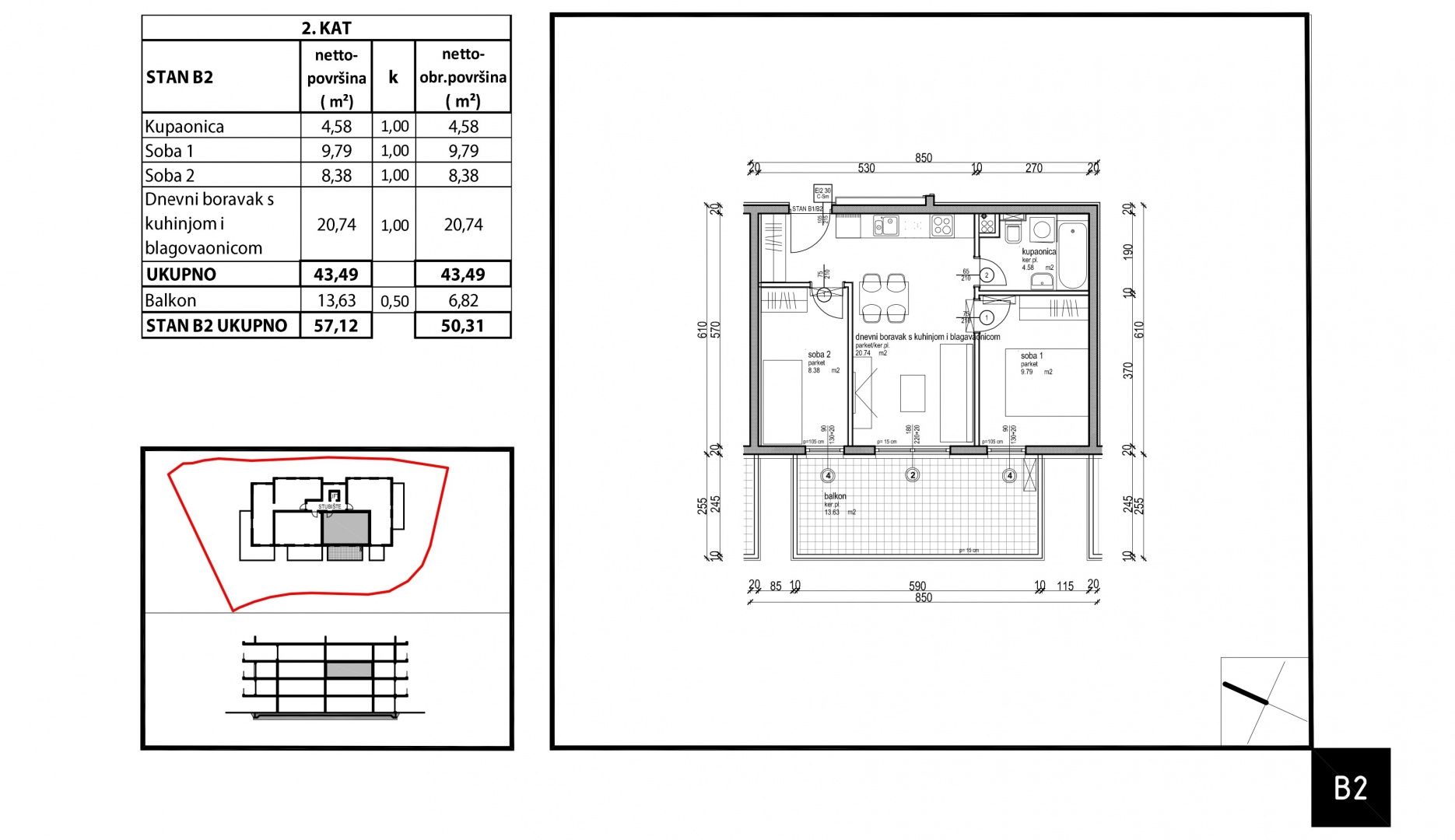 ISTRIE, TAR – Atraktivní byt 2+1 v moderní novostavbě pouhých 350 m od moře Nabízíme vám možnost koupě moderně navrženého bytu v kvalitní novostavbě v Taru, jedné z nejvyhledávanějších lokalit západní Istrie. Pouhé 3 minuty jízdy od křišťálově čistého moře a pouhých 5 minut jízdy od Poreče představuje tento byt perfektní kombinaci pohodlí, funkčnosti a moderního způsobu bydlení. POPIS BYTU Byt B2 se nachází ve druhém patře budovy a zaujímá čistou plochu 50,31 m². Dispozice místností je navržena s ohledem na maximalizaci prostornosti a přirozeného světla: * Vstupní hala s vyhrazenou částí pro šatní skříň * Otevřený prostor obývacího pokoje - moderně navržený prostor, který spojuje obývací pokoj, kuchyň a jídelnu v jeden celek. * Prostorný balkon, který se táhne podél obývacího pokoje bytu a na který mají přístup obě ložnice, je ideální pro setkávání a relaxaci s přáteli a rodinou. * Dále jsou zde dvě pohodlné ložnice a jedna koupelna. TECHNICKÉ CHARAKTERISTIKA BUDOVY - Budova byla navržena a postavena dle nejvyšších stavebních a energetických standardů: * Antiseismická konstrukce * Třívrstvé PVC dveře * Tiché kanalizace * Elektrické podlahové vytápění ve všech místnostech bytu * Klimatizace v každé místnosti * Vysoce kvalitní 10cm fasádní izolace (styropor a vlna) * Výtah v budově * Bezpečné dveře v bytech * Špičkový vodovod (německé TC trubky) NAVÍC * Byt má vlastní parkovací místo zahrnuté v ceně bytu * Úložné prostory jsou k dispozici s příplatkem * Plánované dokončení výstavby a nastěhování: 12/2025. PROČ SI VYBRAT TENTO BYT? Tento byt je ideální volbou pro rodinný život, klidnou dovolenou na Istrii, ale také jako bezpečná investice vzhledem k atraktivní lokalitě a kvalitní výstavbě. Pro jakékoli další informace nebo pro domluvení prohlídky nás neváhejte s důvěrou kontaktovat.