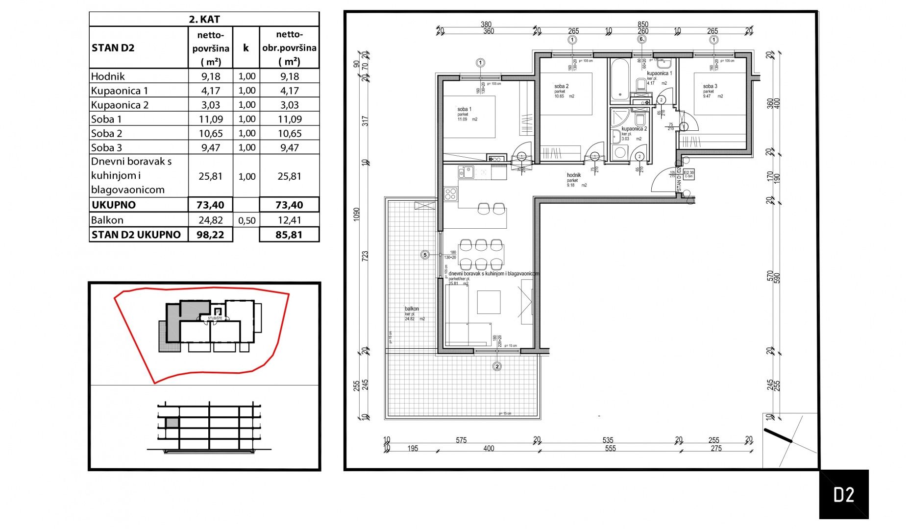 ISTRIE, TAR – Exkluzivní byt 3+kk v 1. patře kvalitní novostavby pouhých 350 m od moře V klidné vesničce Tara, pouhých 350 m od moře a deset minut chůze od udržovaných pláží, se nachází moderní, vysoce kvalitní novostavba s celkem 13 byty. Tento unikátní byt se nachází ve druhém patře budovy, která se rozkládá na 85,81 m² obytné plochy a představuje kombinaci luxusu, pohodlí a nádherného výhledu. POPIS BYTU Byt D2 se rozkládá na čisté ploše 85,81 m². Dispozice místností je navržena s ohledem na maximalizaci prostornosti a přirozeného světla: * Vstupní hala s vyhrazenou částí pro šatní skříň * Otevřený prostor obývacího pokoje – moderně navržený prostor, který spojuje obývací pokoj, kuchyň a jídelnu v jeden celek. * Prostorná terasa – která se rozkládá vedle kuchyně a jídelny, ideální pro setkávání a relaxaci s přáteli a rodinou. * Dále jsou zde tři pohodlné ložnice a dvě koupelny. TECHNICKÉ CHARAKTERISTIKA BUDOVY - Budova byla navržena a postavena dle nejvyšších stavebních a energetických standardů: * Antiseismická konstrukce * Třívrstvé PVC truhlářství * Tiché kanalizační instalace * Elektrické podlahové vytápění ve všech místnostech bytu * Klimatizace v každé místnosti * Vysoce kvalitní 10cm fasádní izolace (styropor a vlna) * Výtah v budově * Bezpečnostní dveře v bytech * Špičkový vodovod (německé TC trubky) NAVÍC * K bytu náleží dvě soukromá parkovací místa, která jsou zahrnuta v ceně bytu. * Úložné prostory jsou k dispozici za příplatek * Plánované dokončení výstavby a nastěhování: 12/2025. PROČ SI VYBRAT TENTO BYT? Tento byt je ideální volbou pro rodinný život, klidnou dovolenou na Istrii, ale také jako bezpečná investice vzhledem k atraktivní lokalitě a kvalitní výstavbě. Pro jakékoli další informace nebo pro domluvení prohlídky nás neváhejte s důvěrou kontaktovat.