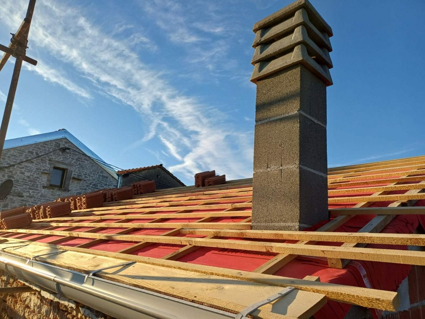 ISTRIE, TINJAN - Samostatně stojící dům s charakterem v srdci Istrie V klidné a zelené osadě v obci Tinjan se nachází tento architektonicky navržený dům s charakterem ve výstavbě s vydaným stavebním povolením a zaregistrovaným zahájením výstavby. Jedná se o výjimečnou příležitost pro kupující, kteří si chtějí dům dokončit dle vlastních představ, ale bez rizika a dlouhého procesu získávání dokumentace a hrubých stavebních prací. Zde kupujete kvalitní stavbu + kompletně navržený projekt, který umožňuje funkční a moderní způsob života. Budova je stavebně dokončena a připravena k montážím a dokončovacím pracím. STAVEBNÍ PRÁCE DOKONČENY (nejnáročnější část je hotová) *Litá železobetonová (AB) podlahová deska *Vybudována betonová mezipodlažní konstrukce *Instalace betonového schodiště *Nová dřevěná střešní konstrukce *Střecha kompletně dokončena se všemi vrstvami a finální krytinou z tašek „středomořských“ *Vybudována příčka pro toaletu v přízemí *Nové vnější otvory (4) postavené dle projektu *Na fasádě instalovány staré střešní krytiny, které dodávají budově autentický istrijský vzhled Na pozemku je již k dispozici: -aktivní vodovodní přípojka -přípojka elektřiny To výrazně snižuje dodatečné náklady a urychluje pokračování výstavby. PLÁNOVANÝ DISPOZICE MÍSTNOSTÍ Dispozice domu byla navržena s důrazem na koncept otevřeného prostoru, komfort a přirozené světlo. (možnost změny budoucích majitelů) Přízemí - otevřený prostor kuchyně s jídelnou a obývacím pokojem, celková plocha 36,3 m² - přímý přístup na terasu a plánovaná letní kuchyně - koupelna: 4,7 m² - vnitřní schodiště vedoucí do prvního patra První patro - chodba: 3,9 m² - prostorná koupelna: 6,5 m² - ložnice 1: 15,6 m² - ložnice 2: 14,5 m² Garáž a zahrada Nemovitost je ideální jako rodinný dům pro klidný život na Istrii, rekreační dům s autentickým istrijským šarmem nebo investice k turistickému pronájmu, mimořádně vyhledávaný ve vnitrozemí Istrie Díky již dokončené výstavbě si nový majitel může upravit povrchové materiály a styl a zařídit zahradu, terasu a letní kuchyň VÝHODY LOKALITY Tinjan, nacházející se v zeleném srdci Istrie, nabízí to, co je dnes nejcennější – klid, soukromí a prostor. Obklopen nedotčenou přírodou, je známý svou vynikající gastronomií, istrijským pršutem, místními produkty, agroturistikou a vinnými stezkami, které vyprávějí příběh pravého Středomoří. Lokalita je klidná a zároveň má perfektní spojení – Pazin je v dosahu a Poreč a moře jsou jen kousek jízdy autem. Istrie je region s výjimečnou kvalitou života – bezpečný, dobře udržovaný a dlouhodobě atraktivní, s neustálou poptávkou po nemovitostech a stabilní investiční hodnotou. Pokud hledáte pevný a bezpečný základ pro svůj vysněný domov nebo chytrou investici se svobodou dokončit vše podle vlastního vkusu, zavolejte nám hned teď, protože se jedná o příležitost, která má energii, potenciál a budoucnost.