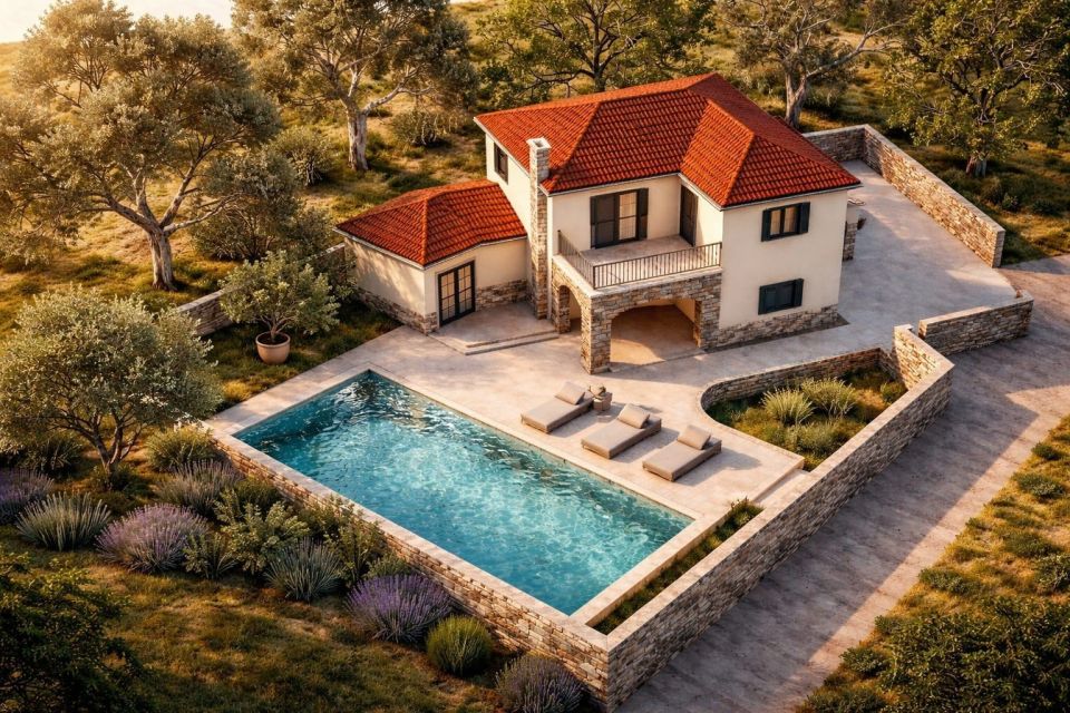 ISTRIE, UMAG - Stavební pozemek se stavebním povolením Na prodej je atraktivní stavební pozemek o rozloze 491 m², který se nachází v klidné a vyhledávané lokalitě nedaleko Umagu. Ideální příležitost pro každého, kdo chce začít stavět ihned bez dlouhých čekacích dob a dodatečných administrativních nákladů. Na pozemek je vydáno platné stavební povolení a jsou vypracovány všechny hlavní projekty pro výstavbu moderního domu o čisté ploše 181,15 m² (159,21 m²) s bazénem o rozměrech 3,50 x 10,50 m. Je zaplacen kompletní příspěvek na komunální služby (cca 12 000 €) a také přípojka elektřiny pro 3. patro (cca 2 500 €). Přípojky vody a elektřiny se nacházejí na pozemku, přístup je asfaltový a vedle pozemku je veřejné osvětlení. Projekt domu je navržen pro maximální komfort a funkčnost. V přízemí se nachází krytý vchod, chodba, toaleta, prádelna, kuchyň s jídelnou, obývací pokoj, krytá terasa a ložnice s vlastní koupelnou. V prvním patře, kam se dostanete po otevřeném schodišti s galerií, se nacházejí dvě další ložnice, každá s vlastní koupelnou a přístupem na prostornou terasu. Zvláštní výhodou této nemovitosti je, že pozemek je poslední ve stavební zóně, což zajišťuje trvalé soukromí, klid a otevřené výhledy - bez možnosti budoucí výstavby před nebo vedle terénu. Klidné prostředí, blízkost moře a centra Umagu a vynikající dopravní spojení činí z této nemovitosti vynikající investici - ať už pro rodinný život nebo pro turistický pronájem.