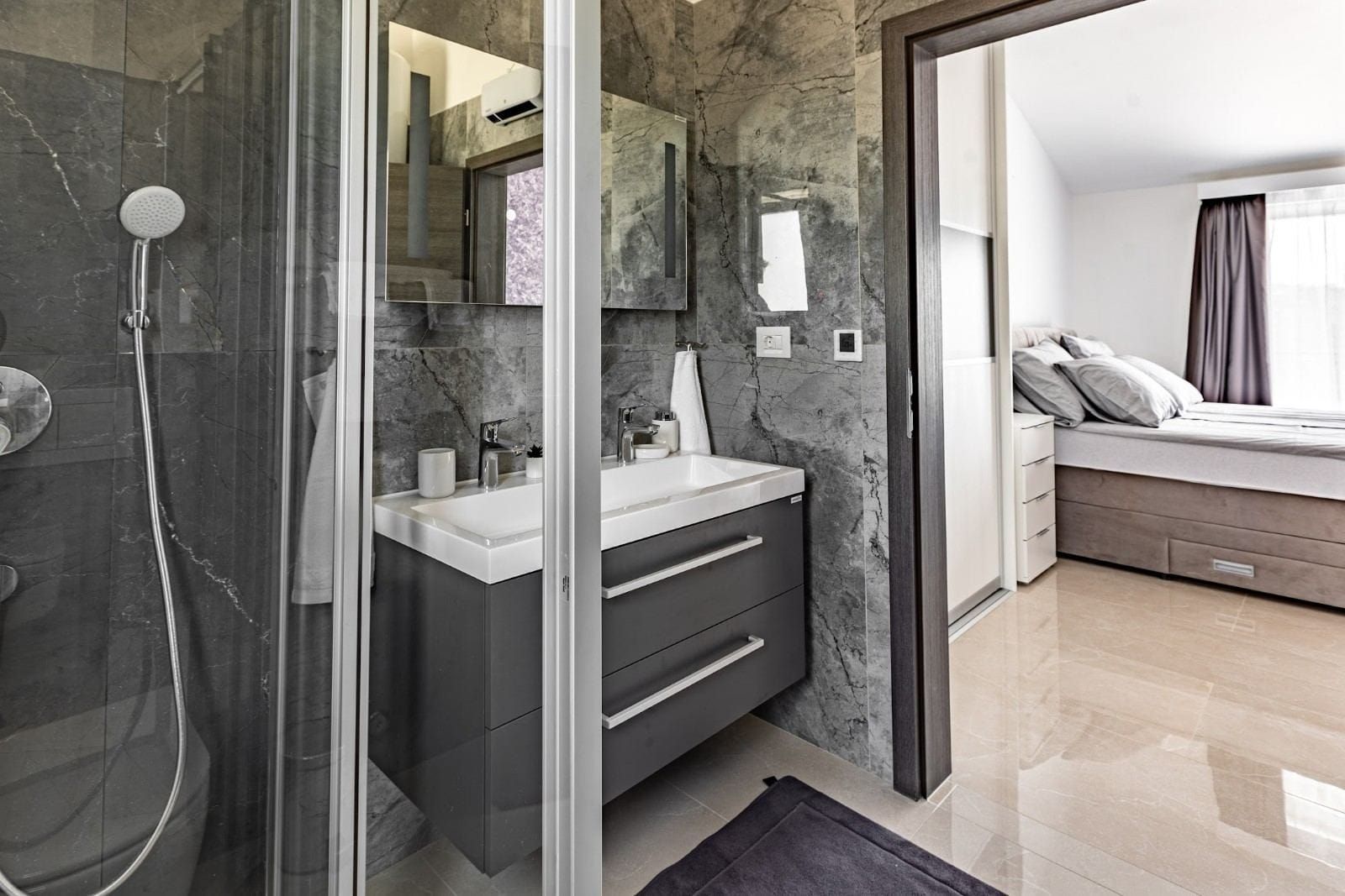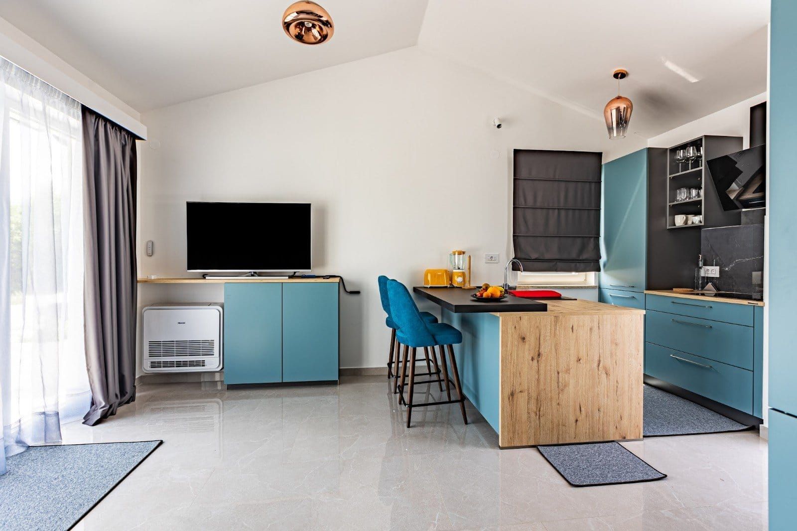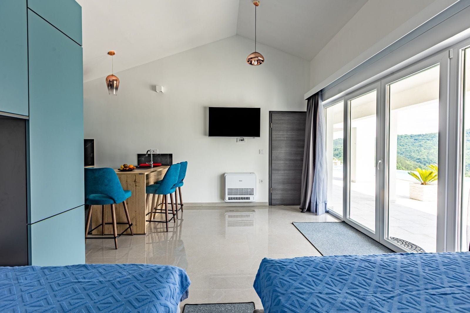 ISTRIE, UNIKÁTNÍ HACIENDA NA TRHU! V místě naprostého ticha a čisté přírody jsou na prodej nemovitosti typu hacienda. Jedná se o samostatně stojící vilu, která se koncepčně skládá z několika bytových jednotek. Celková obytná plocha objektu je 386,56 m2. Vila se skládá ze dvou podlaží: přízemí a první patro 299,56 m2 + vedlejší budova 87 m2. Při stavbě této unikátní stavby bylo dbáno na technické detaily a dlouhodobou kvalitu. Přízemí vily tvoří obývací pokoj a open space kuchyně, 2x WC, komora a menší místnost, která může být v budoucnu solnou místností nebo saunou, dle preferencí budoucího majitele. Z obývacího pokoje vycházíme na krytou terasu, která nabízí vzácný výhled do přírody. Schody vedou do prvního patra, kde jsou dvě hlavní ložnice, každá s vlastní koupelnou. Vedle vily v přízemí jsou tři byty v řadě (dva 33 m2 a 18 m2). Byty jsou navrženy podle systému SMART, to znamená, že každý kout prostoru byl maximálně využit pro funkční a pohodlný pobyt. Za vilou se nachází pomocná budova o velikosti 87 m2, která je rozdělena na dvě zóny, kde jedna zóna má sloužit jako byt a druhá jako rekreační zóna. Tato hacienda se nachází na velkém pozemku o rozloze 20 010 m2 a je ze všech stran obklopena přírodou a nabízí vzácný a jedinečný výhled. Na zahradě se nachází mimořádně kvalitní bazén se speciálními dlaždicemi (APPIANI TILES), které zajistily, že barva bazénu vypadá božsky. V rámci prostoru kolem bazénu bylo myšleno na každý detail, takže je zde prostor na opalování, gril a venkovní jídelní kout. Vila je vybavena kvalitním zakázkovým nábytkem a tak se i prodává. Nechybí ani video dohled s možností ovládání přes chytrý telefon připojený k zabezpečovacímu systému a automatické otevírání vjezdové brány. Důraz je kladen na pečlivý výběr materiálů a technik při výstavbě, jehož výsledkem je mimořádně kvalitní a na trhu jedinečná nemovitost! Vila je orientována na jižní stranu a je zalita sluncem v létě i v zimě a pomocí speciální techniky při výstavbě bylo zajištěno, že vila má vždy slunce, ale ne příliš horko během pobytu ve vile.