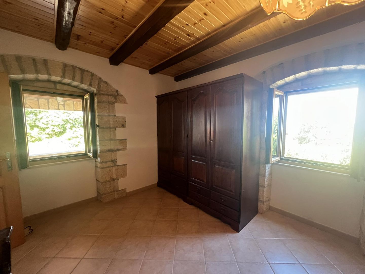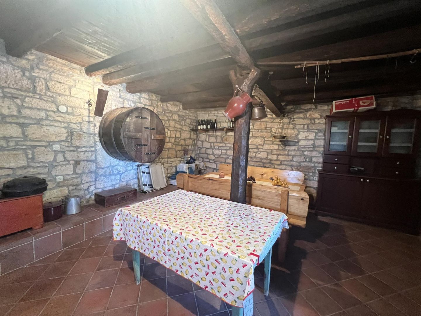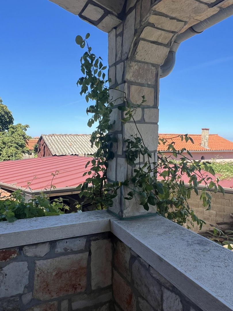 ISTRIE, VIŠNJAN - Kamenný dům s výhledem. Višnjan je malebné a živé město a obec v západní části Istrie. Obec Višnjan má 56 sídel a nachází se v oblasti mezi řekou Mirnou na severu a Limským kanálem na jihu. Romantický Višnjan se nachází na mírném kopci 244 m nad mořem, obklopený loukami, ornou půdou a lesy dubu cesmínového a habru obecného. Dnes je Višnjan nejvíce známý svou unikátní hvězdárnou, která je jednou z dvanácti nejproduktivnějších hvězdáren na světě všech dob, co se týče počtu objevených asteroidů. Prodává se krásný kamenný dům. Má velkou zahradu s několika parkovacími místy, krytými i nekrytými. Na nádvoří se nachází stará studna a pec na chléb. V přízemí se nachází garáž, taverna a sklad. V prvním patře se nachází krytá terasa, velká ložnice, obývací pokoj s kuchyní, jídelna a velká koupelna. V podkroví se nacházejí dvě prostorné ložnice. Dům je zařízený a jako takový se prodává. Ideální nemovitost pro rodinný život nebo turistický pronájem.