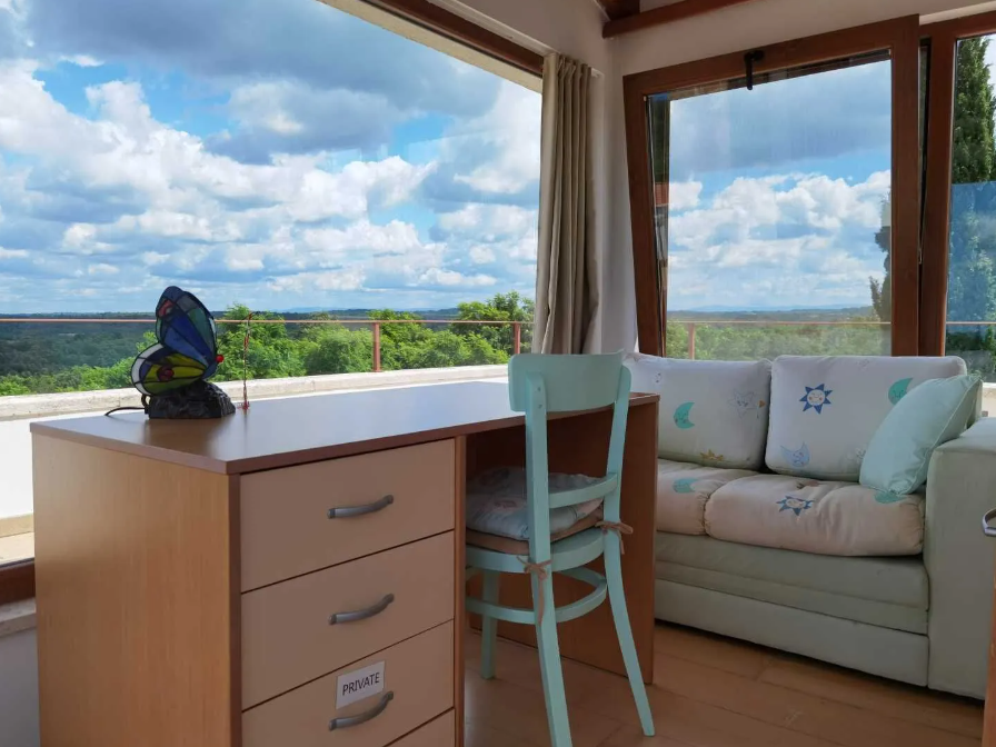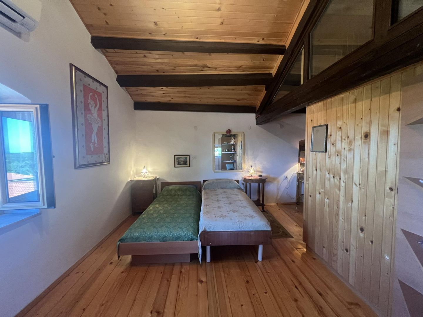 ISTRIE, VIŠNJAN - Pozemek dvou kamenných domů obklopený přírodou a výhledem na moře Višnjan je malebné a živé město a obec v západní části Istrie. Obec Višnjan má 56 sídel a nachází se v oblasti mezi řekou Mirnou na severu a Limským kanálem na jihu. Romantický Višnjan se nachází na mírném kopci 244 m nad mořem, obklopený loukami, ornou půdou a lesy dubu cesmínového a habru obecného. Dnes je Višnjan nejvíce známý svou unikátní observatoří, která se podle počtu objevených asteroidů řadí mezi dvanáct nejproduktivnějších observatoří na světě všech dob. Prodává se pozemek dvou istrijských kamenných domů s bazénem v centru krásné a zachovalé istrijské vesnice nedaleko Višnjanu. První dům s bazénem má 4 patra. V suterénu se nachází velká a krásně zařízená taverna s krbem, kuchyní a koupelnou. Přízemí se skládá z kuchyně, jídelny a obývacího pokoje s přístupem na krytou terasu, dále z balkonu, ložnice, koupelny a vstupní haly. Vnitřní schodiště spojuje přízemí s prvním patrem, kde se nacházejí tři ložnice, koupelna, úložný prostor a velký nekrytý balkon. Vnitřní schodiště spojuje první patro s vysokým podkrovím, kde se nachází prosklený ateliér a terasa s otevřeným panoramatickým výhledem na město, okolní les, pole a olivové háje. Výhled, který vám bere dech a zastaví čas. Na udržované zahradě se nachází 23m2 bazén, terasa na opalování a hospodářská budova. Druhý kamenný dům v přízemí má garáž, sklep a úložný prostor. V prvním patře se nachází krytá terasa, velká ložnice, obývací pokoj s kuchyní, jídelnou a velká koupelna. Ve vysokém podkroví se nacházejí dvě prostorné ložnice. K nemovitosti patří velká zahrada s několika parkovacími místy, krytými i nekrytými. Na dvoře se nachází také stará studna a pec na chléb. Nemovitost je ideální pro odpočinek od městského ruchu nebo pro turistický pronájem.