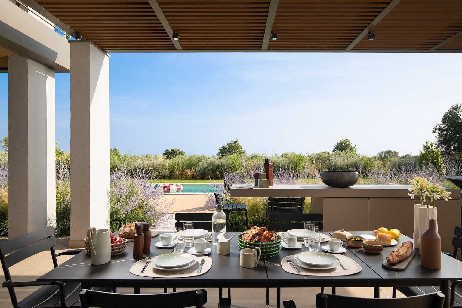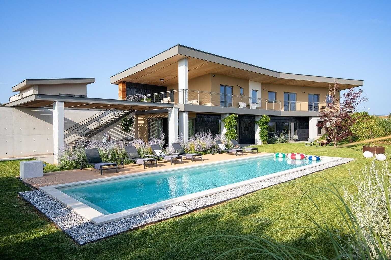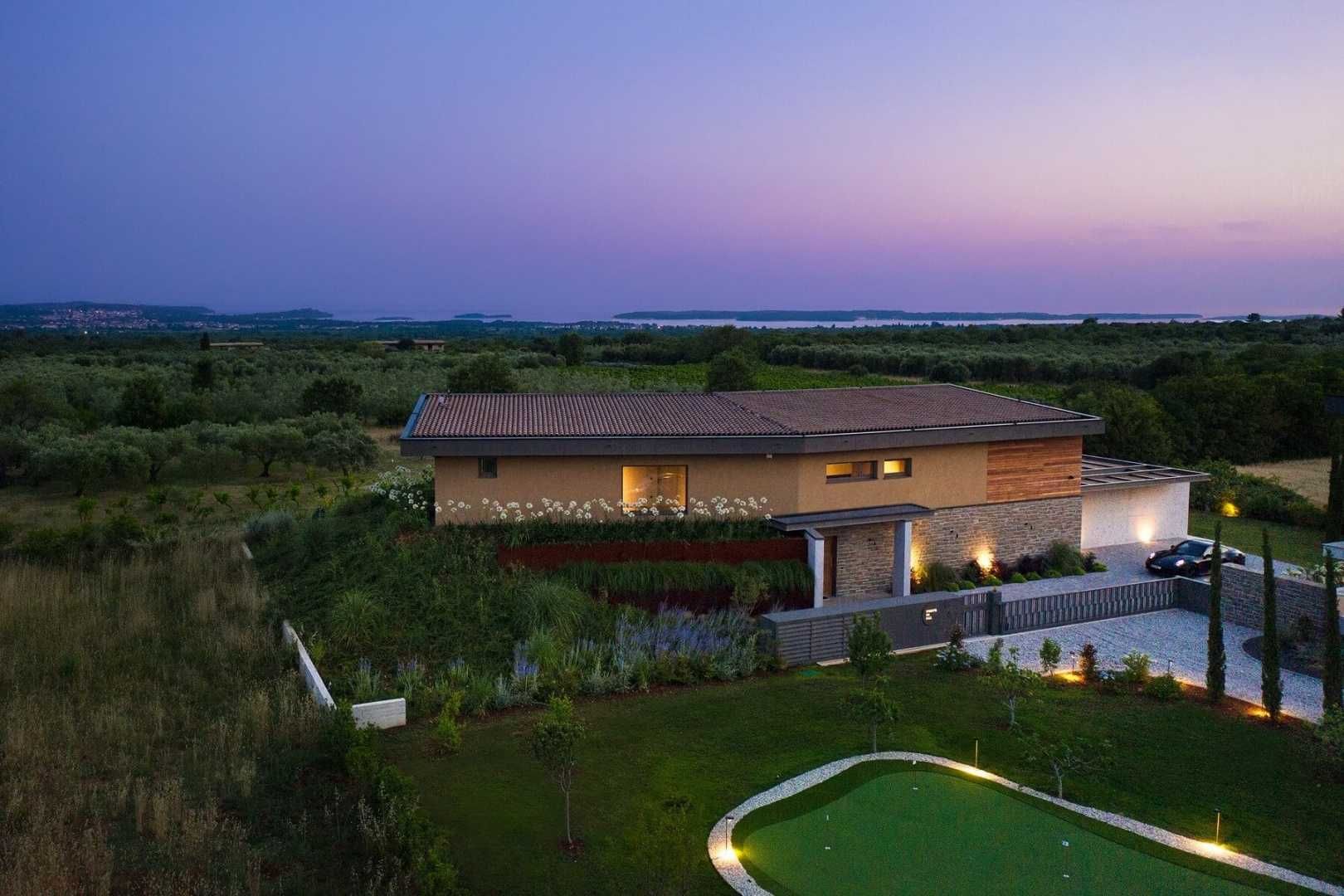 ISTRIE, VODNJAN - Luxusní vila ve výstavbě s panoramatickým výhledem Vila se nachází v krásné a klidné části Vodnjan s jedinečným výhledem na moře a ostrovy Brijuni. Zahájení stavby je plánováno na listopad tohoto roku a plánované ukončení prací je na konci sezóny 2022. Vila bude mít prostorný obývací pokoj v otevřeném prostoru, 4 ložnice, 3 koupelny s toaletou, saunu, toaletu pro hosty, další sprchu v sauně a prádelnu. Prostor bude uspořádán tak, že v přízemí vily bude obývací pokoj s kuchyní v otevřeném prostoru, který se otevírá na prostornou krytou terasu a zahradu, dále 1 ložnice, koupelna, toaleta pro hosty a prádelna. Vnitřní schodiště vede do prvního patra, kde jsou 3 ložnice, 2 koupelny a velká krytá terasa se salonkem. Z hlavní ložnice je vstup na zahradu. Terasa nabízí panoramatický výhled na národní park Brijuni, moře, vinice a olivové háje. V zahradě vily bude bazén s prostorem na opalování, v zadní části pozemku jsou plánována dvě parkovací stání. Úroveň vybavení vily bude na vysoké úrovni, další informace budou následovat.