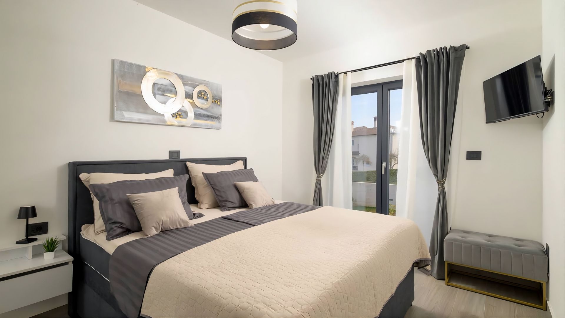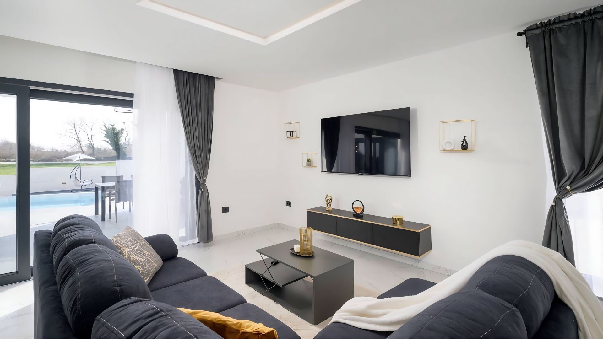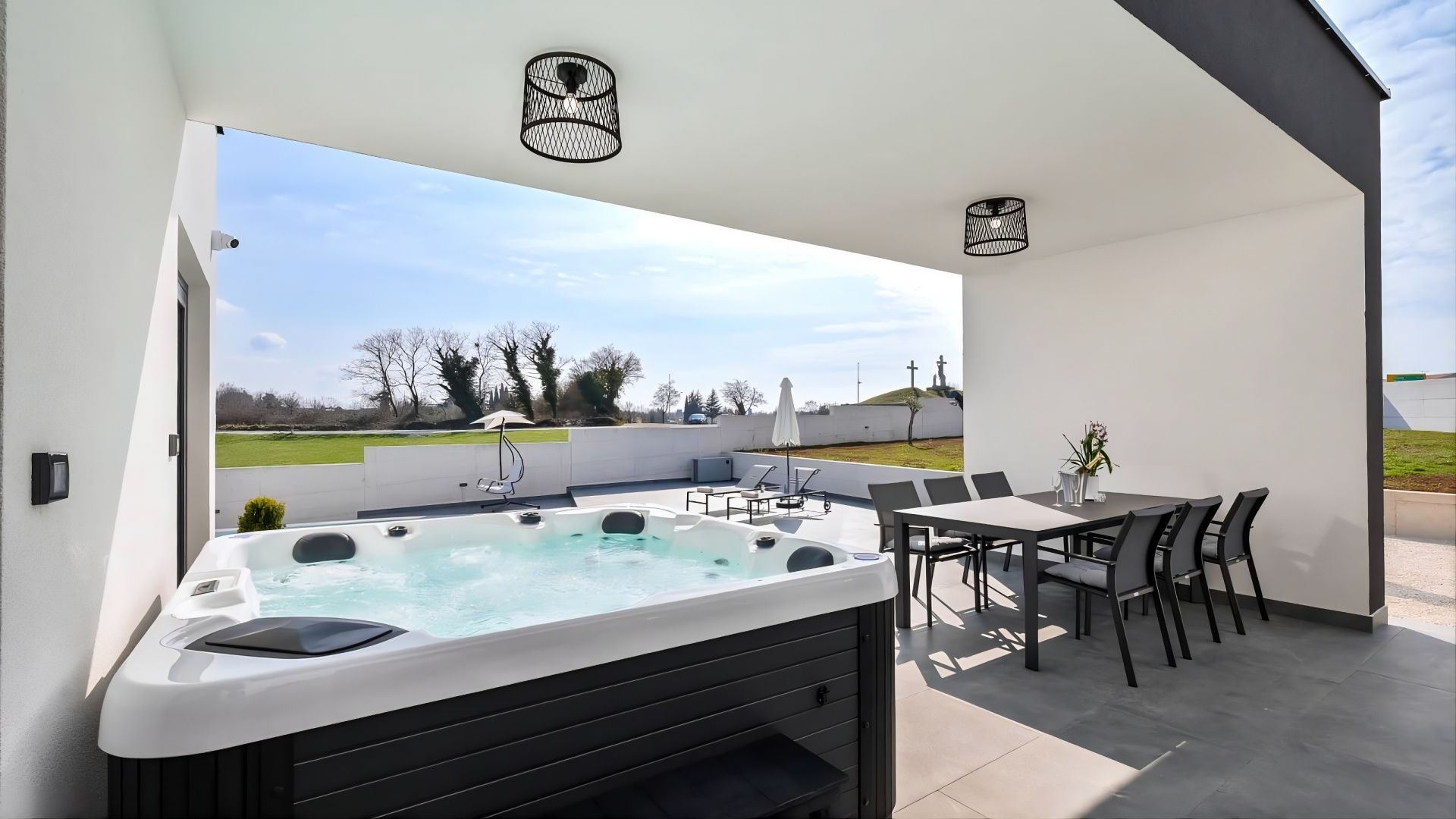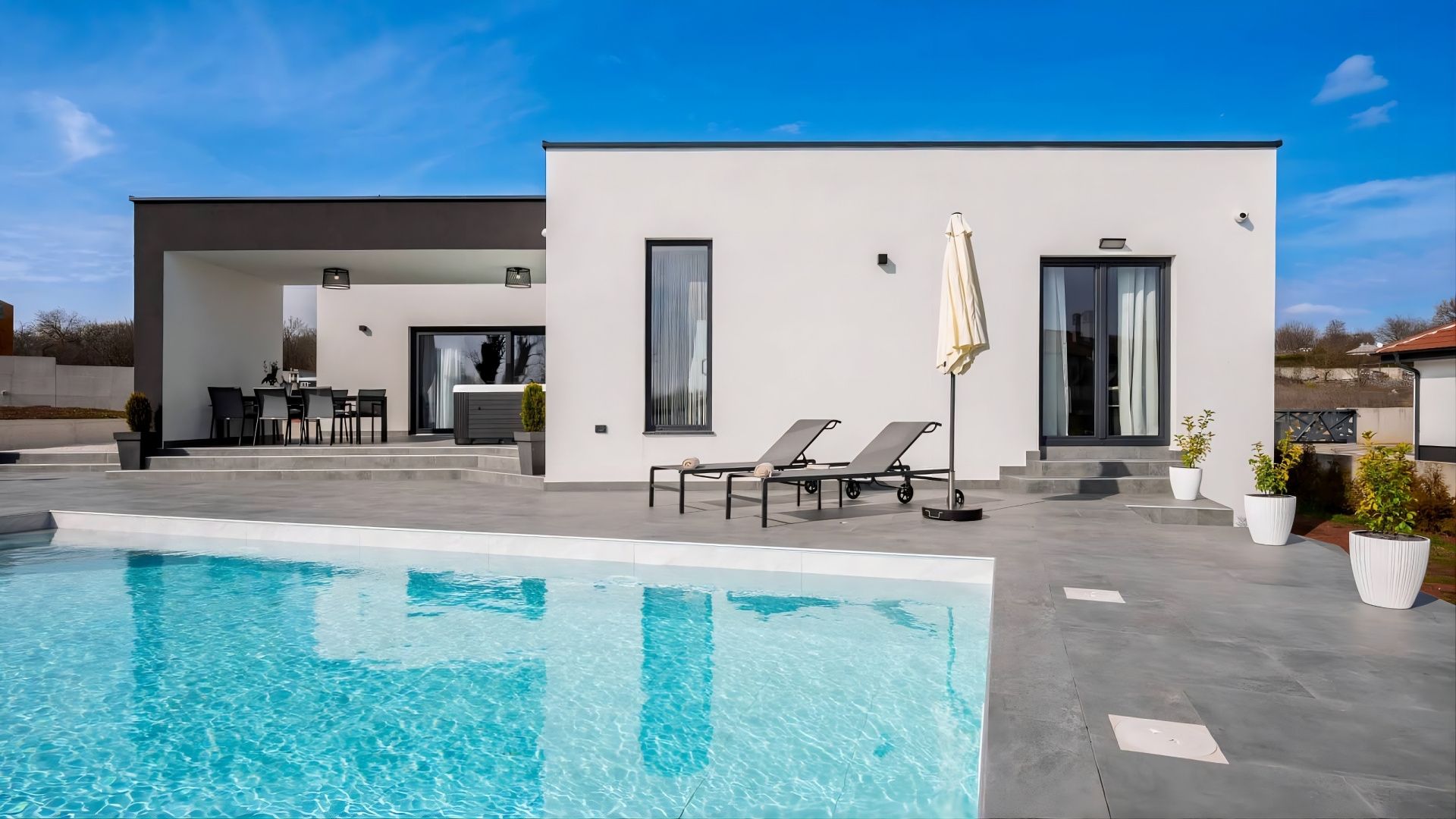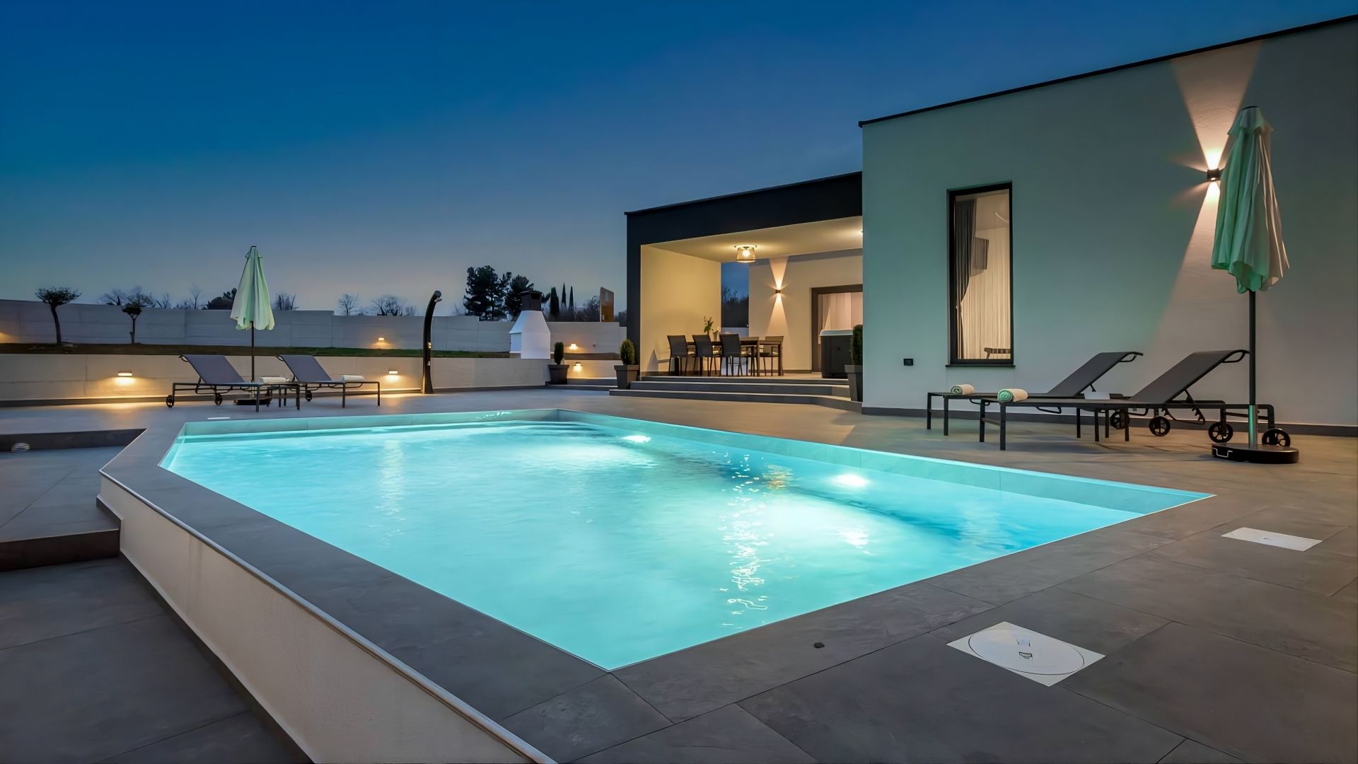 ISTRIE, ŽMINJ - Moderní dům s bazénem Pokud všechny cesty v Evropě vedou do Říma, pak všechny cesty na Istrii vedou do Žminje - srdce Istrie v nadmořské výšce 379 metrů. Žminj je od pradávna důležitým dopravním uzlem. Spojovala celý Istrijský poloostrov. Díky své výjimečné přírodní kráse, nekonečným loukám, vinicím, bohatým polím, starobylým lesům a nově objeveným jeskyním je tím pravým místem pro spojení s přírodou. Zelený, zdravý a udržitelný cestovní ruch je charakteristický pro tuto obec, která je působivá co do rozlohy, kultury a gastronomie. Malebné území Žminje má 33 osad a 112 vesnic. V tomto malém městečku je na prodej moderní dům s bazénem. Mikrolokace nabízí autentický zážitek malého istrijského městečka, intimitu, úlevu od každé hektické námahy a zároveň blízkost dynamických měst Istrie s řadou zařízení. Kromě výhodné polohy se nemovitost vyznačuje také kvalitou konstrukce, která zaručuje dlouhodobou spokojenost a kvalitu bydlení. Dům svou architekturou splývá s osadou a krajinou jak tvarem, tak i barvou a vytváří synergii přírodního prostředí a moderního designu. Je definován jako jedna bytová jednotka, jejíž plocha je rozložena na jednom patře funkčního půdorysu. Skládá se z otevřeného prostoru, který spojuje kuchyň, jídelnu a obývací pokoj s přístupem na krytou terasu, dvou ložnic, posilovny se saunou a dvou koupelen. Dvůr je upravený a oplocený a dokonalou harmonii doplňuje vyhřívaný bazén s opalovací plochou. Vynikající poloha a prostorové uspořádání interiéru a exteriéru této nemovitosti poskytují příležitost pro pohodlný rodinný život nebo investici do turistického pronájmu.