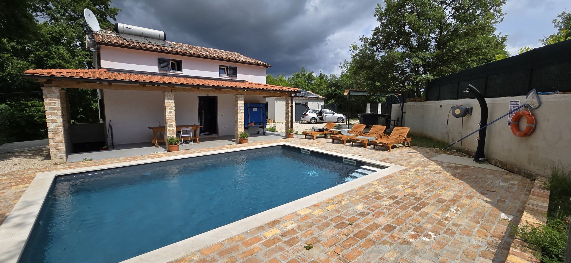 ISTRIE, ŽMINJ - Odlehlý rekreační dům s bazénem a vířivkou Žminj je již od pradávna důležitým dopravním uzlem spojujícím celý Istrijský poloostrov. Místo je ideální pro užívání si přírody, turistiku nebo cyklistiku a cestou přes Žminj a okolí narazíte na mnoho kamenných domů - chat, z nichž každý má svůj vlastní příběh. Staleté istrijské kamenné domy byly přestavěny na agroturistiku, takže můžete ochutnat i místní istrijskou kuchyni a poslední sobotu v srpnu se koná tradiční hody Bartulja, největší lidová hostina, kterou si Istrijci a jejich hosté nenechají ujít. Jen pár minut jízdy od centra Žminje se nachází tento unikátní rekreační dům, obklopený přírodou a zelení. Dům se nachází na odlehlém místě, první sousedé jsou od domu vzdáleni 450 metrů, což budoucím majitelům poskytuje dostatek soukromí a klidu. Jeho obytná plocha 100 m2 se rozkládá v přízemí a prvním patře. Přízemí se skládá z kuchyně, jídelny, obývacího pokoje a koupelny. Vnitřní schodiště vede do prvního patra, kde se nacházejí dvě ložnice a dvě koupelny. Dům má také suterén o rozloze 12 m2. Na prostorné zahradě o rozloze 2 781 m2 se nachází bazén s opalovací plochou, vířivka a krytá terasa se stolem pro venkovní stolování a posezení s rodinou. Vedle bazénu se nachází kulatý kažun o rozloze cca 18 m2. Kažun je v současné době využíván jako úložný prostor, ale budoucí majitel si ho může zařídit dle svého přání. Pro vaše domácí mazlíčky můžete využít garáž o rozloze cca 40 m2 nebo parkovat na zahradě - k dispozici je několik parkovacích míst. Dům je kategorizován 3* a je již léta úspěšně pronajímán, takže nový majitel může podnikání rychle převzít. Existuje možnost dokoupení dalších 2 000 m2 zahrady. Příležitost!