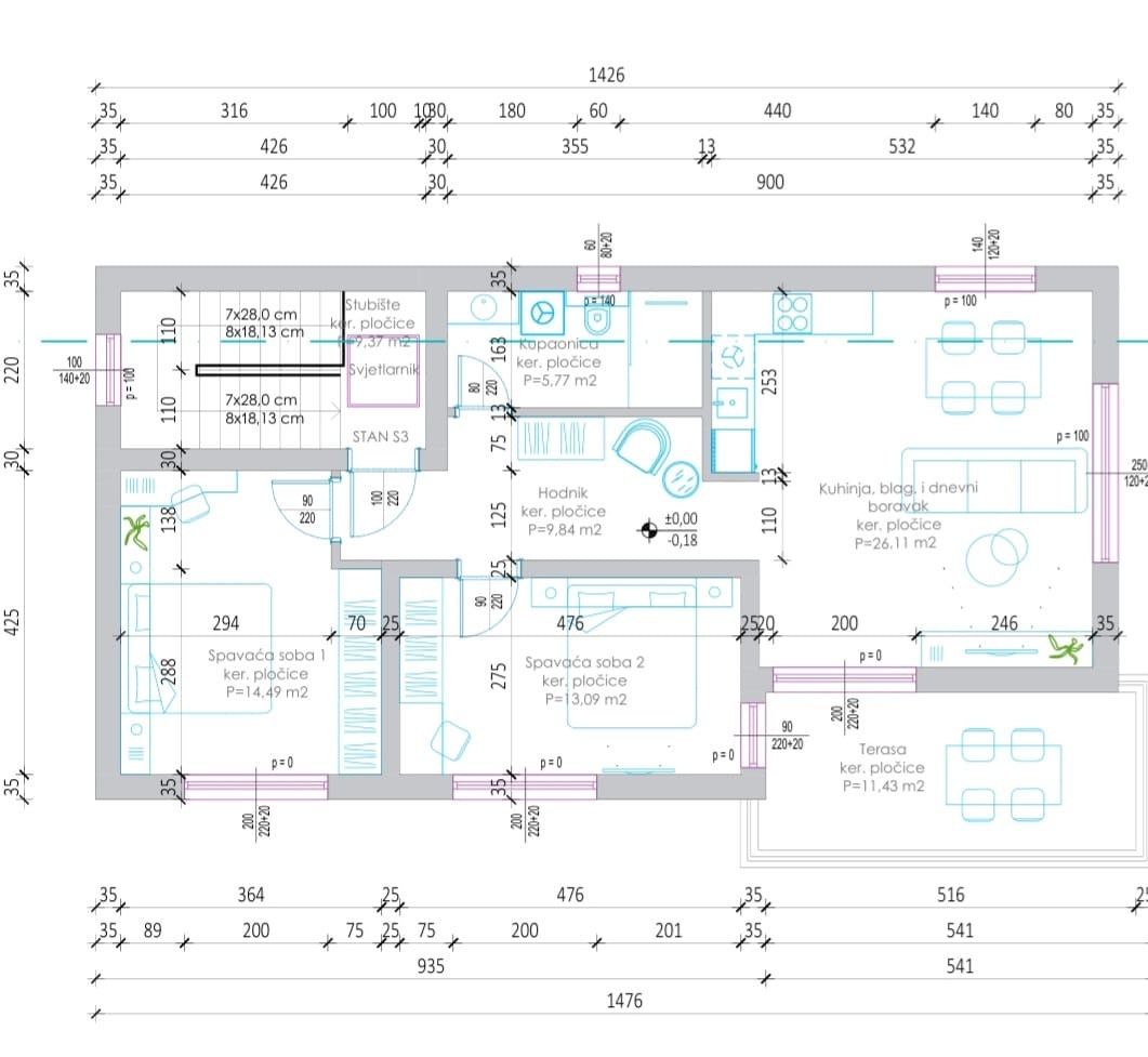 JASENICE, ROVANJSKA - Prostorný byt s výhledem na moře Probuzení s výhledem na moře se může stát vaším každodenním životem. Tento moderní byt o rozloze 81 m² v kvalitní novostavbě se nachází v Rovanjské, klidném místě nedaleko Zadaru, zasazeném mezi Jaderské moře a pohoří Velebit. Byt se skládá ze tří pokojů a nabízí příjemný, světlý prostor ideální pro bydlení nebo dovolenou. Prodávající nabízí také možnost výroby nábytku na míru, což umožňuje budoucímu majiteli zařídit si byt prakticky a ve vlastním stylu. Dokonalá kombinace moře, přírody a moderního bydlení.