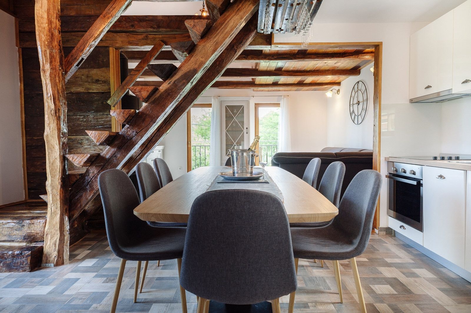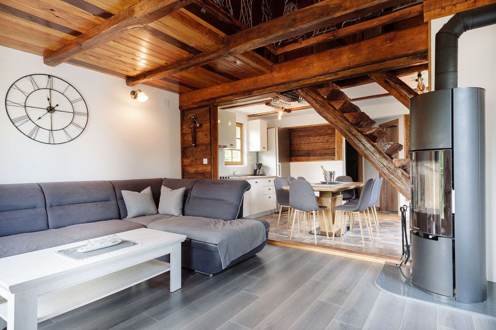 KARLOVAC, BARILOVIĆ - soukromý ráj u řeky Korany, dva domy a soukromá SPA zóna v srdci přírody, 218 m2 Na prodej je unikátní nemovitost u řeky Korany, která se nachází v klidném a zeleném prostředí nedaleko Karlovacu, o celkové rozloze 1 785 m², kde se tradice starého dubového stavitelství setkává s moderním komfortem. Pozemek se skládá z autentických dřevěných domů starých přes sto let, pečlivě zrekonstruovaných tak, aby si zachovaly původní charakter, ale také aby poskytovaly moderní standard bydlení. Každá část prostoru je navržena s důrazem na soukromí, přírodní prostředí a příjemnou atmosféru pobytu u řeky. Hlavní dům o rozloze přibližně 116 m² je registrován k turistickému pronájmu a rozkládá se přes suterén, přízemí a vysoké podkroví. V suterénu (24 m²) se nachází společenská zóna s kulečníkem a šipkami, topením a pračkou. Přízemí (52 m²) se skládá z obývacího pokoje propojeného s kuchyní, ložnice, koupelny a další toalety. Obytný prostor se otevírá na prostornou nekrytou terasu o rozloze 25 m² s výhledem na řeku Koranu, která se nachází v přízemí. Podkroví (40 m²) obsahuje dvě ložnice, galerii, chodbu a schodiště. Dům má elektrické ústřední topení, otevřený krb na dřevo, klimatizaci a Wi-Fi ovládání topných a chladicích systémů. Druhý dům má rozlohu přibližně 54 m² a je rozdělen na dvě podlaží. V přízemí (30 m²) se nachází obývací pokoj, kuchyň s jídelnou a koupelna, zatímco v prvním patře jsou dvě ložnice o rozloze 12 m². Velká krytá terasa o rozloze 25 m² vhodná pro venkovní pobyt po celý rok poskytuje zvláštní atmosféru. Vytápění zajišťuje peletový krb s klimatizací a Wi-Fi ovládáním. K dispozici je také samostatný dřevěný SPA dům o rozloze přibližně 14 m² se saunou, vířivkou a koupelnou, který vytváří soukromou wellness zónu v přírodním prostředí. Dvůr je dále obohacen o vybavení, jako je krytý zděný gril (24 m²), letní kuchyně (4 m²), skladovací místnost (6 m²) a několik parkovacích míst. Součástí prodeje je i polovina sousedního pozemku podél řeky Korana o celkové rozloze 1 903 m² (851,5 m² ve vlastnictví), na kterém byla vybudována další parkovací místa, dětské hřiště, „plážový dům“, soukromá pláž s raftem a molem, což z této nemovitosti dělá vzácnou příležitost na trhu. Oba domy jsou napojeny na kanalizaci a jsou plně vybaveny k bydlení i turistickému pronájmu. Stávající pronájem je již dobře zavedený s přibližně 200 přenocováními ročně, což novému majiteli umožňuje pokračovat v podnikání bez dalších investic. Tato nemovitost není jen místem k životu, ale malým světem, ve kterém příroda diktuje rytmus dne. Rána na řece Korana začínají tiše, odrazem vody a vůní lesa, zatímco Karlovac, známý svými řekami, zůstává na dosah ruky. Blízkost Záhřebu umožňuje rychlý příjezd, přičemž pocit odloučení zůstává naprostý, jako byste se nacházeli ve skrytém koutě, kde čas plyne pomaleji a příroda vypráví svůj vlastní příběh. Vážení potenciální kupující, těší nás, že máte zájem o nemovitosti z naší nabídky. Pro více informací a dohodu o prohlídce nemovitosti nás neváhejte kontaktovat. Prohlídka nemovitosti je možná pouze s podpisem Smlouvy o zprostředkování nemovitosti.