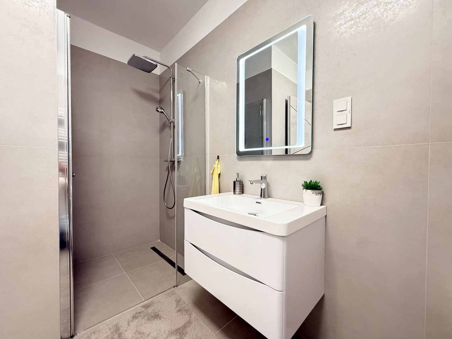 KLENOVICA - luxusní apartmán v první řadě u moře v novostavbě PRVNÍ ŘADA U MOŘE - PANORAMATICKÝ VÝHLED - EXKLUZIVNÍ APARTMAN S PRVOTŘÍDNÍ DEKORACÍ Prodává se unikátní nemovitost v Klenovici - exkluzivně zařízený apartmán v menší novostavbě (2023), která se nachází doslova 10 metrů od moře. Tato příležitost se na trhu objevuje jen zřídka - luxusní apartmán v prestižní lokalitě, plně zařízený a připravený k užívání bez jakýchkoli kompromisů. Apartmán se nachází ve druhém, zároveň nejvyšším patře, a zaujímá nejlepší polohu v budově. Celková plocha 90,79 m², dispozice zahrnuje: prostornou kuchyň, jídelnu a obývací pokoj (36,54 m²) chodbu (6,43 m²) dvě pohodlné ložnice (11,49 m² a 13,39 m²) dvě luxusní koupelny (5,98 m² a 5,53 m²) úložný prostor krytou terasu (10,33 m²) s nerušeným panoramatickým výhledem na moře. Byt je vybaven vysoce kvalitními materiály a nábytkem na míru a každý detail byl pečlivě promyšlen. Každá místnost v bytě má podlahové vytápění, dostatek přirozeného světla a působí dojmem elegance, pohodlí a luxusu. Budova je oplocená, stejně jako zahrada, a z nádvoří je soukromý východ přímo na pláž. Přestože se nachází v první řadě u moře, lokalita je mimořádně klidná a soukromá, ideální pro pohodový život u moře bez hluku a davů. Budova je menší, s větším soukromím, což dále přispívá k pocitu luxusu a bezpečí. K bytu náleží také vlastní parkovací místo. Skutečná rarita na trhu, fantastická nemovitost pro ty, kteří hledají špičkovou kvalitu, bez stresu a nutnosti dalších investic. Vhodná jak k trvalému bydlení, tak i jako luxusní rekreační dům nebo bezpečná investice do pronájmu nejvyšší třídy. Tuto příležitost byste si neměli nechat ujít. Při každé prohlídce nemovitosti je podpis zprostředkovatelské smlouvy povinný!