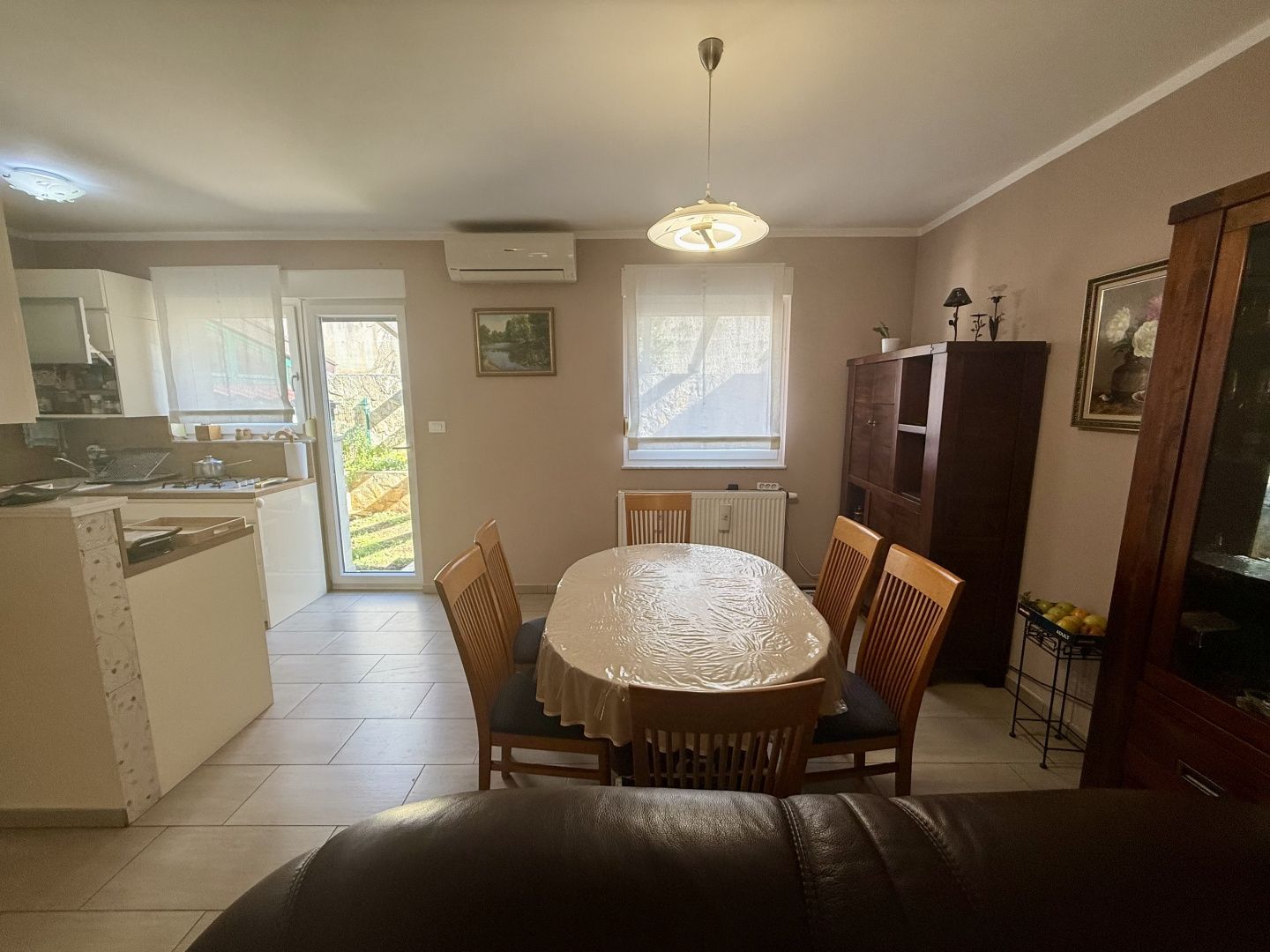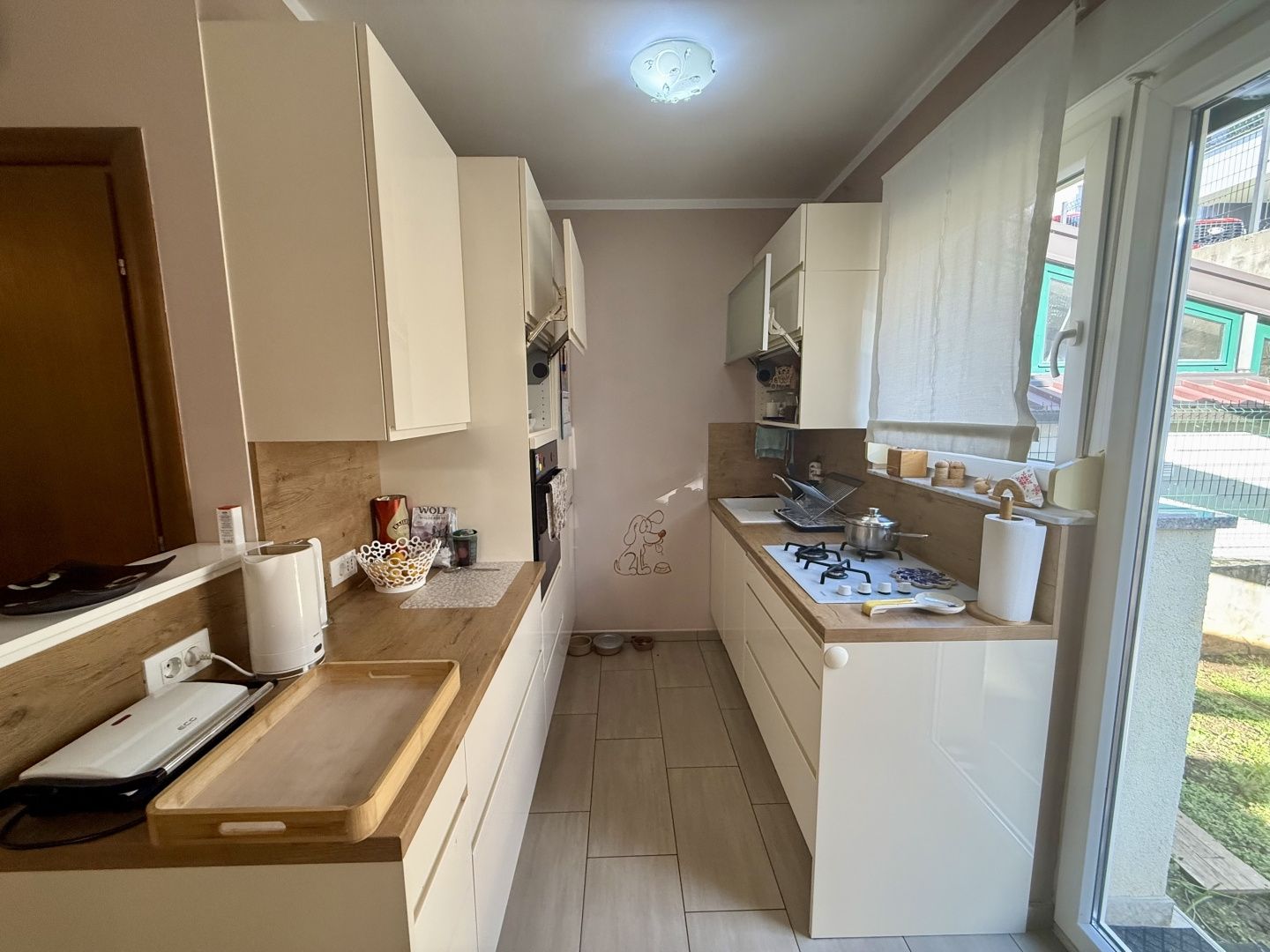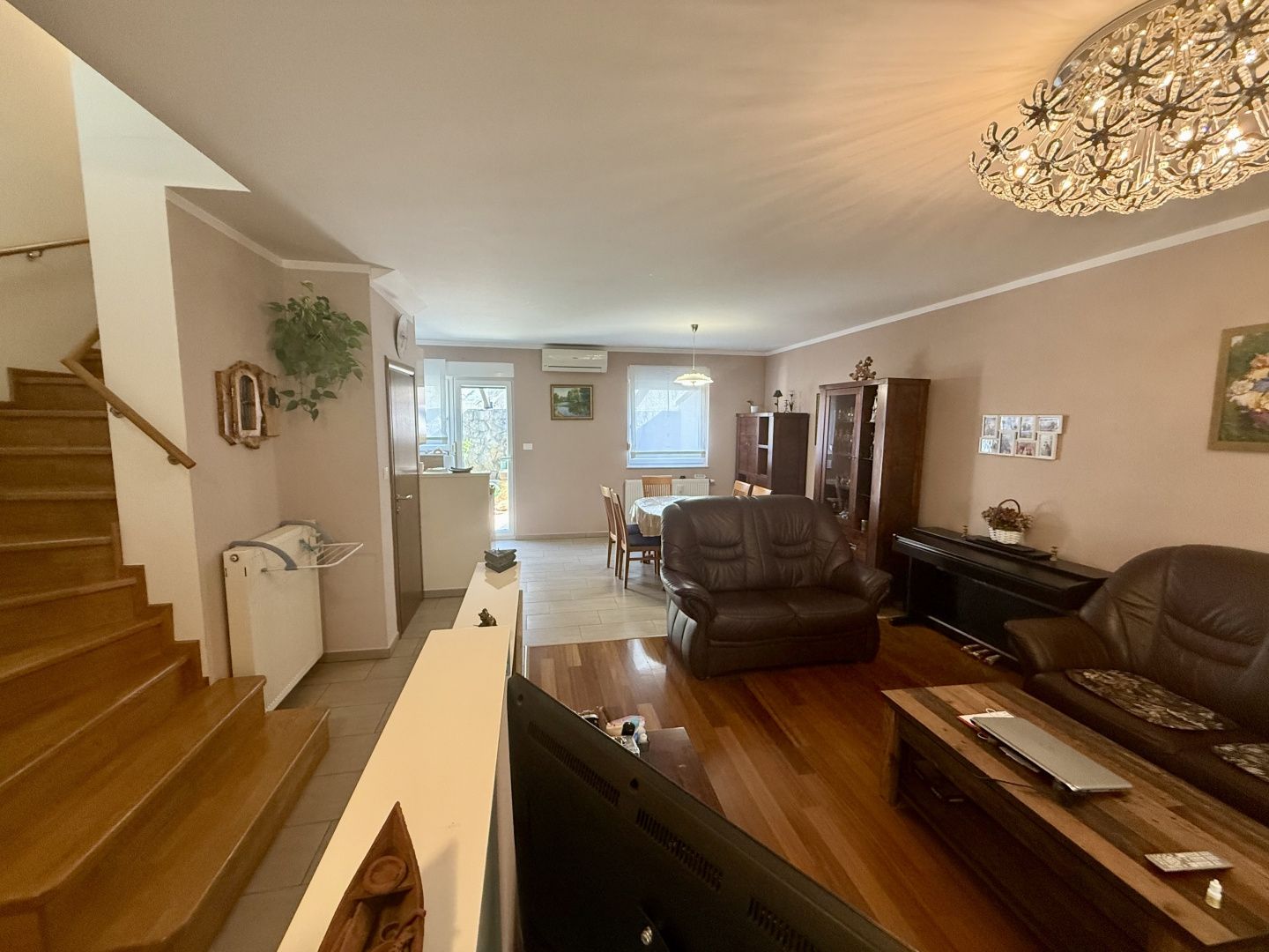 KOSTRENA - 3 ložnice + obývací pokoj v novostavbě se zahradou a výhledem na moře! Prodáváme vynikající nemovitost v Kostreně na skvělém místě! Dvoupatrový byt postavený v roce 2013. Spodní patro se skládá z obývacího pokoje, kuchyně, samostatné toalety, úložné místnosti a šatny. Na severní straně je východ na část zahrady, kde se nachází gril. Byly také instalovány trámy pro stříšku. Na jižní straně je východ na větší zahradu sestávající z kryté terasy a zelené plochy. Horní patro se skládá ze tří ložnic, z nichž jedna má balkon, a koupelny s toaletou (která má také podlahové vytápění). Z horního patra je také vstup na půdu, která slouží jako úložný prostor. K bytu náleží také dvě parkovací místa. Byt je vybaven plynovým ústředním topením a je plně klimatizován (3 klimatizace). Většina nábytku je vyrobena na míru, kuchyň je 'Dan kuchen' a veškerý nábytek, kromě osobních věcí, zůstává v ceně. Moře je vzdálené deset minut chůze, což z této nemovitosti dělá ideální investici a turistický pronájem. Nachází se ve slepé ulici v klidné a tiché lokalitě. Skvělá příležitost s výhledem na moře!