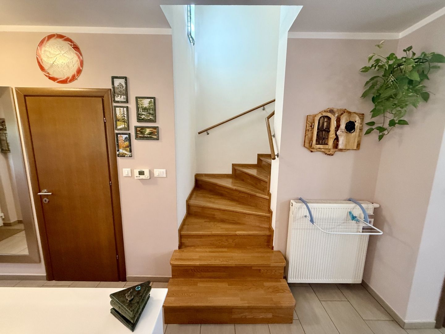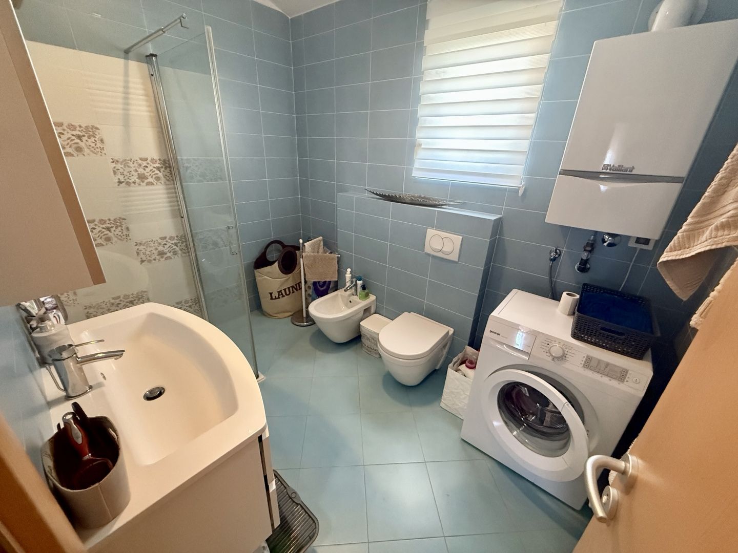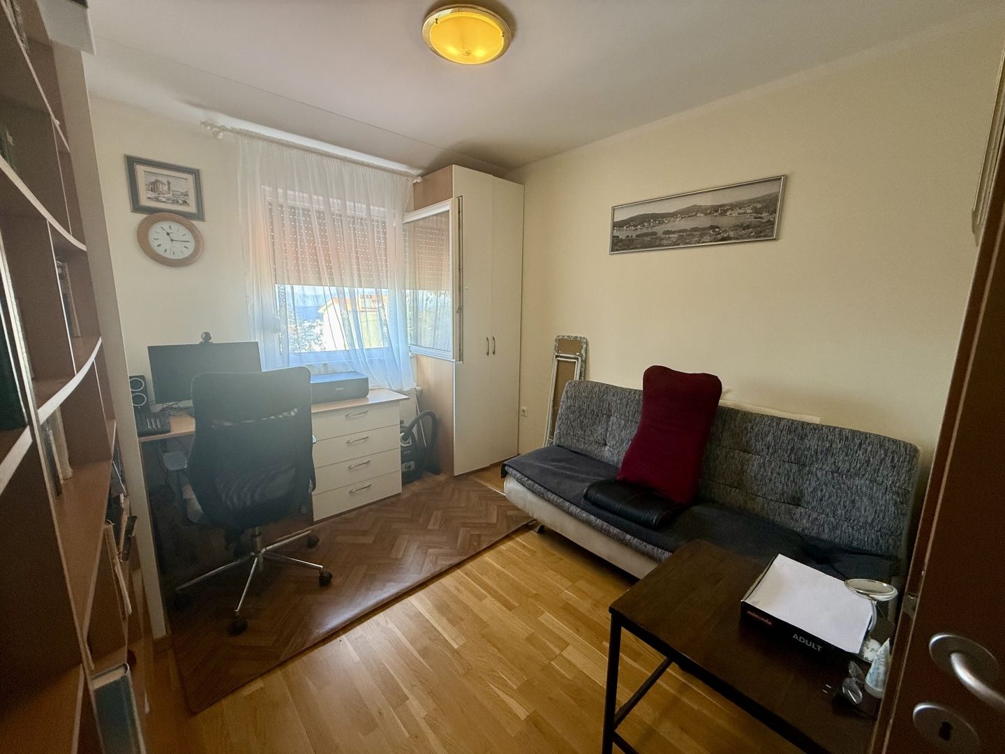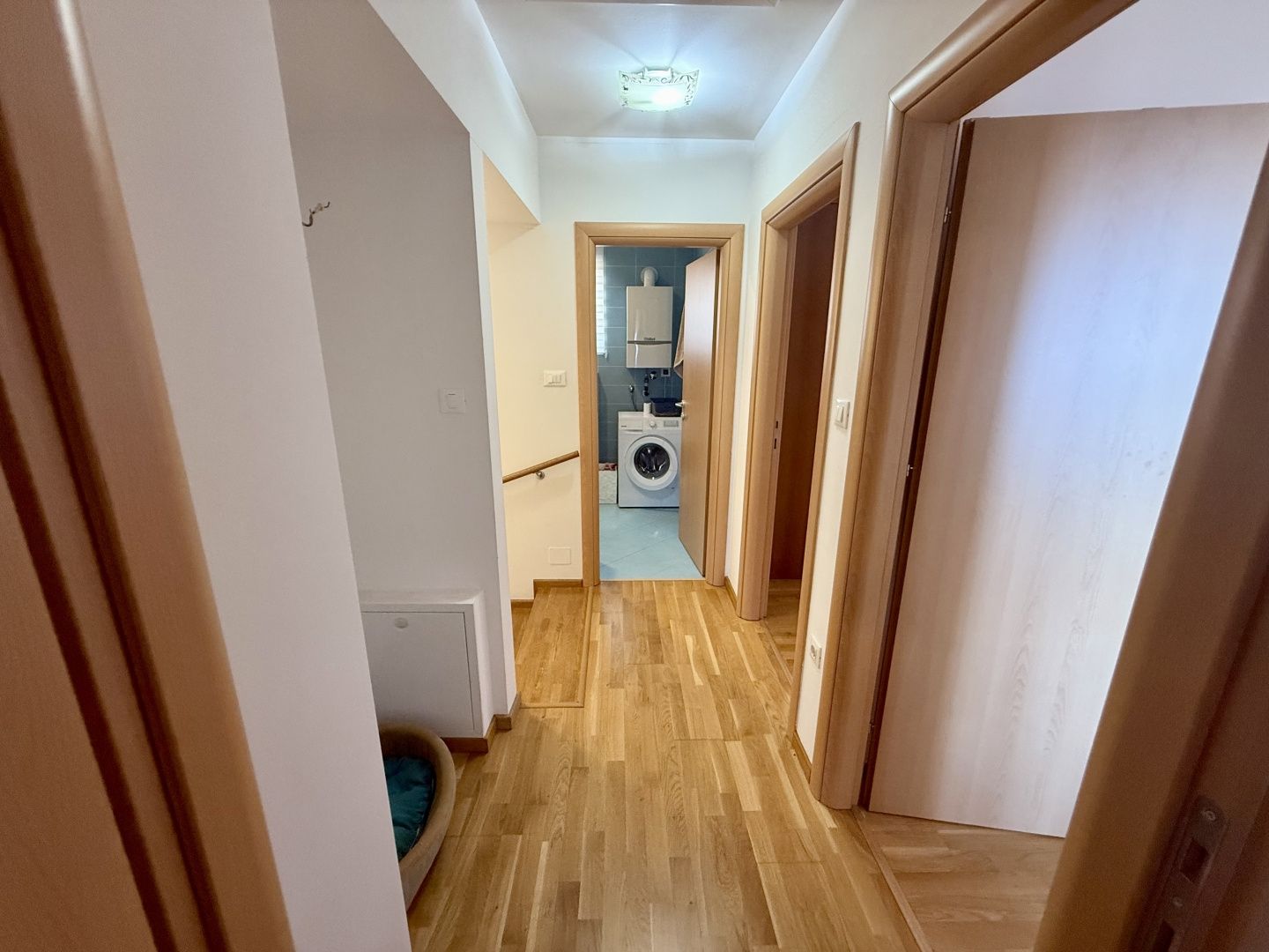 KOSTRENA - 3 ložnice + obývací pokoj v novostavbě se zahradou a výhledem na moře! Prodáváme vynikající nemovitost v Kostreně na skvělém místě! Dvoupatrový byt postavený v roce 2013. Spodní patro se skládá z obývacího pokoje, kuchyně, samostatné toalety, úložné místnosti a šatny. Na severní straně je východ na část zahrady, kde se nachází gril. Byly také instalovány trámy pro stříšku. Na jižní straně je východ na větší zahradu sestávající z kryté terasy a zelené plochy. Horní patro se skládá ze tří ložnic, z nichž jedna má balkon, a koupelny s toaletou (která má také podlahové vytápění). Z horního patra je také vstup na půdu, která slouží jako úložný prostor. K bytu náleží také dvě parkovací místa. Byt je vybaven plynovým ústředním topením a je plně klimatizován (3 klimatizace). Většina nábytku je vyrobena na míru, kuchyň je 'Dan kuchen' a veškerý nábytek, kromě osobních věcí, zůstává v ceně. Moře je vzdálené deset minut chůze, což z této nemovitosti dělá ideální investici a turistický pronájem. Nachází se ve slepé ulici v klidné a tiché lokalitě. Skvělá příležitost s výhledem na moře!